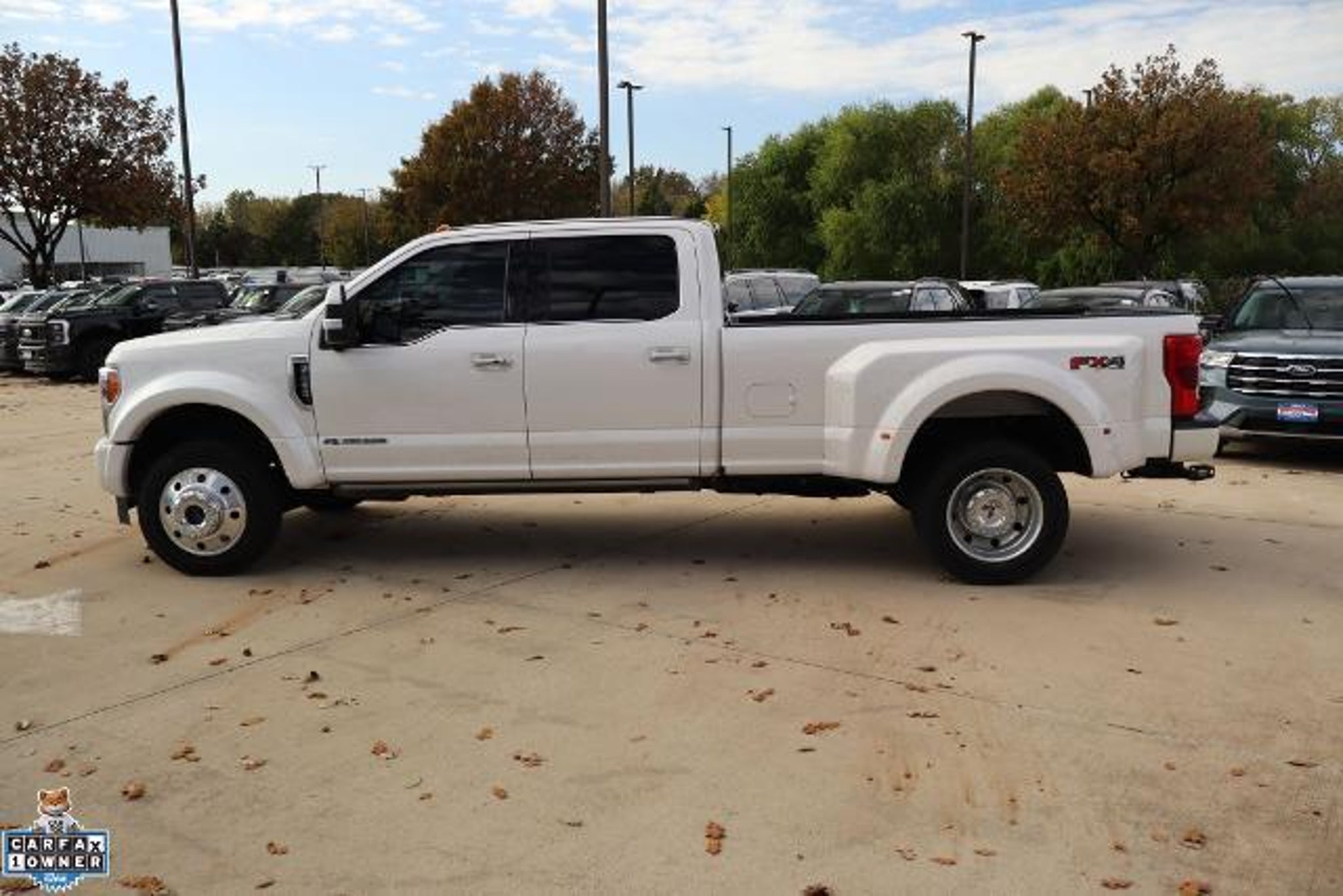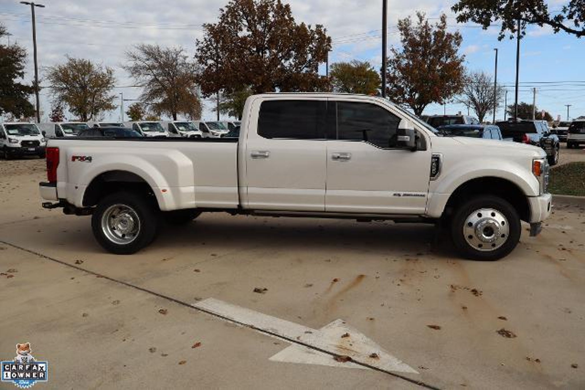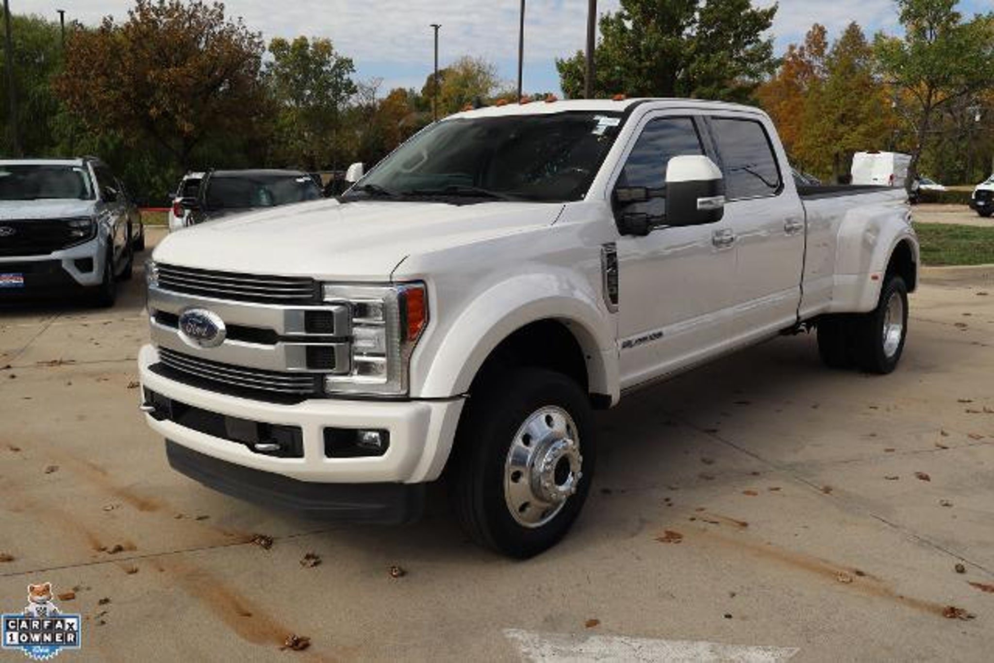 CARFAX One-Owner. Clean CARFAX. 2019 Ford F-450SD 4D Crew Cab Limited DRW White Platinum Metallic Tri-Coat 4WD Power Stroke 6.7L V8 DI 32V OHV Turbodiesel TorqShift 6-Speed Automatic 4WD, 5th Wheel/Gooseneck Hitch Prep Package, FX4 Off-Road Package, Hill Descent Control, Off-Road Specifically Tuned Shock Absorbers, Order Code 778A, Unique FX4 Off-Road Box Decal. 5th Wheel/Gooseneck Hitch Prep Package, FX4 Off-Road Package (Hill Descent Control, Off-Road Specifically Tuned Shock Absorbers, and Unique FX4 Off-Road Box Decal), Order Code 778A, GVWR: 14,000 lb Payload Package, 4WD, 10 Speakers, 110V/400W Outlet, 19.5 Forged Polished Aluminum Wheels, 4-Wheel Disc Brakes, ABS brakes, Adjustable pedals, Air Conditioning, Alloy wheels, AM/FM radio, AppLink/Apple CarPlay and Android Auto, Auto-dimming Rear-View mirror, Automatic temperature control, Brake assist, Compass, Delay-off headlights, Driver door bin, Driver vanity mirror, Dual fro'nt side impact airbags, Dual front impact airbags, Dual rear wheels, Electronic Stability Control, Emergency communication system, Exterior Parking Camera Rear, Flow-Through Console, Front anti-roll bar, Front Bucket Seats, Front Center Armrest, Front dual zone A/C, Front fog lights, Front reading lights, Fully automatic headlights, Heated door mirrors, Illuminated entry, Leather steering wheel, Limited Slip w/4.30 Axle Ratio, Navigation System, Outside temperature display, Overhead airbag, Overhead console, Panic alarm, Passenger door bin, Passenger vanity mirror, Power door mirrors, Power driver seat, Power passenger seat, Power steering, Power windows, Radio data system, Radio: B&O Sound System by Bang & Olufsen, Rear anti-roll bar, Rear Parking Sensors, Rear reading lights, Rear seat center armrest, Rear step bumper, Rear window defroster, Remote keyless entry, Security system, SiriusXM Radio, Speed control, Steering wheel mounted audio controls, SYNC 3 Communications & Entertainment System, Tachometer, Telescoping steering wheel, Telescoping steering wheel, Tilt steering wheel, Tough Bed Spray-In Bedliner, Traction control, Trip computer, Turn signal indicator mirrors, and Variably intermittent wipers. Ford cars and trucks cost less in McKinney. Take that short drive up 75 to Bob Tomes Ford. Thank you for making your way to Bob Tomes Ford, your certified Ford dealer serving drivers throughout McKinney, Prosper, Frisco, Plano, Anna, Garland, Melissa, Fairview, Van Alstyne, Sherman, Celina, Denton, Lucas, Dennison, Bonham, Dallas, Blue Ridge, Richardson, Howe, Princeton, G