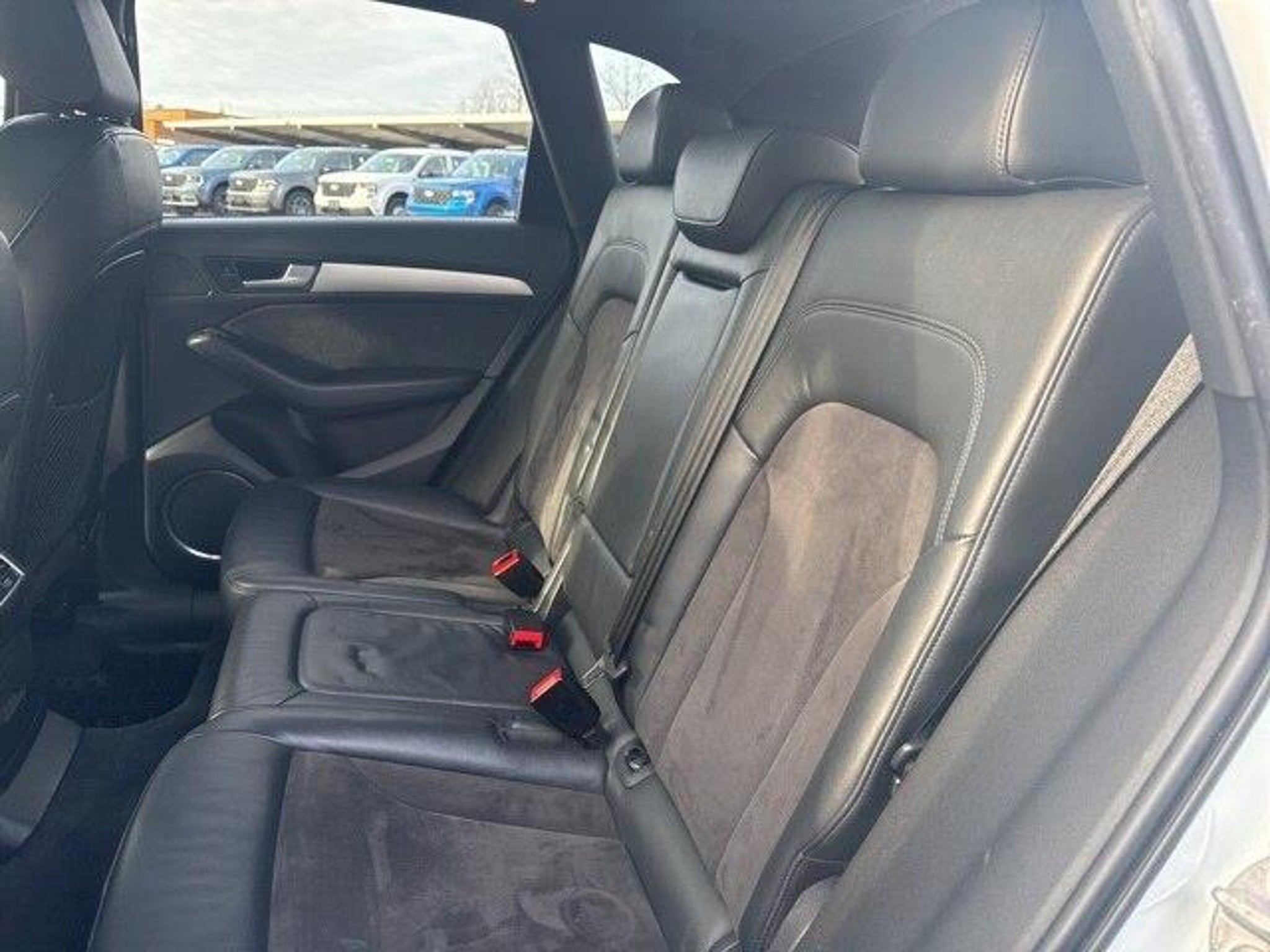 10 Speakers, 3.07 Axle Ratio, 4-Wheel Disc Brakes, ABS brakes, Adaptive suspension, Air Conditioning, Alloy wheels, AM/FM radio: Sirius, Auto-dimming door mirrors, Auto-dimming Rear-View mirror, Automatic temperature control, Brake assist, Bumpers: body-color, CD player, Compass, Delay-off headlights, Driver door bin, Driver vanity mirror, Dual front impact airbags, Dual front side impact airbags, Electronic Stability Control, Four wheel independent suspension, Front anti-roll bar, Front Bucket Seats, Front Center Armrest, Front dual zone A/C, Front fog lights, Front reading lights, Garage door transmitter: HomeLink, Headlight cleaning, Heated door mirrors, Heated front seats, High intensity discharge headlights: Bi-xenon, Illuminated entry, Leather Shift Knob, Leather steering wheel, Leather/Alcantara Seating Surfaces, Low tire pressure warning, Memory seat, Occupant sensing airbag, Outside temperature display, Overhead airbag, Overhead console, Panic alarm, Passenger door bin, Passenger vanity mirror, Power door mirrors, Power driver seat, Power Liftgate, Power moonroof, Power passenger seat, Power steering, Power windows, Radio data system, Radio: Audi MMI Plus System w/6.5 Color Screen, Rain sensing wipers, Rear air conditioning, Rear anti-roll bar, Rear fog lights, Rear reading lights, Rear seat center armrest, Rear window defroster, Rear window wiper, Remote keyless entry, Roof rack, Security system, Speed control, Speed-sensing steering, Speed-Sensitive Wipers, Split folding rear seat, Spoiler, Sport steering wheel, Sport-Contoured 3-Step Heated Front Seats, Steering wheel mounted audio controls, Tachometer, Telescoping steering wheel, Tilt steering wheel, Traction control, Trip computer, Turn signal indicator mirrors, Variably intermittent wipers, and Wheels: 8.5J x 20 5-Parallel-Spoke S-Design.