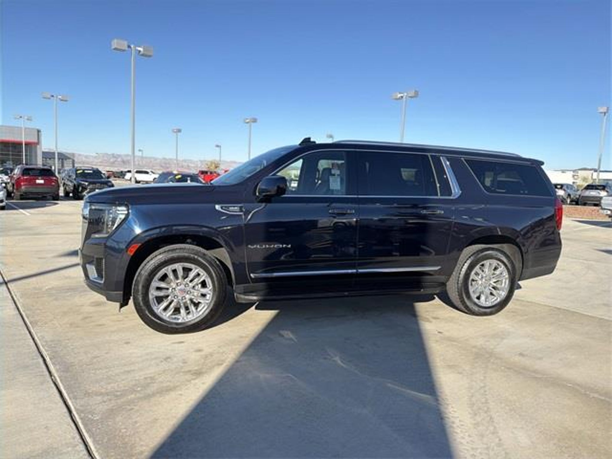 FRESH ARRIVAL!! AVAILABLE NOW!! XL!! SLT!! 4x4!! V8!! 3rd ROW SEAT!! POWER LIFTGATE!! BOSE PREMIUM SOUND!! ONSTAR!! CLEAN CARFAX!! This 2023 GMC Yukon XL SLT in Midnight Blue Metallic presents a commanding presence paired with the kind of spacious comfort and capability that families and professionals alike value. Its extended wheelbase provides an expansive interior, ensuring generous legroom in all three rows and ample cargo space behind the third row-- perfect for long trips, daily routines, or anything in between. The deep, lustrous Midnight Blue finish emphasizes the SUVs clean lines and bold grille, while the 20-inch machined aluminum wheels and chrome accents contribute to its upscale yet purposeful appearance. Inside, the Jet Black leather seats offer both comfort and durability, with heated and ventilated front seats and heated second-row outboard seats enhancing everyday practicality. The SLT trim brings a high level of refinement, including a hands-free programmable power liftgate, wireless charging pad, and a 10.2-inch touchscreen infotainment system with Google built-in. Connectivity and convenience come naturally with wireless Apple CarPlay and Android Auto, along with a premium Bose nine-speaker audio system that delivers crisp, balanced sound throughout the cabin. Under the hood, a powerful 5.3-liter V8 engine offers confident performance paired with a smooth-shifting 10-speed automatic transmission. The four-wheel-drive system adds traction and control in a range of driving conditions, supported by an independent rear suspension that contributes to a composed ride. Safety is thoughtfully addressed through GMCs Pro Safety Plus suite, which includes forward collision alert, lane keep assist, and front and rear park assist. This 2023 GMC Yukon XL SLT blends presence, power, and practicality in a way that few full-size SUVs can match. Its combination of refinement, advanced features, and capable drivetrain make it an ideal choice for those needing both space and performance. Visit Anderson Toyota today or give our friendly sales staff a call to schedule your test drive, . WHY BUY FROM ANDERSON: All Anderson pre-owned vehicles include a 3-month or 3,000 mile powertrain limited warranty and one-year/15,000 mile (whichever occurs first) vehicle maintenance plan when the vehicle is serviced at an Anderson Auto Group dealership. Out of town customers will be accommodated with free shuttle service from Las Vegas and Phoenix airports and if an overnight stay is needed, discounted nightly rates are available from local hotels. We welcome you to come in and enjoy a positive buying experience and look forward to you joining the Anderson family of customers. DISCLAIMER: Prices, options, specifications and images shown are subject to certain qualifications and availability. Pricing information is not final and may not include taxes, registration, finance and purchase fees. Please confirm vehicle availability and pricing information by calling us at or emailing our internet sales department at . Some exclusions apply, see store for details.