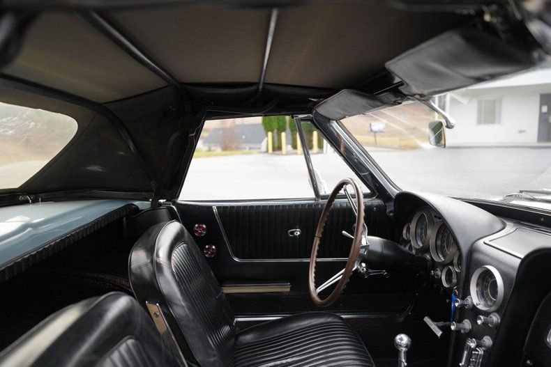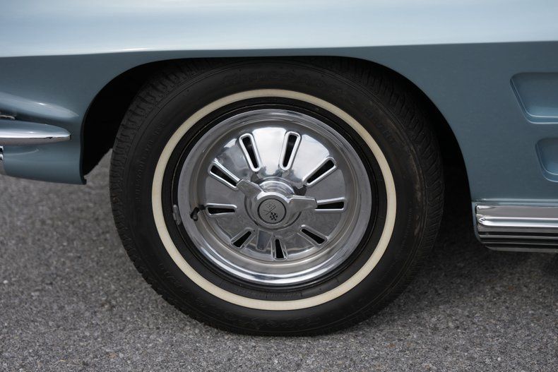 The Silver Blue finish highlights the Corvette's classic lines, complemented by excellent chrome bumpers, bright emblems, and polished stainless trim. The black convertible top fits tightly and remains in excellent condition. Knock-off"style wheel covers and Firestone whitewall tires complete the authentic presentation.