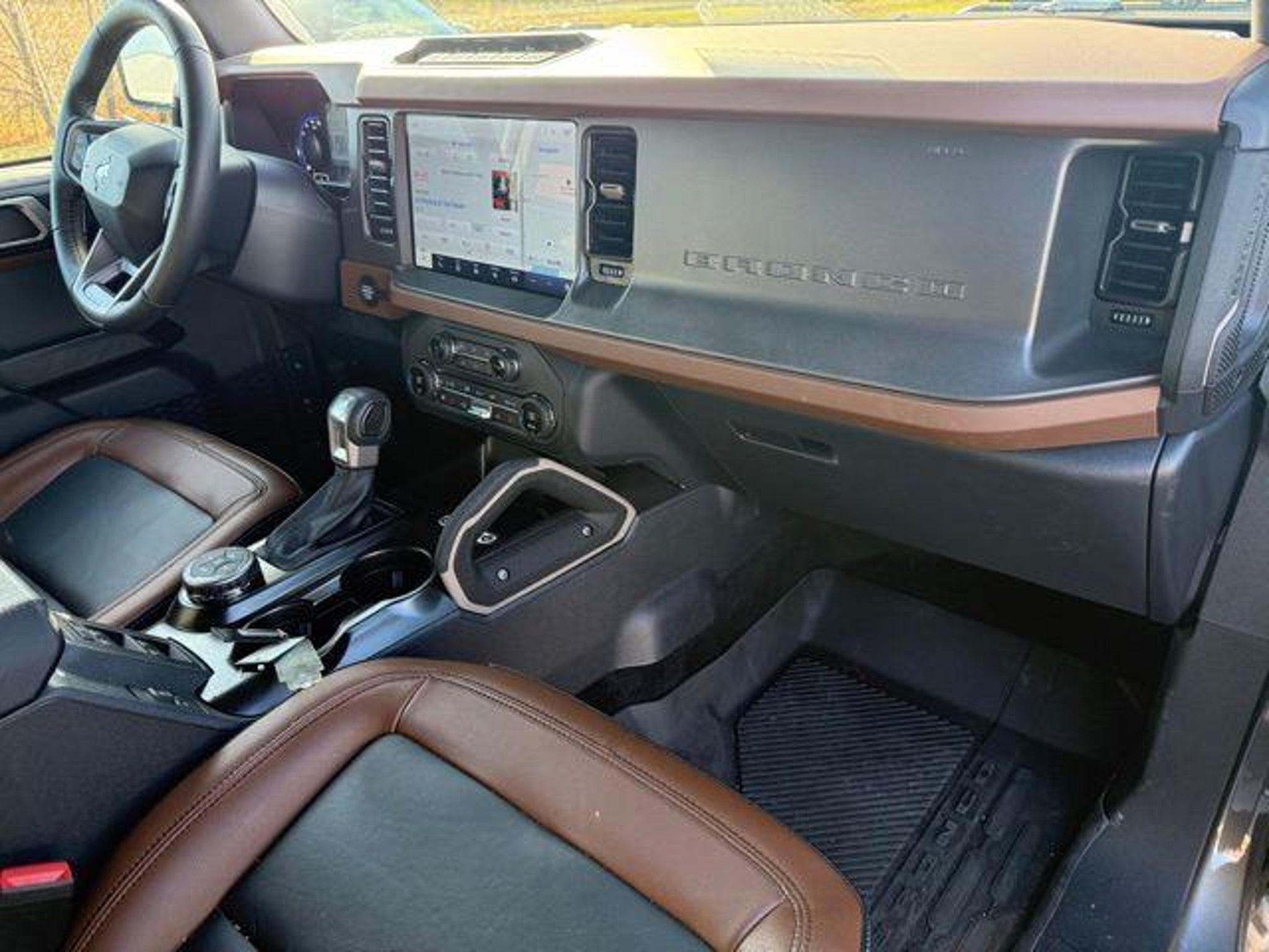 Outrun the ordinary in our One Owner 2024 Ford Bronco Outer Banks 4 Door 4X4 with the Sasquatch Pack that's fierce and fantastic in Carbonized Gray Metallic! Powered by a TurboCharged 2.3 Liter EcoBoost 4 Cylinder delivering 300hp to a 10 Speed Automatic transmission for revved-up trail running with our Sasquatch Pack. It adds a high-clearance suspension, electronic locking axles, high-clearance fender flares, and beadlock-capable wheels to our Four Wheel Drive SUV, which sees nearly 18mpg on the highway. Our Bronco's bold design boasts LED lighting, fog lamps, powder-coated tube steps, 17-inch dark carbon wheels, a swingout tailgate, a removable roof/doors, and white Bronco lettering on the grille. Our Outer Banks cabin is engineered for comfortable adventures with heated two-tone leather/vinyl front seats, a leather-wrapped steering wheel, dual-zone automatic climate control, remote start, keyless access/ignition, and an AC power outlet. Impressive technologies power the infotainment system with a 12-inch touchscreen, an 8-inch driver display, WiFi compatibility, voice recognition, wireless Android Auto?/Apple CarPlay?, Bluetooth?, and a seven-speaker sound system. Ford encourages you to stay safe as you go wild by supplying automatic braking, forward collision warning, lane-keeping assistance, blind-spot monitoring, a rearview camera, hill start assistance, trailer sway control, and more. It's time to tame the trail and master the pavement in our Bronco Outer Banks! Save this Page and Call for Availability. We Know You Will Enjoy Your Test Drive Towards Ownership!