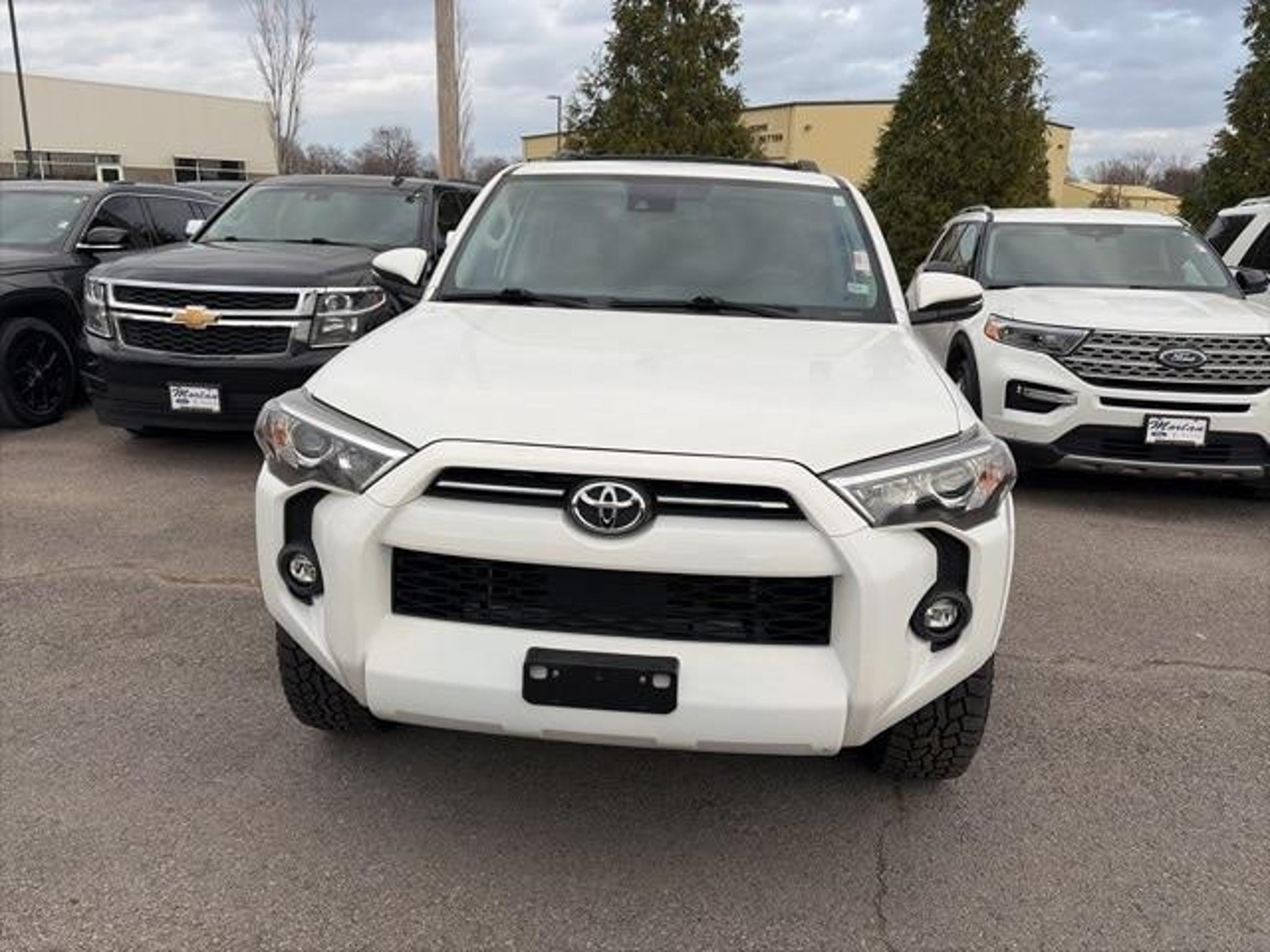 Please consider inquiring about our vehicle pick-up and delivery services. Our online digital storefront will continue to be a helpful resource for shopping inventory, vehicle research, service and parts information, and communicating directly with the dealership. No matter the department you're looking to reach, we have staff that can assist your needs. â Thorough cleanings of the dealership facilities daily â Sanitizing gel and foam stations available on-site â Our staff has been given specific instructions on hand washing and the importance of staying home if they feel ill â Adhering to the recommended six feet of social distance from other staff and customers. 4WD, Black/Graphite Artificial Leather, 17 6-Spoke Alloy Wheels, 3.727 Axle Ratio, 4-Wheel Disc Brakes, 8 Speakers, ABS brakes, Air Conditioning, Alloy wheels, AM/FM radio: SiriusXM, Anti-whiplash front head restraints, Apple CarPlay/Android Auto, Auto High-beam Headlights, Auto-dimming Rear-View mirror, Blind Spot Monitor (BSM), Brake assist, Bumpers: body-color, Compass, Driver door bin, Driver vanity mirror, Dual front impact airbags, Dual front side impact airbags, Electronic Stability Control, Emergency communication system: Safety Connect with 1-year trial, Exterior Parking Camera Rear, Front anti-roll bar, Front Bucket Seats, Front Center Armrest, Front fog lights, Front reading lights, Front wheel independent suspension, Garage Door Opener, Garage door transmitter: HomeLink, Heated door mirrors, Heated Front Bucket Seats, Heated front seats, Illuminated entry, Knee airbag, Leather Shift Knob, Leather steering wheel, Low tire pressure warning, Occupant sensing airbag, Outside Rear View Mirror, Outside temperature display, Overhead airbag, Overhead console, Panic alarm, Passenger door bin, Passenger vanity mirror, Power door mirrors, Power driver seat, Power passenger seat, Power steering, Power windows, Radio: Premium Audio w/Dynamic Navigation, Rear anti-roll bar, Rear seat center armrest, Rear window defroster, Rear window wiper, Remote keyless entry, Roof rack: rails only, Security system, SofTex Seat Trim, Speed control, Speed-sensing steering, Split folding rear seat, Spoiler, Steering wheel mounted audio controls, Tachometer, Telescoping steering wheel, Tilt steering wheel, Traction control, Trip computer, Turn signal indicator mirrors, Variably intermittent wipers, 4WD, Black/Graphite Artificial Leather. Clean CARFAX. Odometer is 2115 miles below market average! White 2022 Toyota 4Runner 4D Sport Utility SR5 Premium 4.0L V
