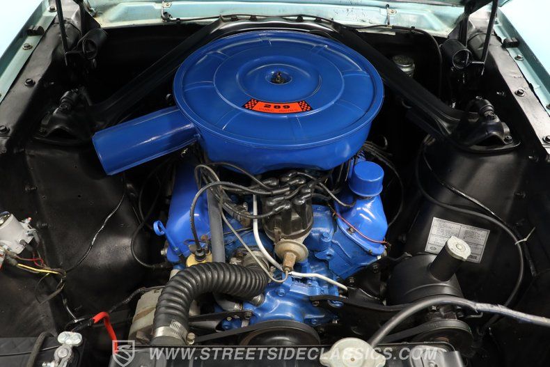 Under the hood, you'll find a spirited 289 V8 engine paired with a smooth-shifting 3-speed automatic transmission. The engine bay retains a stock appearance but has been carefully maintained, featuring a 2-barrel carburetor, fresh belts, hoses, and wires. Power steering enhances maneuverability, while the dual exhaust and drum brakes round out the mechanical package. This coupe delivers a driving experience that is both authentic and enjoyable, with solid firewall and radiator support that speak to its quality restoration.