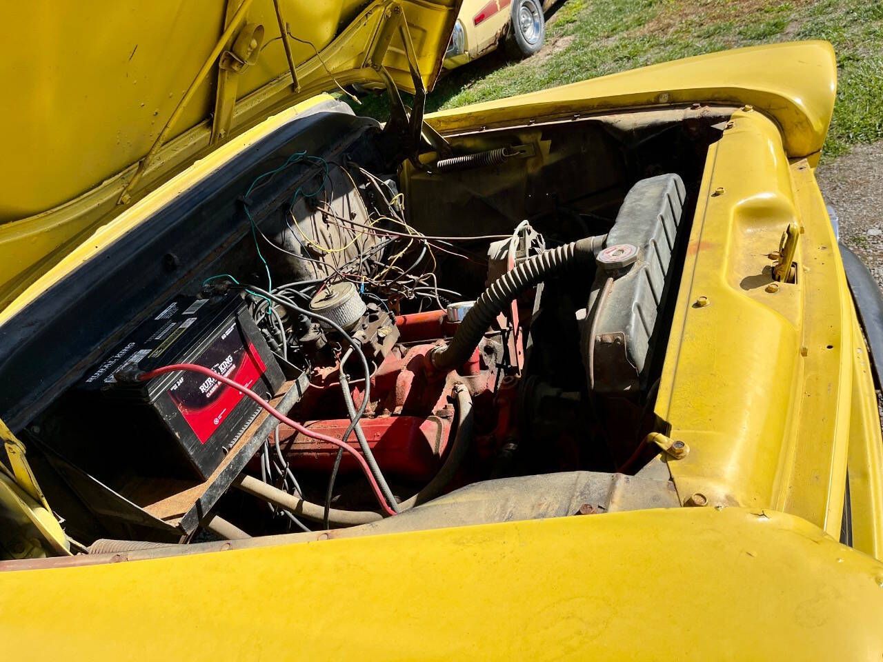 FOR SALE AT AND OWNED BY 500 CLASSIC AUTO -BEST TO CALL 765-345-5211. GOOD OL' 59 CHEVY 3100 SHORT BED WITH FACTORY NAPCO 4X4. RARE TRUCK AND MORE RARE WITH SHORT BED. HAS NICE RUNNING 283 2BBL, 4 SPEED MANUAL W/ GRANNY GEAR, LIFTED 3 OR 4 INCHES AND MILES UNKNOWN. SOME PHOTOS SHOW IT BRIGHTER YELLOW THAN OTHERS. IT IS MORE OF THE DULLER COLOR SEEN IN PHOTOS BUT SHE DOES RUN AND DRIVE. WITH JUST A LITTLE WORK SHE CAN BE STREET LEGAL. NO GLASS NEEDED. LAST OWNER JUST PUT ALL NEW TINTED GLASS IN HER. NOTE : I HAVE POSTED 106 PHOTOS AND A VIDEO AT www.500classicauto.com. SELLING TRUCK AS IS WITH NO WARRANTY. HAVE CLEAN INDIANA TITLE WITH NO MILES ON IT. WHATS NEEDED FOR ROAD - SOME THINGS ARE TAIL LIGHTS, WIPERS, REAR BRAKES. WE GOT FRONTS WORKING. REAR NEEDS AT LEAST A NEW HOSE AND LIKELY WHEEL CYLINDERS. WE CLEANED LEFT FRONT AND ADDED HOSE TO MAKE IT WORK. MASTER CYLINDER WORKS BUT LEAKS SOME FROM THE SEAL. BATTERY DON'T CHARGE. EXHAUST LEAKS AT FRONT. TURN SIGNAL ON DASH FLASHES BUT THE OUTSIDE DONT FLASH. HEADLIGHTS WORK AND TEMP AND OIL PRESSURE WHICH IS GOOD. CLUTCH WORKS AND TRANS SHIFTS GREAT. 4 X4 HI AND LO WORKS AND LOCK OUTS. BODY - DOORS WORK GREAT. IT SEEMS YOU ALWAYS HAVE TO SLAM THEM ON THESE TRUCKS BUT NOT THIS ONE AND THEY ARE SOLID. THE FENDERS ARE REPAIRABLE BUT BEEN PATCHED BEFORE. I THINK BUY NEW. THE TOP AND AT TOP OF WINDSHIELD IS NICE. NICE HOOD. BED IS PRETTY GOOD EXCEPT SOME FLOOR RAILS AND 1 FENDER. FRAME IS REALLY GOOD. I KNOW LOOKING AT REAR FRAME PHOTOS SHOWS WHAT COULD BE RUFF SPOTS BUT ITS JUST FLACKY PAINT AND LITE SURFACE RUST. CAB CORNERS NEED WORK. IF YOU END UP SHIPPING THIS TRUCK AND WANT THAT REAR BUMPER I WILL WIRE IT TO BED SO IT DON'T COME OUT. OTHER PARTS IN PHOTOS CAN GO IN CAB TO SHIP. INSIDE - I WOULD BUY EVERYTHING FOR INSIDE IF RESTORING. FLOOR IS SOILD. STEPS HAD BEEN REDONE BUT YOU MAY WANT REDO SOME OF IT. I BOUGHT THIS TRUCK FROM A GUY WHO FLIPS CARS. HE GOT IT OUT OF N. CAROLINA. HE PUT ALL NEW GLASS IN IT SINCE WINDSHIELD WAS BUSTED. HE ALSO GOT IT CHANGED TO INDIANA TITLE. I JUST GOT FRONT BRAKES TO WORK AND CHECKED FLUIDS. I WOULD SAY THIS THING WAS PAINTED BACK 20 TO 30 YEARS AGO. I POSTED PHOTO OF THE ENGINE SUFFIX CODE D. ONLINE SHOWS ITS A 283 ENG FROM 1958 TO 1964. I CANT SEE THE CASTING # BEHIND ENGINE OR DATE. SHE WILL MAKE A GOOD TRUCK TO RESTORE OR TO JUST ROLL AROUND IN IT. SHIPPING - WE CAN DELIVER ALL OVER. I NEED CITY AND ZIP TO PRICE. FINANCING - SOME COMPANIES WILL LOAN ON THIS TRUCK. PLEASE CALL ME TO GO OVER IT.