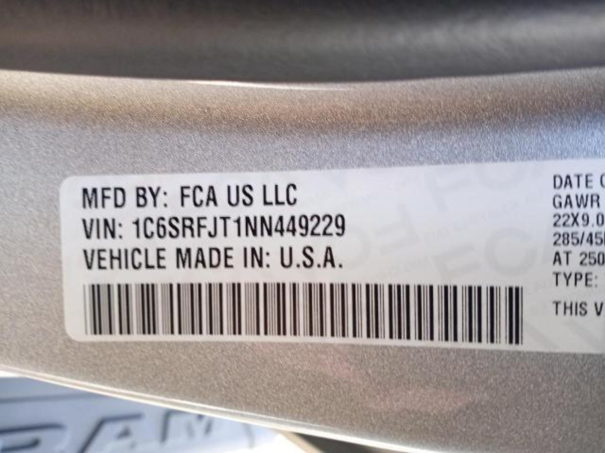 VIN 1C6SRFJT1NN449229
