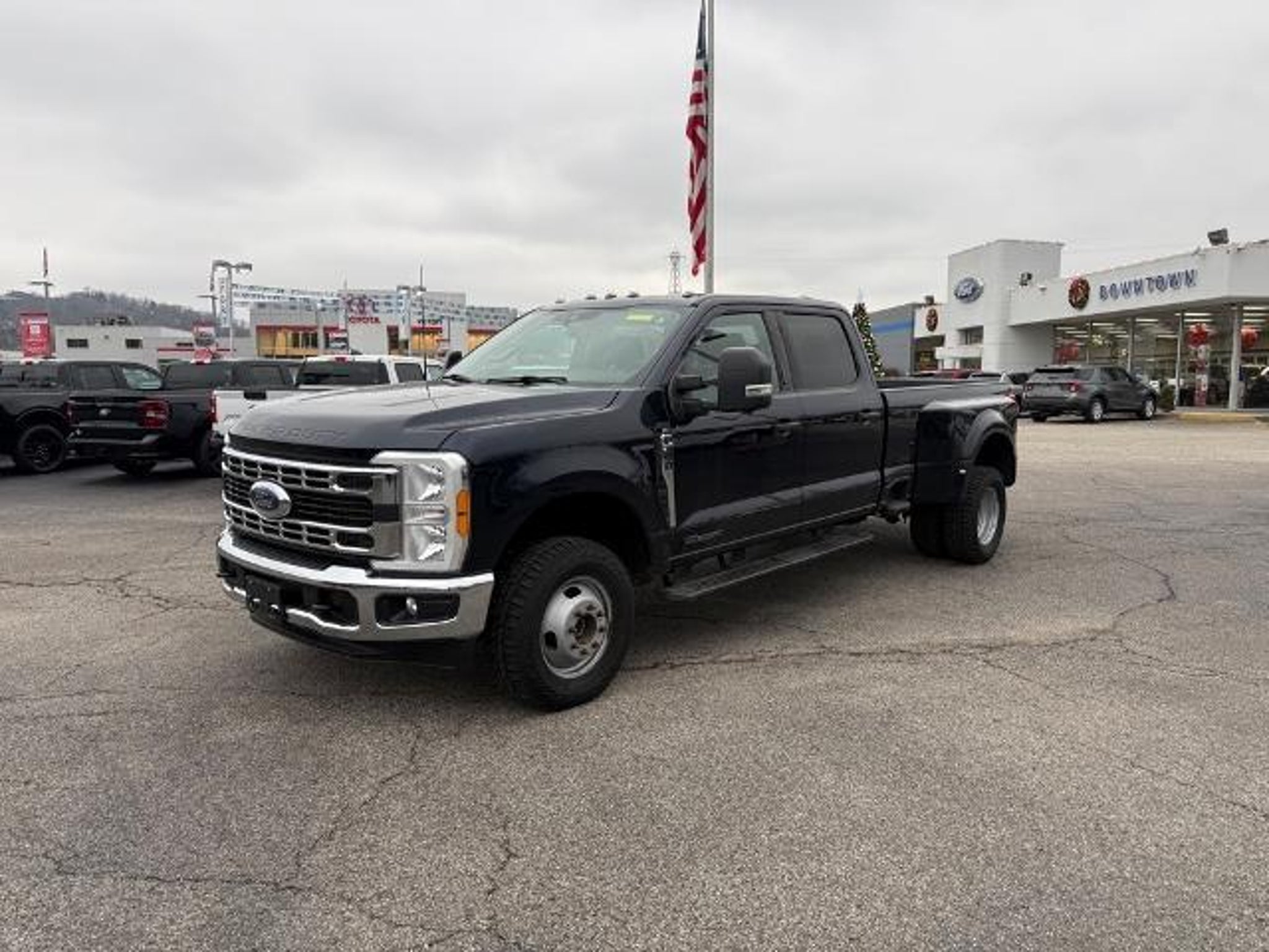 2023 Ford F-350SD XLT DRW Blue 4WD 10-Speed Automatic Power Stroke 6.7L V8 DI 32V OHV Turbodiesel ABS brakes, Compass, Electronic Stability Control, Heated door mirrors, Illuminated entry, Low tire pressure warning, Remote keyless entry, Traction control. GVWR: 14,000 lb Payload Package, ABS brakes, Compass, Electronic Stability Control, Heated door mirrors, Illuminated entry, Low tire pressure warning, Remote keyless entry, Traction control, 4-Wheel Disc Brakes, Air Conditioning, Brake assist, Delay-off headlights, Dual front impact airbags, Dual front side impact airbags, Dual rear wheels, Emergency communication system: SYNC 4 911 Assist, Exterior Parking Camera Rear, Front anti-roll bar, Front reading lights, Fully automatic headlights, Outside temperature display, Overhead airbag, Overhead console, Panic alarm, Passenger vanity mirror, Power door mirrors, Power steering, Power windows, Rear anti-roll bar, Rear reading lights, Rear step bumper, Speed control, Split folding rear seat, Steering wheel mounted audio controls, Tachometer, Telescoping steering wheel, Tilt steering wheel, Trip computer, Turn signal indicator mirrors, and Variably intermittent wipers.