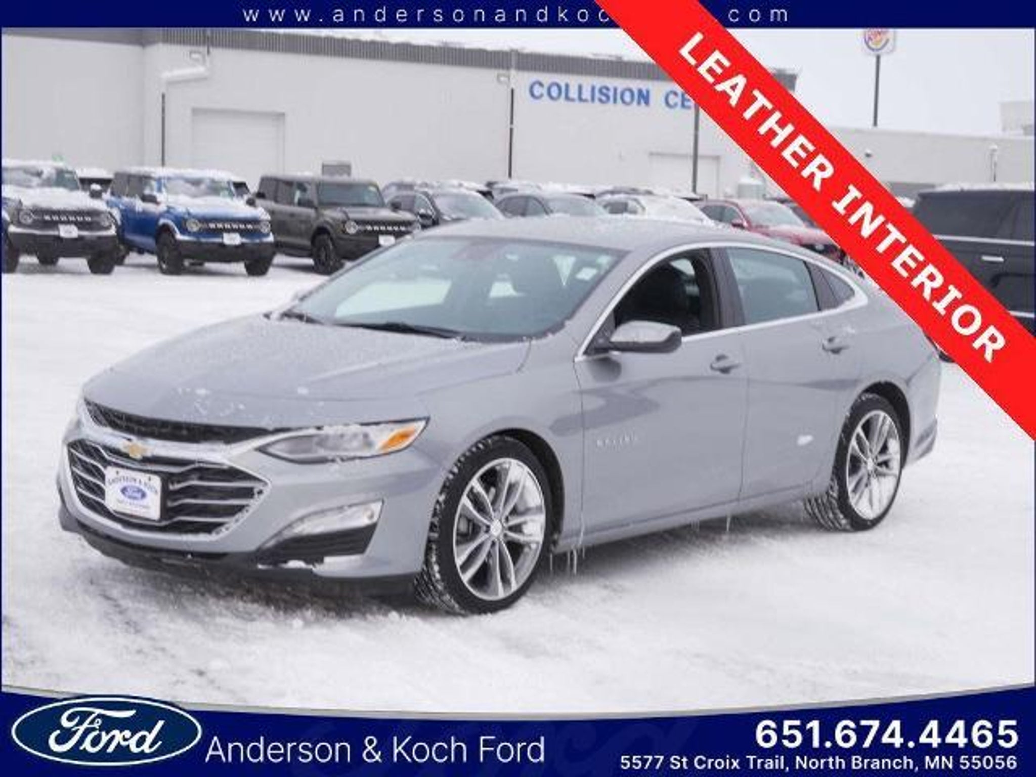 HEATED FRONT SEATS, HEATED STEERING WHEEL, DUAL-ZONE CLIMATE CONTROL, REMOTE START SYSTEM, 8 TOUCHSCREEN, APPLE CARPLAY AND ANDROID AUTO, REAR VIEW CAMERA, REAR PARK ASSIST, FOLLOWING DISTANCE INDICATOR, FORWARD COLLISION ALERT, LANE KEEP ASSIST WITH LANE DEPARTURE WARNING, AUTOMATIC EMERGENCY BRAKING, POWER/HEATED DOOR MIRRORS, 19 ALUMINUM WHEELS AND MORE! 2024 Sterling Gray Metallic Chevrolet Malibu LT Emergency communication system: OnStar and Chevrolet connected services capable, Preferred Equipment Group 2LT, Split folding rear seat, Steering wheel mounted audio controls, Wireless Apple CarPlay/Android Auto. 28/36 City/Highway MPG Anderson & Koch Ford is conveniently located just outside of the Twin Cities in North Branch, MN. We have earned Ford Motor Company's highest honor for six consecutive years, The President's Award. From the moment you walk into our showroom, you'll know our commitment to Customer Service is second to none. We are looking forward to working with you! Call 651-674-4465 for more details!!! Priced below KBB Fair Purchase Price!
