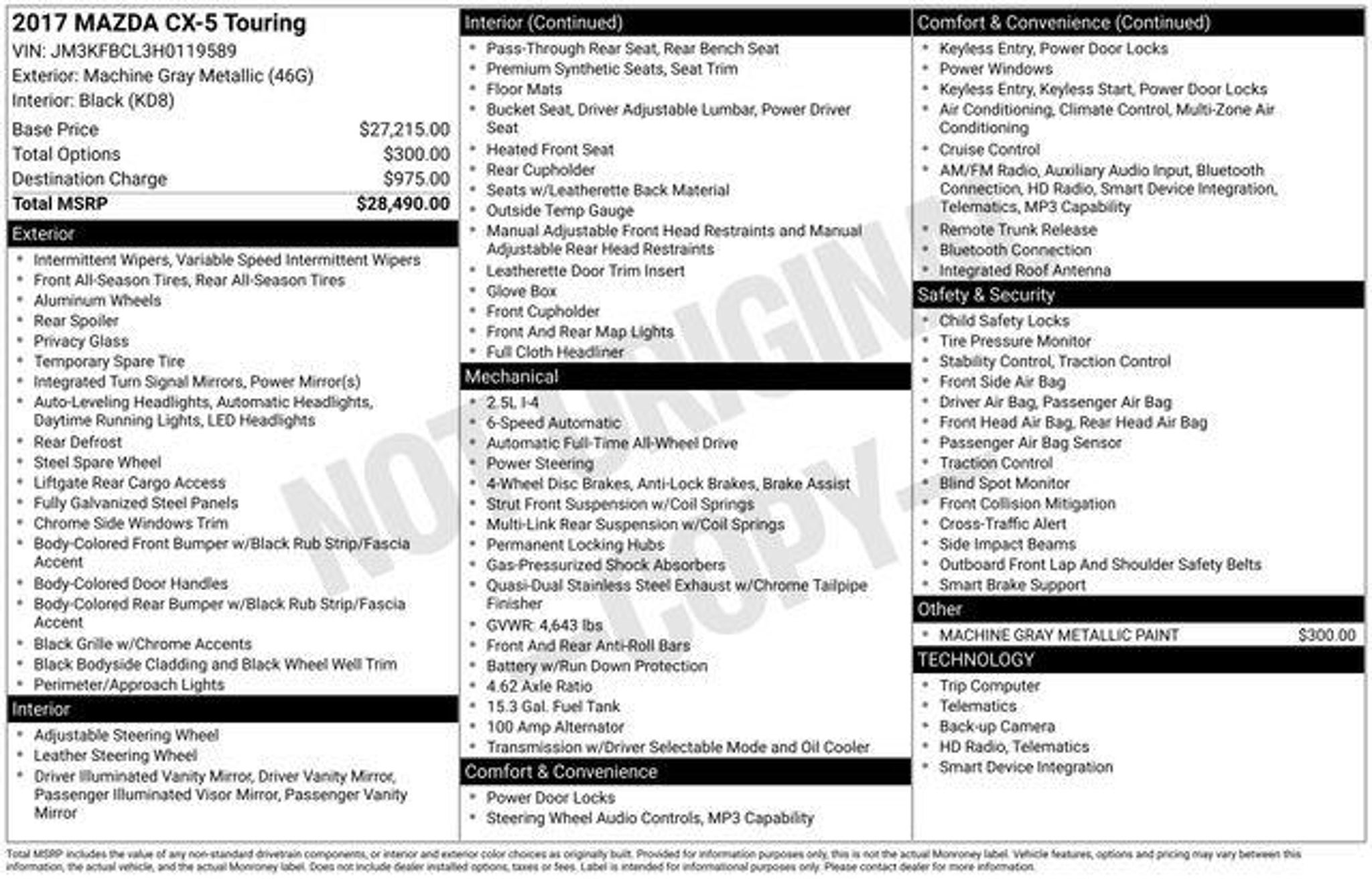 Details > 2017 Mazda CX-5 AWD Touring 4DR SUV For Sale in Easton, PA Private Party Sellers Click here to place your ad now! You auta tell them you saw the ad in AutaBuy when you call or email. 1/26 2/26 3/26 4/26 5/26 6/26 7/26 8/26 9/26 10/26 11/26 12/26 13/26 14/26 15/26 16/26 17/26 18/26 19/26 20/26 21/26 22/26 23/26 24/26 25/26 26/26 View 26 Photos View All Add to My Garage Parked in Your Garage! Koch 33 Ford Contact Seller: I would like to: Make Offer Check Availability Ask A Question Request More Photos Check Financing Options Send a copy of this message to me Add this listing to my garage Send to Mobile Mileage 92,746 Exterior Color Machine Gray Metallic Interior Color Black Doors 4 Engine 2.5L I4 Transmission 6 Speed Auto Stock # F31888B VIN JM3KFBCL3H0119589 Estimated Monthly Payment $252 mo Apply Now J.J. Best Banc & Co. 2017 Mazda CX-5 AWD Touring 4DR SUV Description: · Mileage: 92,746 · Color: Machine Gray Metallic Price: $14,999. Price: $14,495. Mileage 92,746 Exterior Color Machine Gray Metallic Interior Color Black Doors 4 Engine 2.5L I4 Transmission 6 Speed Auto Stock # F31888B VIN JM3KFBCL3H0119589 Estimated Monthly Payment $252 mo Apply Now J.J. Best Banc & Co. Add to My Garage Parked in Your Garage! Message Seller Koch 33 Ford Contact Seller: I would like to: Make Offer Check Availability Ask A Question Request More Photos Check Financing Options Send a copy of this message to me Add this listing to my garage Offered for sale by Koch 33 Ford EASTON, PA Price: $14,999. Price: $14,495. Offered for sale by Koch 33 Ford EASTON, PA [entire inventory] Ask Auta Intelligence How far is this from me? What factory options were available? What colors did these come in? Do you have a similar car to sell? List It Now! Questions about this car? Ask Auta Intelligence for production numbers, available options, etc. · Subscribe to AutaBuy! · Send a Gift Subscription Notice to a Friend