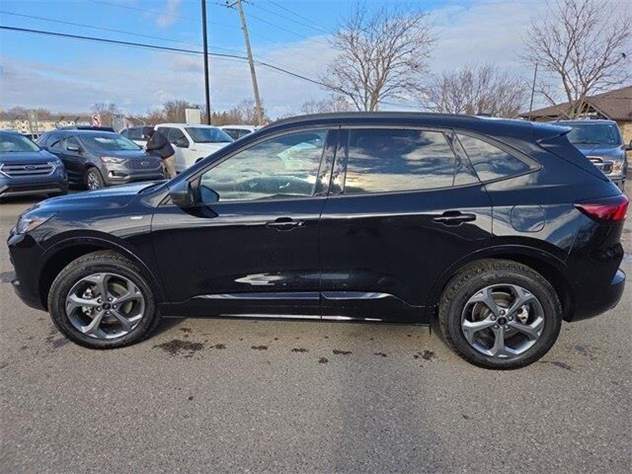 AWD. Certified. 2024 Ford Escape ST-Line Agate Black Metallic Ford Blue Certified Details: * Roadside Assistance * 139 Point Inspection * Transferable Warranty * Limited Warranty: 3 Month/4,000 Mile (whichever comes first) after new car warranty expires or from certified purchase date * Vehicle History * Warranty Deductible: $100 * and 11,000 FordPass Rewards Points to use toward first maintenance visit Cold Weather Package (Heated Front Row Seats, Heated Sideview Mirrors, Heated Steering Wheel, and Remote Starter System), Equipment Group 300A, Tech Pack #1 (Adaptive Cruise Control w/Stop-and-Go, Connected Navigation, Ford Co-Pilot360 Assist, Rear Parking Sensor, Rear-View Camera, Speed Sign Recognition, and SYNC 4 w/Enhanced Voice Recognition), Ford Blue Certified Certified, AWD, 3.81 Axle Ratio, 4-Wheel Disc Brakes, 6 Speakers, ABS brakes, Air Conditioning, Alloy wheels, AM/FM radio: SiriusXM, AM/FM Stereo, Auto High-beam Headlights, Automatic temperature control, Brake assist, Bumpers: body-color, Compass, Delay-off headlights, Driver door bin, Driver vanity mirror, Dual front impact airbags, Dual front side impact airbags, Electronic Stability Control, Emergency communication system: SYNC 4 911 Assist, Exterior Parking Camera Rear, FordPass Connect, Four wheel independent suspension, Front & Rear Floor Liners w/Carpet Mats, Front anti-roll bar, Front Bucket Seats, Front Center Armrest, Front dual zone A/C, Front reading lights, Fully automatic headlights, Illuminated entry, Knee airbag, Low tire pressure warning, Occupant sensing airbag, Outside temperature display, Overhead airbag, Overhead console, Panic alarm, Passenger door bin, Passenger vanity mirror, Power door mirrors, Power driver seat, Power Liftgate, Power steering, Power windows, Radio data system, Rear anti-roll bar, Rear reading lights, Rear seat center armrest, Rear window defroster, Rear window wiper, Remote keyless entry, Roof rack: rails only, Speed control, Speed-sensing steering, Speed-Sensitive Wipers, Split folding rear seat, Spoiler, Sport steering wheel, Steering wheel mounted audio controls, SYNC 4, Tachometer, Telescoping steering wheel, Tilt steering wheel, Traction control, Trip computer, Variably intermittent wipers, Vinyl/Cloth Front Sport Contour Bucket Seats, and Wheels: 18 Rock Metallic Painted Aluminum. Odometer is 8326 miles below market average! 26/32 City/Highway MPG Skalnek Ford has made several enhancements to our dealership sales practices to continue providing our customers the service and ex