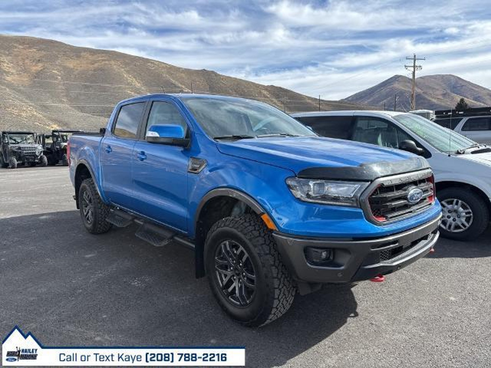 This 2023 Blue Ford Ranger Lariat 4WD is well equipped and includes these features and benefits: 4WD, 3.73 Axle Ratio, 4-Wheel Disc Brakes, 6 Speakers, ABS brakes, Air Conditioning, Alloy wheels, AM/FM radio: SiriusXM, AM/FM Stereo, Auto High-beam Headlights, Auto-dimming Rear-View mirror, Automatic temperature control, Brake assist, Bumpers: body-color, Compass, Delay-off headlights, Driver door bin, Driver vanity mirror, Dual front impact airbags, Dual front side impact airbags, Electronic Stability Control, Emergency communication system: SYNC 3 911 Assist, Exterior Parking Camera Rear, Front anti-roll bar, Front Bucket Seats, Front Center Armrest, Front dual zone A/C, Front fog lights, Front Heated Leather-Trimmed Bucket Seats, Front reading lights, Front wheel independent suspension, Fully automatic headlights, Heated door mirrors, Heated front seats, Illuminated entry, Leather Shift Knob, Leather steering wheel, Low tire pressure warning, Occupant sensing airbag, Outside temperature display, Overhead airbag, Overhead console, Panic alarm, Passenger door bin, Passenger vanity mirror, Power door mirrors, Power driver seat, Power passenger seat, Power steering, Power windows, Rear reading lights, Rear seat center armrest, Rear step bumper, Rear window defroster, Remote keyless entry, Security system, SiriusXM Satellite Radio, Speed control, Speed-sensing steering, Steering wheel mounted audio controls, SYNC 3, SYNC 3/Apple CarPlay/Android Auto, Telescoping steering wheel, Tilt steering wheel, Traction control, Trip computer, Turn signal indicator mirrors, Variably intermittent wipers, Voltmeter, Wheels: 18 Machined Alum w/Stealth Gray Pockets, 4WD. Come to www.karlmalonefordhailey.com To see our specials!! Call us at 208-788-2216 For help with any of our departments. From the day we opened our doors, Karl Malone Ford Hailey has had one priority: you. We've dedicated ourselves to offering the best cars, trucks, and SUVs to our local communities by following the principles on which the first Karl Malone dealership was founded. Dealer arranged Financing is required for all discounts to be applied. Special finance offers may not be combined with some factory incentives. While we strive for accuracy, errors may occur, so please verify all information with a customer service representative. For the most accurate pricing, call us at (208) 288-7816 or visit our dealership in person. Prices and payments are subject to change based on manufacturer incentiveS.