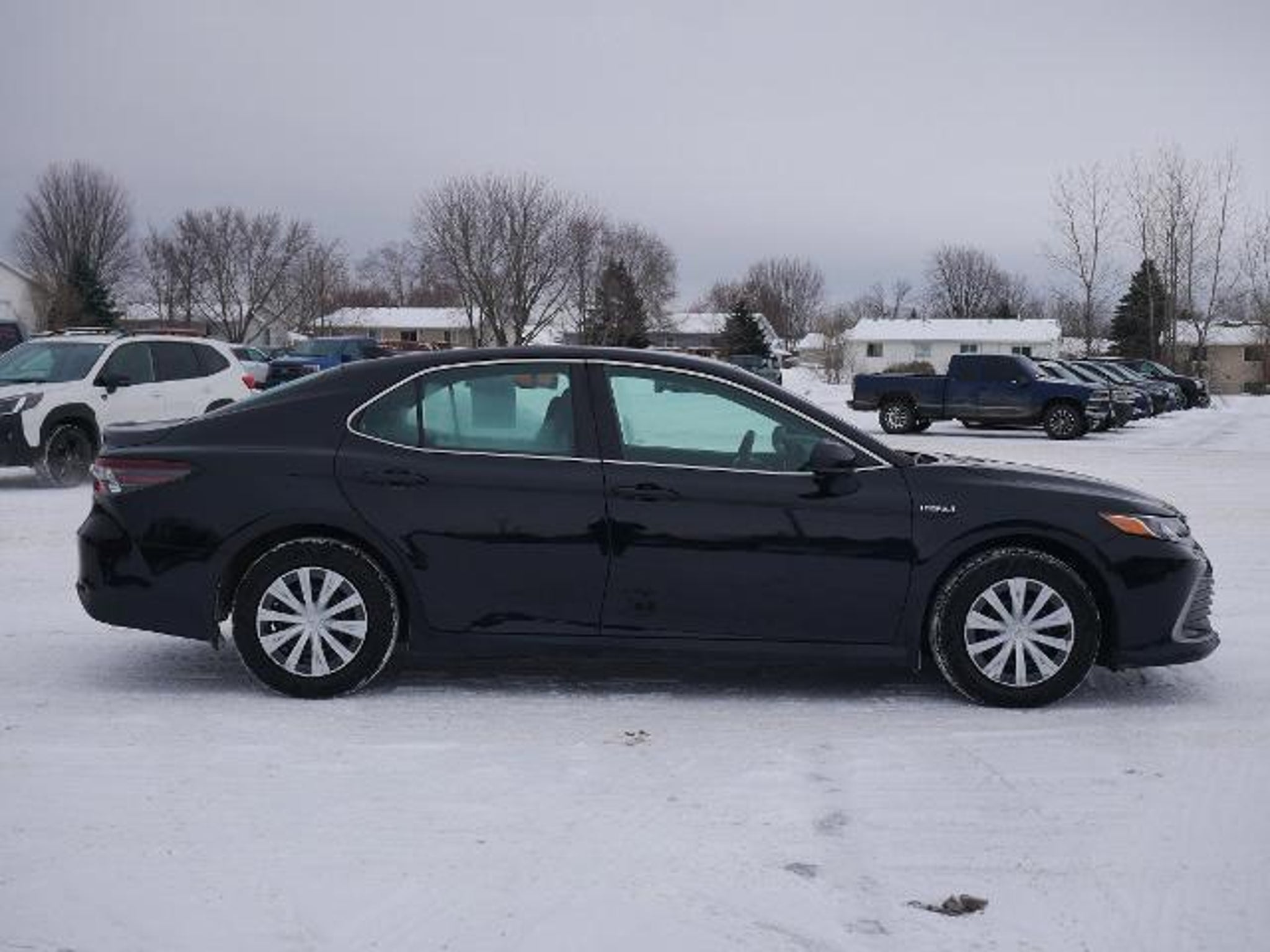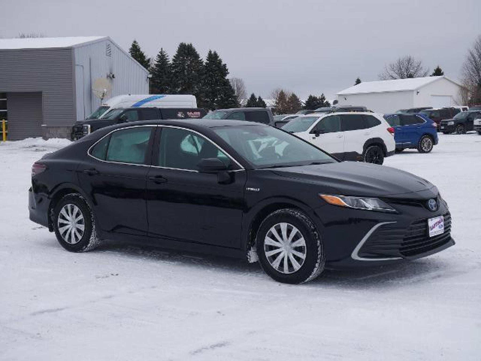 If saving money at the pump is your love language, this 2021 Toyota Camry Hybrid LE is about to sweep you off your feet. Rocking a jaw-dropping 52 MPG combined (yes, fifty-two), this hybrid is basically a financial advisor on wheels. Powered by a 2.5L 4-cylinder hybrid system with smooth CVT transmission, it delivers quiet, confident performance while laughing in the face of gas prices. Finished in sleek Midnight Black Metallic, this Camry looks sharp without trying too hard --- grown-up cool at its finest. Inside, you'll enjoy dual-zone automatic climate control, power driver seat with lumbar support, Smart Key with push-button start, and a clean, modern 7-inch touchscreen with Apple CarPlay® and Android Auto? to keep your playlists and navigation right where you want them. Safety is handled with Toyota Safety Sense? 2.5, including Pre-Collision Braking with Pedestrian Detection, Lane Tracing Assist, Dynamic Radar Cruise Control, and Road Sign Assist --- basically your built-in co-pilot that never asks for snacks. With top-tier 5-Star Safety Ratings, incredible fuel savings, and Toyota's legendary reliability, this Camry Hybrid LE is the kind of smart decision that still feels really, really good to drive!