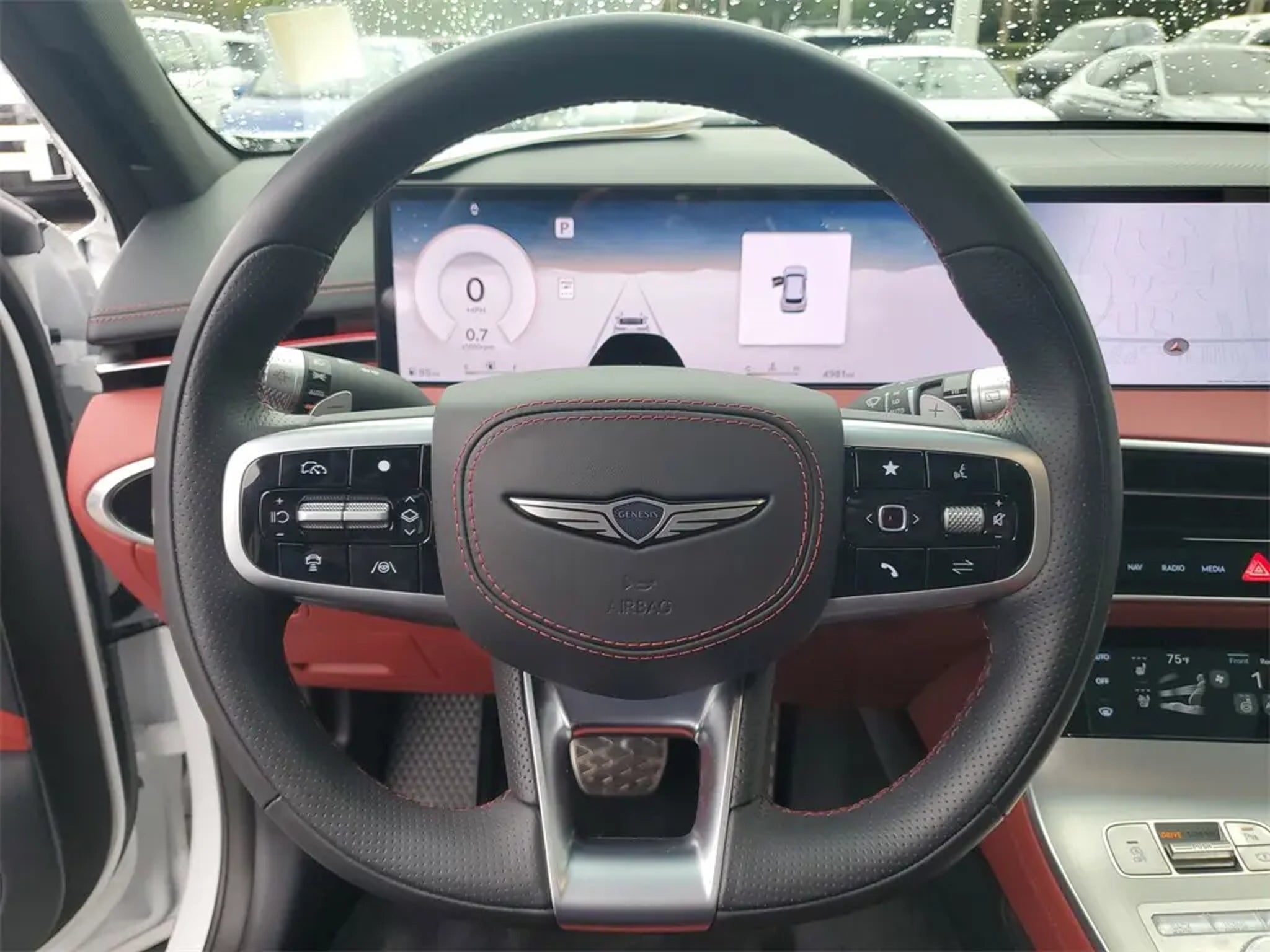 The price does not include tax, tag, license, an electronic filing fee of $449.00**, a private tag agency fee of $199.00**, and a predelivery service charge of $1199.00** **This charge represents costs and profit to the dealer for items such as inspecting, cleaning, and adjusting vehicles, as well as preparing documents related to the sale. * EPA-estimate metric: these are contingent on ideal conditions within a lab. Real-world situations such as carrying passengers or cargo, using climate control, driving style, and ambient temperatures can affect actual metrics. 18/24 City/Highway MPG Certified. Uyuni White 2026 Genesis GV70 3.5T Sport Advanced AWD 8-Speed Automatic with SHIFTRONIC 3.5L DOHC This vehicle comes equipped with Option Group 01, Genesis Certified Certified, 16 Speakers, 4-Wheel Disc Brakes, ABS brakes, Adaptive suspension, Air Conditioning, Alloy wheels, AM/FM radio: SiriusXM, Android Auto & Apple CarPlay, Anti-whiplash front head restraints, Auto High-beam Headlights, Auto-dimming door mirrors, Auto-dimming Rear-View mirror, Automatic temperature control, Brake assist, Bumpers: body-color, Cargo Cover, Delay-off headlights, Driver door bin, Driver vanity mirror, Dual front impact airbags, Dual front side impact airbags, Electronic Stability Control, Emergency communication system: Genesis Connected Services, Exterior Parking Camera Rear, Four wheel independent suspension, Front anti-roll bar, Front Bucket Seats, Front Center Armrest w/Storage, Front dual zone A/C, Front reading lights, Fully automatic headlights, Garage door transmitter: HomeLink, Heated door mirrors, Heated front seats, Heated steering wheel, Illuminated entry, Knee airbag, Leather steering wheel, Low tire pressure warning, Memory seat, Navigation System, Occupant sensing airbag, Outside temperature display, Overhead airbag, Overhead console, Panic alarm, Passenger door bin, Passenger vanity mirror, Power door mirrors, Power driver seat, Power Liftgate, Power moonroof, Power passenger seat, Power steering, Power windows, Rain sensing wipers, Rear anti-roll bar, Rear reading lights, Rear seat center armrest, Rear window defroster, Rear window wiper, Remote keyless entry, Security system, Speed control, Speed-sensing steering, Speed-Sensitive Wipers, Split folding rear seat, Spoiler, Sport Leather Seating Surfaces, Steering wheel memory, Steering wheel mounted audio controls, Tachometer, Telescoping steering wheel, Tilt steering wheel, Traction control, Trip computer, Turn signal indicator mirrors, Up Seatback Cargo Mat, Variably intermittent wipers, Ventilated front seats, and Wheels: 19 Dark Metallic Glossy Alloy . Genesis Certified Details: * Powertrain Limited Warranty: 120 Month/100,000 Mile From original in-service date & zero (0) miles * Includes 10-year/Unlimited mileage Roadside Assistance with Rental Car & Trip interruption reimbursement, see dealers for specific vehicle eligibility. 3 yrs complimentary Genesis Connected Services. * Transferable Warranty * 191 Point Inspection * Vehicle History * Limited Warranty: 72 Month/75,000 Mile From original in-service date & zero (0) miles * Warranty Deductible: $50 * Roadside Assistance
