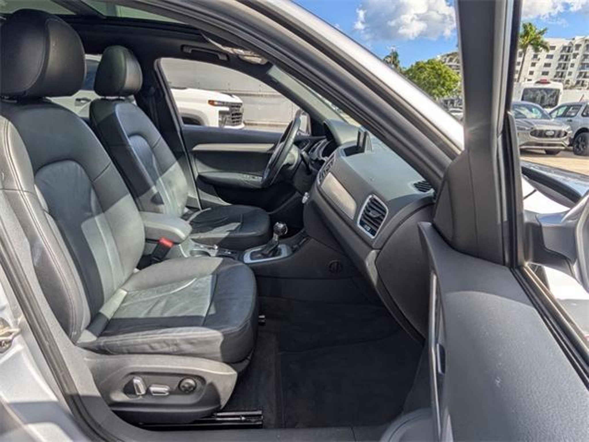 2018 Audi Q3 2.0T Premium Florett Silver Metallic Offered at Grieco Ford of Fort Lauderdale, Carfax Accident Free, Bluetooth, Backup Camera, All Routine Maintenance Up To Date, Local Trade, Bought and Serviced at Grieco Ford, Q3 2.0T Premium, Black w/Leather Seating Surfaces, Aluminum Satellite Inlays, Audi Advanced Key, Auto-Dimming Interior Mirror w/Compass, Convenience Package, Power Tailgate, Wheels: 18 5-Arm Turbine Design. Odometer is 26852 miles below market average! Priced below KBB Fair Purchase Price! 20/28 City/Highway MPG All pricing and details provided are believed to be accurate, but we do not warrant or guarantee such accuracy. The prices shown above may vary from region to region, as will incentives, and are subject to change. New vehicles offered may be eligible for manufacturer incentives which may change at any time and are subject to incentive qualification criteria and requirements, and which may be contingent upon manufacturer finance company approval. Manufacturer incentive data and vehicle features information is provided by third parties and believed to be accurate as of the time of publication. Vehicle information is based upon standard equipment and may vary from vehicle to vehicle. Please contact the dealership for complete vehicle information. All specifications, prices and equipment are subject to change without notice of correct errors or omissions. Prices and payments do not include sales tax or other taxes, tag, title, registration fees, government fees and tag agency fees are not included in the quoted price. Electronic Registration Filing fee of $549, Pre-delivery Service Fee of $1295 are not included in the quoted price. While great effort is made to ensure the accuracy of the information on our website, errors do occur. Further, vehicle listings within this website may not reflect all accurate vehicle items. Accessories and colors may vary. All inventory listed is subject to prior sale. The vehicle photo displayed may be an example only. Vehicle Photos may not match exact vehicles. Please confirm information and vehicle price and availability of incentives by calling or visiting us at the dealership. Manufacturerâs Suggested Retail Price (MSRP) is for customer information and customer comparison purposes only, and the actual sales price may be less or more than MSRP depending on market conditions. Equipped with Convenience Package (Aluminum Satellite Inlays, Audi Advanced Key, Auto-Dimming Interior Mirror w/Compass, and Power Tailgate), Q3 2.0T Premium, Black