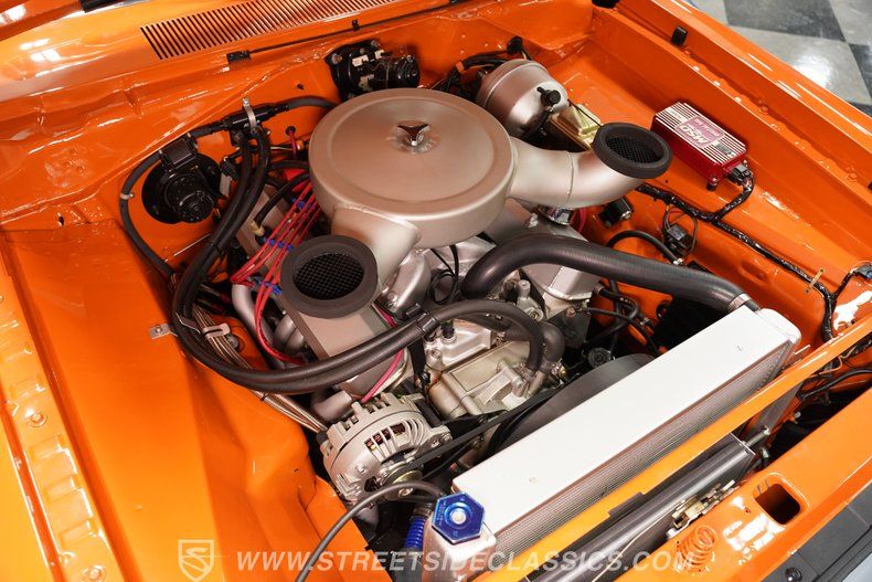 Highlights 1970 Dodge Dart Restomod 340 CID Engine With Aluminum Heads FiTech Go EFI Fuel Injection System 3-Speed Automatic Transmission With Manual Valve Body TCI Outlaw Ratchet Shifter Ford 9-Inch Rear Axle Subframe Connectors And Traction Bars Hedman Headers And Aluminum Radiator Deep Orange Metallic Paint With Matte Hood 15" Centerline 5-Star Wheels Power Disc Front Brakes, Drum Rear Brakes Vinyl Interior With Upgraded Gauges Side Exit Exhaust With Glasspack Mufflers Manual Throttle Body Documentation Envelopes Included Financing Available Vehicle Protection Plans Available Worldwide Shipping