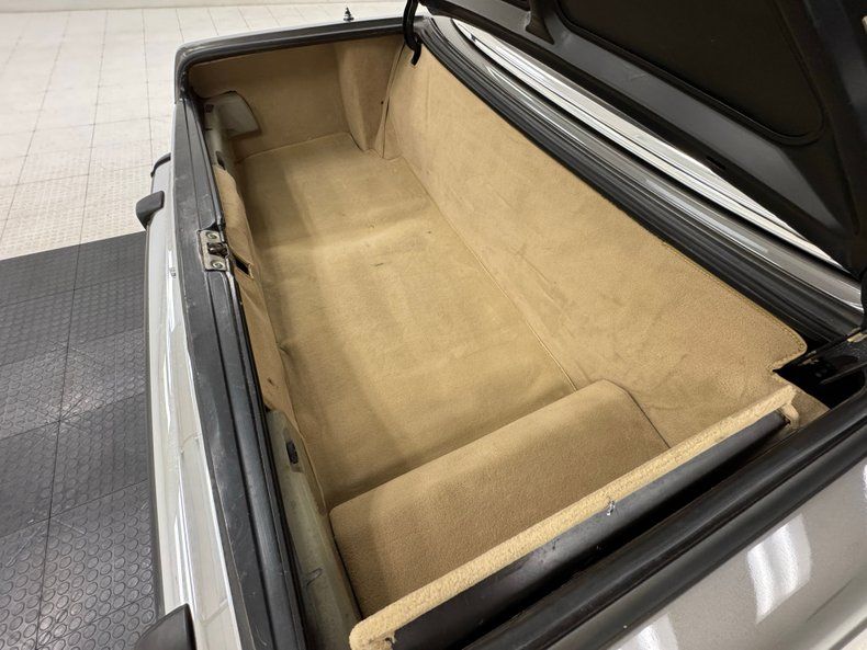 Another trademark of the Benz is the use of their leather like material called MB tex, and it starts on the beige door panels with smooth and perforated surfaces, showing a touch of patina but fully intact. The bucket seats show heavy patina and cracking in the material and the carpeted package shelf behind them is slightly soiled but in otherwise good shape. Up front, a texturized and rubberized steering wheel rim frames the efficient gauge cluster and the center stack is framed in Zebrano wood with an AM/FM radio and A/C control panel. Some laminate cracking is seen on the up facing wood on the center console that houses the black shifter and plush tan carpet on the floor is in good shape, protected by mats. The trunk is smartly finished with tan carpeted panels and presents cleanly.