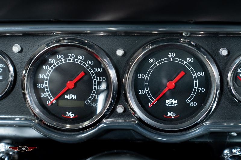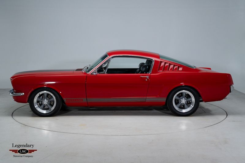 LMC is very proud to offer for sale this 1965 Ford Mustang Restomod Ford introduced the Fastback version of the popular Mustang in August 1964. It traded conventional trunk space for increased interior volume and gave the car lines similar to the Corvette and some European sports cars. The car was received with praise as it introduced a racing disposition to the Mustang line and even served as the basis for Carroll Shelby to build his GT350s. Today, Fastback Mustang’s serve as a very popular platform for Hot Rodders to improve on the performance and styling offered from the factory. This 1965 Ford Mustang is an exceptional resto mod example that has been built with some of the best components available. Finished in a beautiful shade of Red with Gray metallic stripes, complimented by a black vinyl interior fitted with Vintage Air, Bluetooth radio and updated gauges. Starting with the heart of this machine, is a BluePrint Engine 347ci/415hp With Holley Sniper Fuel Injection. Behind that healthy V8, is a close ratio Tremec TKO 5-speed transmission with a new clutch assembly that is easy to operate. Most important with any resto mod build is the suspension needed to make these old pony cars handle. This car is fitted with one of the best setups in the industry, it has the complete RidTech Street Grip system which includes front dual rate coil springs, front Sway bar, Delrin control arm bushings, ball joint wedge plate, HQ Series adjustable monotube shocks, composite leaf springs, Delrin leaf spring bushings and shackles. Braking duties are handled by Wilwood four piston calipers front and rear that are power assisted. Steering feel has been improved with an EPAS electric power steering system. This fastback rides on American Racing 16 inch Torque Thrusts wrapped in Continental Extreme Contact tires all around. Complete with tons of receipts, this 1965 Ford Mustang restomod begging to be driven and enjoyed by its next caretaker!