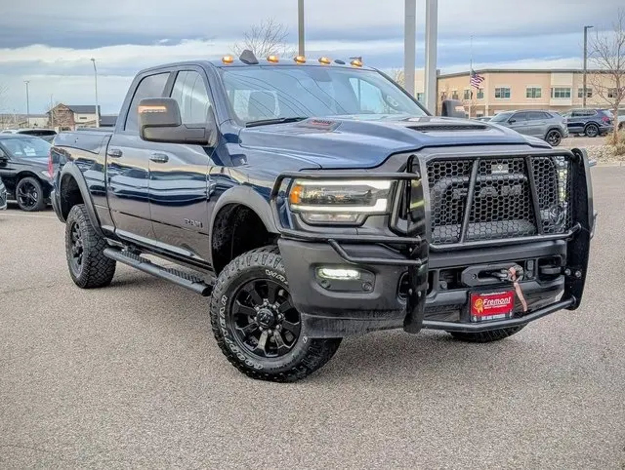 Certified. 2024 Patriot Blue Pearlcoat Ram 2500 Power Wagon 4WD 6.4L V8 Bed Utility Group (LED Bed Lighting, MOPAR Deployable Bed Step, and MOPAR Spray In Bedliner), Level 1 Equipment Group (12 Touchscreen Display, 2nd Row In Floor Storage Bins, 4G LTE Wi-Fi Hot Spot, 9 Alpine Speakers w/Subwoofer, Alexa Built-In, Apple CarPlay, Auto Adjust In Reverse Exterior Mirrors, Auto Dim Exterior Mirror, Auto High Beam Headlamp Control, Auto Power-Folding Mirrors, Auto-Dimming Exterior Passenger Mirror, Black Exterior Mirrors, Body Color Door Handles, Connected Travel & Traffic Services, Connectivity - US/Canada, Disassociated Touchscreen Display, Exterior Mirrors Courtesy Lamps, Exterior Mirrors w/Heating Element, Exterior Mirrors w/Memory, Exterior Mirrors w/Supplemental Signals, For Details, Visit DriveUconnect.com, For More Info, Call|Forward & Reverse Utility Lights, Front Door Accent Lighting, Global Telematics Box Module (TBM), Google Android Auto, GPS Antenna Input, GPS Navigation, HD Radio, Integrated Voice Command w/Bluetooth, LED Dome Lamp w/On/Off Switch, LED Interior Lighting, Mirror Running Lights, MOPAR Front & Rear Rubber Floor Mats, Off-Road Information Pages, Overhead LED Lamps, Power Adjust Mirrors, Power Adjustable Convex Aux Mirrors, Power Adjustable Pedals w/Memory, Power Heated Fold Telescopic Mirrors w/Memory, Power Telescoping Mirrors, Premium Overhead Console, Radio: Uconnect 5 Nav w/12.0 Display, Rain Sensitive Windshield Wipers, Rear Door Accent Lighting, Rear Power Sliding Window, Rear Window Defroster, Remote Proximity Keyless Entry, Security Alarm, Selectable Tire Fill Alert, SiriusXM Radio Service, SiriusXM w/360L, Sport Performance Hood, Sun Visors w/Illuminated Vanity Mirrors, Trailer Tow Pages, and Universal Garage Door Opener), Power Wagon Off-Road Group, Quick Order Package 2GP Power Wagon (Front Disconnecting Stabilizer Bar, Instrument Cluster Theme 5 - Power Wagon, MOPAR Power Wagon Decal, Painted Semi-Texture Film Instrument Panel Bezels, Power Wagon Instrument Panel Spec Plate, Power Wagon Tailgate Decal, Power Wagon Vertical Bar Grille w/RAM, Raised Ride Height, and RAM Articulink Suspension), Fremont Certified Certified, 2 Way Rear Headrest Seat, 220 Amp Alternator, 4 Adjustable Cargo Tie-Down Hooks, 4 Way Front Headrests, 4-Wheel Disc Brakes, 40/20/40 Split Bench Seat, 6 Speakers, ABS brakes, Active Noise Control System, Adaptive Steering System, Adjustable pedals, Air Conditioning, Alloy wheels, AM/FM radio: SiriusXM with 360L, Apple CarPlay/Android Auto, Auto-dimming Rear-View mirror, Automatic temperature control, Blind Spot & Cross Path Detection, Block heater, Brake assist, Cloth Heated Power Bench Seat (DISC), Compass, Delay-off headlights, Driver door bin, Dual Alternators Rated At 380 Amps, Dual front impact airbags, Dual front side impact airbags, Electric Shift-On-The-Fly Transfer Case, Electronic Stability Control, Electronically Controlled Throttle, Engine Block Heater, Folding Flat Load Floor Storage, Front anti-roll bar, Front Center Armrest w/Storage, Front dual zone A/C, Front Electric Winch, Front fog lights, Front License Plate Bracket, Front reading lights, Fully automatic headlights, Heated Door Mirrors, Heated Front Seats, Heated steering wheel, Illuminated entry, Leather steering wheel, Low tire pressure warning, Manufacturer's Statement of Origin, Mopar Black Tubular Side Steps, Navigation System, Occupant sensing airbag, Outside temperature display, Overhead airbag, Overhead console, Panic alarm, ParkView Rear Back-Up Camera, Passenger door bin, Passenger vanity mirror, Power 2-Way Driver Lumbar Adjust, Power Adjust 8-Way Driver Seat, Power Door mirrors, Power driver seat, Power steering, Power windows, Radio data system, Radio: Uconnect 5 Nav w/8.4 Display, Rain sensing wipers, RamBox Cargo Management System, Rear 60/40 Folding Seat, Rear anti-roll bar, Rear seat center armrest, Rear step bumper, Rear window defroster, Remote keyless entry, Speed contr