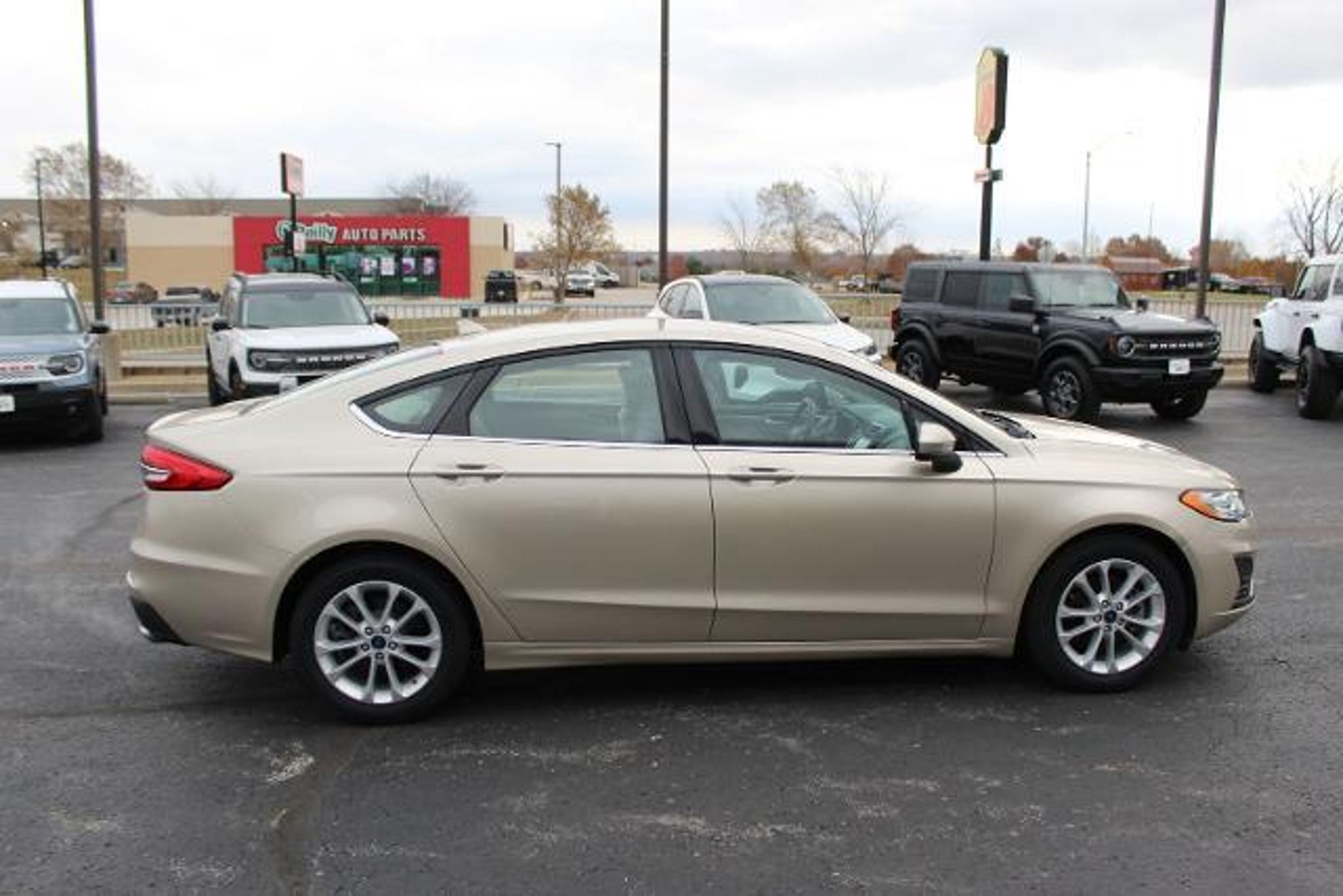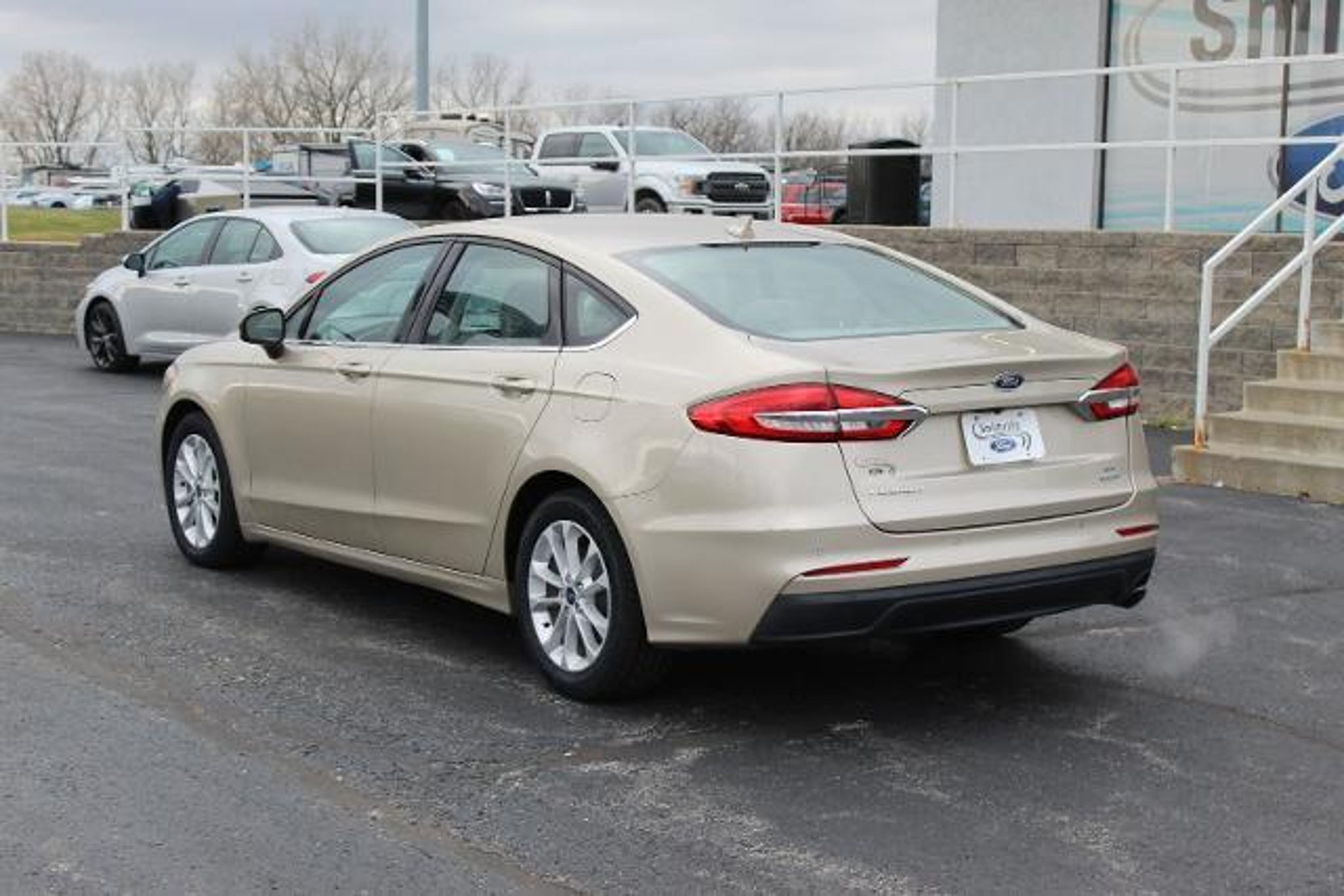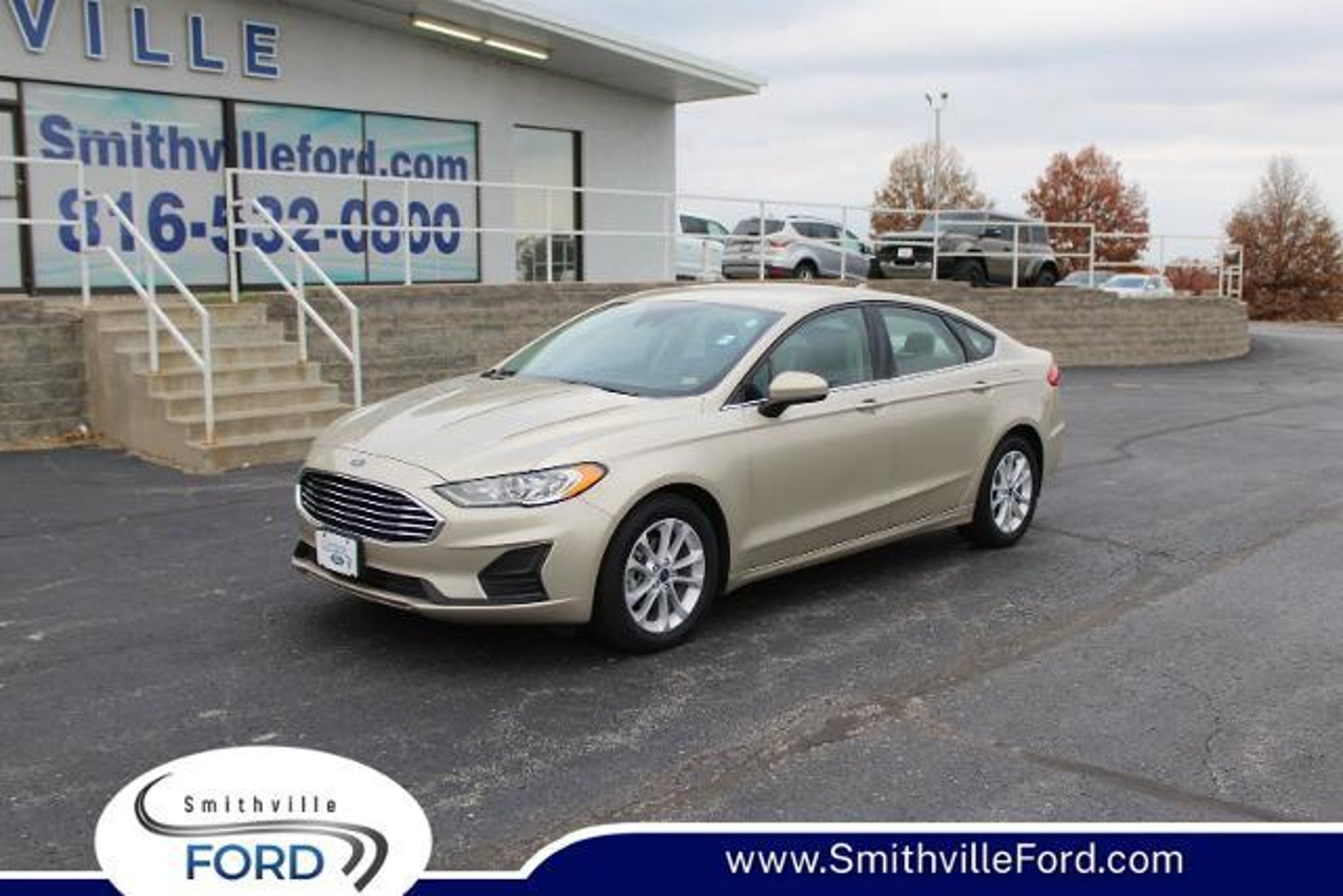 **THIS VEHICLE COMES WITH A 12/12000 COMPREHENSIVE WARRANTY** **CARFAX ONE OWNER** **BLUETOOTH** **FORD PASS** **FUEL EFFICIENT** **KEYLESS ENTRY** **LOTS OF SPACE** **SYNC 3** **ECOBOOST** **WINDOW TINT** **BACKUP CAMERA** **SE PACKAGE** 6-Speed Automatic Navigation System 4-Wheel Disc Brakes 6 Speakers ABS brakes Adaptive Cruise Control w/Stop & Go Air Conditioning Alloy wheels AM/FM radio: SiriusXM AppLink/Apple CarPlay and Android Auto Auto High-beam Headlights Auto Stop-Start Technology Auto-dimming Rear-View mirror Automatic temperature control Brake assist Bumpers: body-color Cloth Front Bucket Seats Compass Delay-off headlights Driver door bin Driver vanity mirror Dual front impact airbags Dual front side impact airbags Electronic Stability Control Emergency communication system: 911 Assist Equipment Group 150A Exterior Parking Camera Rear Four wheel independent suspension Front anti-roll bar Front Bucket Seats Front Center Armrest Front dual zone A/C Front reading lights Fully automatic headlights Illuminated entry Knee airbag Lane Departure Warning System Low tire pressure warning Occupant sensing airbag Outside temperature display Overhead airbag Overhead console Panic alarm Passenger door bin Passenger vanity mirror Power door mirrors Power driver seat Power passenger seat Power steering Power windows Radio data system Radio: AM/FM/MP3 Stereo Rain sensing wipers Rear anti-roll bar Rear Parking Sensors Rear reading lights Rear seat center armrest Rear window defroster Remote keyless entry Security system SiriusXM Radio Speed control Speed-sensing steering Speed-Sensitive Wipers Split folding rear seat Steering wheel mounted audio controls SYNC 3 Communications & Entertainment System Tachometer Telescoping steering wheel Tilt steering wheel Traction control Trip computer Variably intermittent wipers Voice-Activated Touchscreen Navigation System Wheels: 17 Sparkle Silver-Painted Aluminum 6-Speed Automatic Navigation System. 2019 Ford Fusion SE CARFAX One-Owner. White Gold Metallic Ford Fusion Awards: * JD Power Initial Quality Study (IQS) Odometer is 43216 miles below market average! 23/34 City/Highway MPG We carry all makes and models in Blue Springs Oak Grove Liberty Odessa Warrensburg Kansas City Independence and Lee s Summit Missouri. Also have vehicles in all different colors Black Red White Brown Blue tan Green Yellow Gold Burgundy Silver Charcoal. We also carry Acura Audi BMW Buick Cadillac Chevrolet Chrysler Dodge Fiat Ford GMC Honda Hummer Hyundai INFINITI Jaguar Jeep Kia Land Rover Lexus Lincoln Mazda Mercedes-Benz Mini Porsche RAM Scion Subaru Tesla Toyota Volkswagen and Volvo s.
