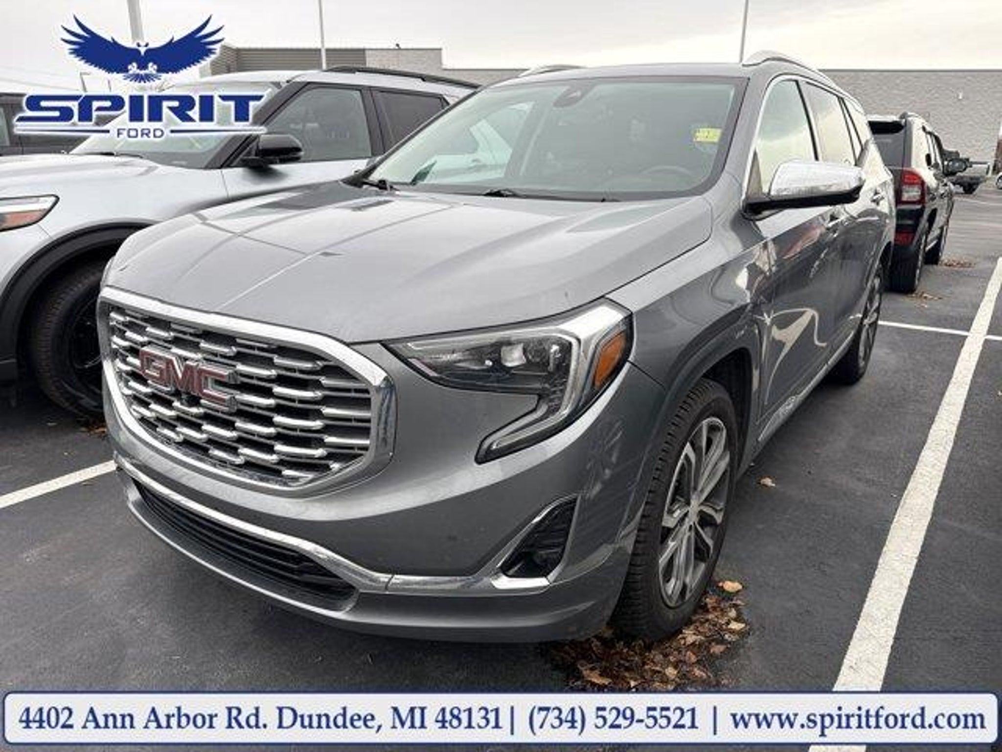 21/26 City/Highway MPGSatin Steel Metallic2020 GMC Terrain Denali AWD9-Speed Automatic2.0L TurbochargedClean Carfax, Local Trade!, Not a Rental Vehicle, Sunroof, HEATED SEATS, BLUETOOTH, HANDS FREE, LEATHER SEATS, Terrain Denali, 4D Sport Utility, 2.0L Turbocharged, 9-Speed Automatic, AWD, Satin Steel Metallic, Jet Black w/Perforated Leather-Appointed Seat Trim, Adaptive Cruise Control - Camera, Advanced Safety Package, Automatic Parking Assist, Comfort Package, Denali Premium Package, Factory Installed Trailer Hitch, Floor Liner Package (LPO), Front & Rear All-Weather Floor Liners (LPO), HD Surround Vision, Heated Rear Outboard Seating Positions, Integrated Cargo Liner (LPO), Preferred Equipment Group 5SA, Trailering Equipment, Ventilated Driver Seat, Ventilated Front Passenger Seat. Recent Arrival!Clean CARFAX.21/26 City/Highway MPGLocated directly adjacent to US-23 at Exit 17. Spirit Ford is conveniently located just 15 minutes from Monroe, Ann Arbor and Toledo. We are just across the street from the largest Cabela's store in the state. Please call or visit us today at (734) 529-5521 for more information on this vehicle.Open 24 hours at www.spiritfordofdundee.com. Spirit Ford serves all nearby cities including Milan, Monroe, Deerfield, Britton, Tecumseh, Carleton, Sylvania, Toledo, Ann Arbor, Ypsilanti, Adrian, Temperance, Lambertville, Petersburg, Saline, Maybee and Erie.