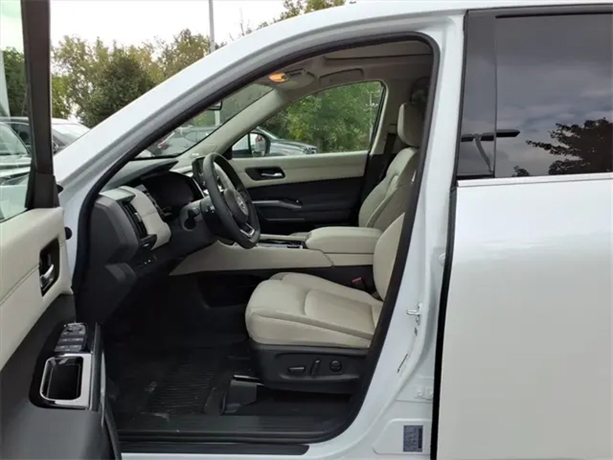 The 2025 Nissan Pathfinder comes equipped with the following 4WD, 20 Painted Alloy Wheels, 2nd-Row Captain Chairs, 2nd-Row Rear Headrest, 3rd row seats: bench, 4-Wheel Disc Brakes, 6 Speakers, ABS brakes, Air Conditioning, Alloy wheels, AM/FM radio: SiriusXM, Auto High-beam Headlights, Auto-dimming Rear-View mirror, Automatic temperature control, Bose Premium Audio System, Brake assist, Bumpers: body-color, Delay-off headlights, Driver door bin, Driver vanity mirror, Dual front impact airbags, Dual front side impact airbags, Electronic Stability Control, Emergency communication system, Exterior Parking Camera Rear, Four wheel independent suspension, Front anti-roll bar, Front Bucket Seats, Front Center Armrest, Front dual zone A/C, Front reading lights, Fully automatic headlights, Garage door transmitter: HomeLink, Heated door mirrors, Heated Front Bucket Seats, Heated front seats, Heated Rear Seats, Heated steering wheel, Illuminated entry, Knee airbag, Leather steering wheel, Leather-Appointed Seating Surfaces, Low tire pressure warning, Navigation system: NissanConnect with Navigation and Services, NissanConnect featuring Apple CarPlay and Android Auto, Occupant sensing airbag, Outside temperature display, Overhead airbag, Overhead console, Panic alarm, Panoramic Moonroof, Passenger door bin, Passenger vanity mirror, Power door mirrors, Power driver seat, Power Liftgate, Power passenger seat, Power steering, Power windows, Premium Paint, Radio data system, Radio: AM/FM Audio System, Rear air conditioning, Rear anti-roll bar, Rear reading lights, Rear seat center armrest, Rear side impact airbag, Rear window defroster, Rear window wiper, Reclining 3rd row seat, Remote keyless entry, Security system, Speed control, Speed-sensing steering, Split folding rear seat, Spoiler, Steering wheel mounted audio controls, Tachometer, Telescoping steering wheel, Tilt steering wheel, Traction control, Trip computer, Turn signal indicator mirrors, Variably intermittent wipers, and Wheels: 18 x 8J Machined Alloy. 2025 Nissan Pathfinder 4WD. Clean CARFAX. CARFAX One-Owner. White Pearl 2025 Nissan Pathfinder SL 4WD 9-Speed Automatic 3.5L V6 DOHC Odometer is 7789 miles below market average! 21/27 City/Highway MPG Call us today to schedule your VIP test drive!