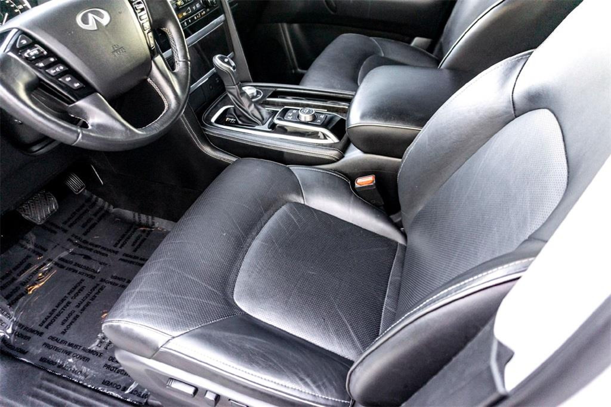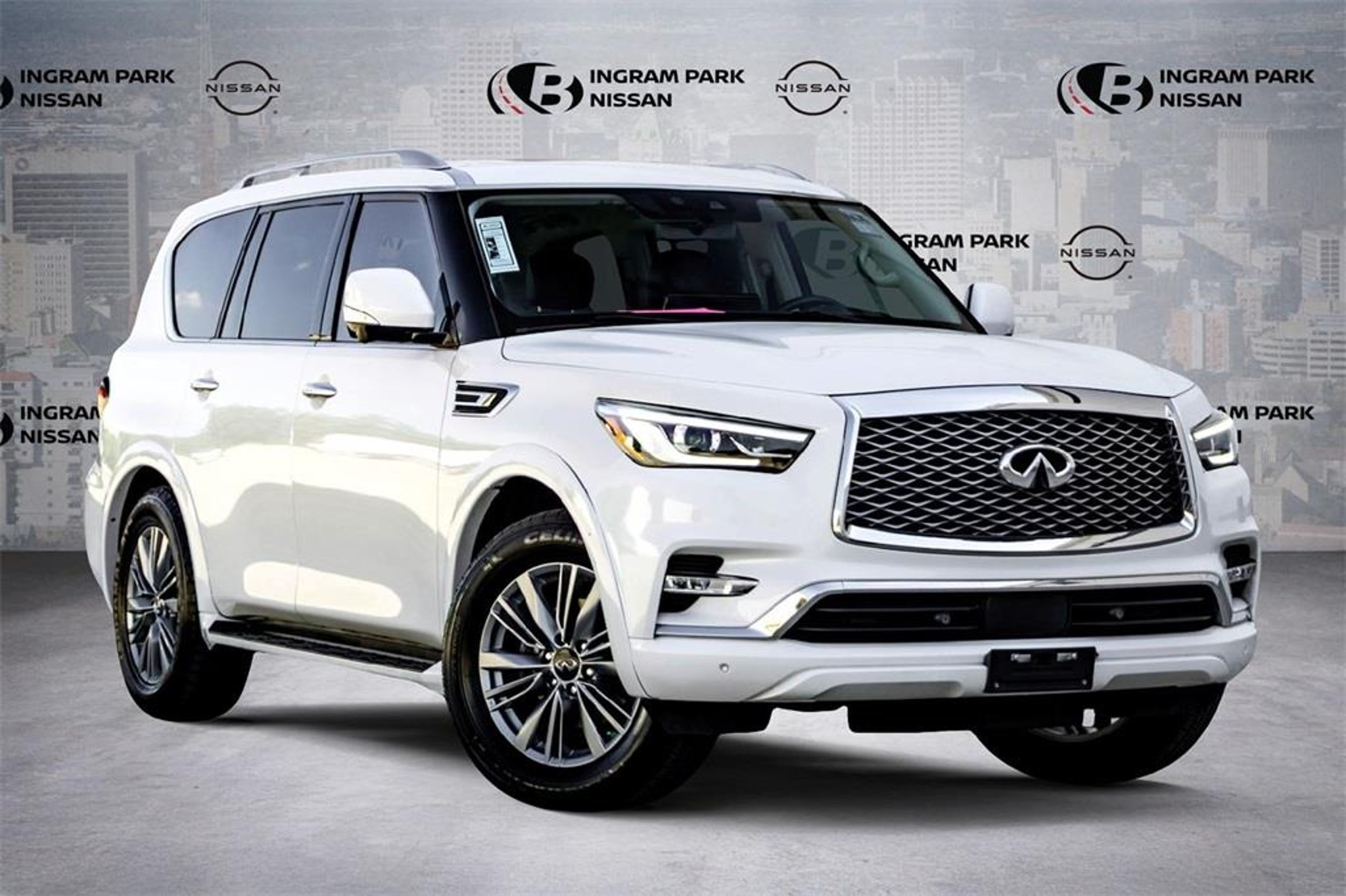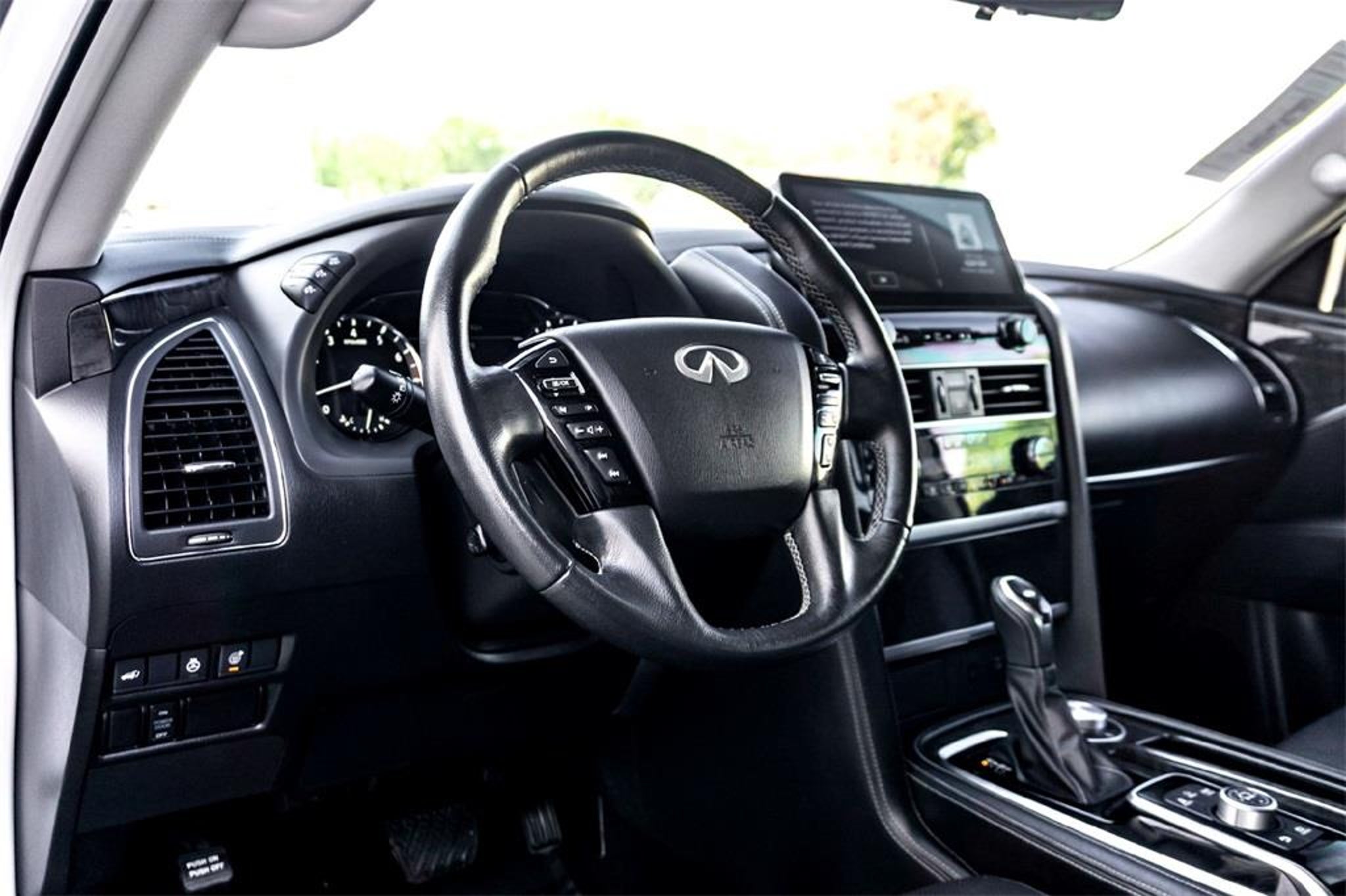 We deliver!! We'll bring the test drive to you and completely sanitize the vehicle. If you have a trade, we also conduct accurate remote valuation. When you're satisfied with your selection, complete our online finance application and a member of our team will contact you to schedule delivery. CARFAX One-Owner. Clean CARFAX. 13 Speakers, 2.937 Axle Ratio, 20 Aluminum Alloy Wheels, 3rd row seats: bench, 4-Wheel Disc Brakes, ABS brakes, Air Conditioning, Alloy wheels, AM/FM radio: SiriusXM, Anti-whiplash front head restraints, Apple CarPlay/Android Auto, Auto High-beam Headlights, Auto tilt-away steering wheel, Auto-dimming door mirrors, Auto-dimming Rear-View mirror, Auto-leveling suspension, Automatic temperature control, Brake assist, Bumpers: body-color, Compass, Delay-off headlights, Driver door bin, Driver vanity mirror, Dual front impact airbags, Dual front side impact airbags, Electronic Stability Control, Emergency communication system: INFINITI InTouch, Four wheel independent suspension, Front anti-roll bar, Front Bucket Seats, Front Center Armrest, Front dual zone A/C, Front fog lights, Front reading lights, Fully automatic headlights, Garage door transmitter: HomeLink, Heated door mirrors, Heated Front Bucket Seats, Heated front seats, Heated steering wheel, Illuminated entry, Leather Shift Knob, Leather steering wheel, Leather-Appointed Seats, Literature Kit, Low tire pressure warning, Memory seat, Navigation system: INFINITI InTouch Navigation, Occupant sensing airbag, Outside temperature display, Overhead airbag, Overhead console, Panic alarm, Passenger door bin, Passenger vanity mirror, Power door mirrors, Power driver seat, Power Liftgate, Power moonroof, Power passenger seat, Power steering, Power windows, Radio data system, Radio: Bose Premium Audio System w/13 Speakers, Rain sensing wipers, Rear air conditioning, Rear anti-roll bar, Rear reading lights, Rear seat center armrest, Rear window defroster, Rear window wiper, Reclining 3rd row seat, Remote keyless entry, Security system, Speed control, Speed-sensing steering, Split folding rear seat, Spoiler, Steering wheel memory, Steering wheel mounted audio controls, Tachometer, Telescoping steering wheel, Tilt steering wheel, Traction control, Trip computer, Turn signal indicator mirrors, Variably intermittent wipers, and Voltmeter. Moonstone White 2024 INFINITI QX80 LUXE 5.6L V8 4WD