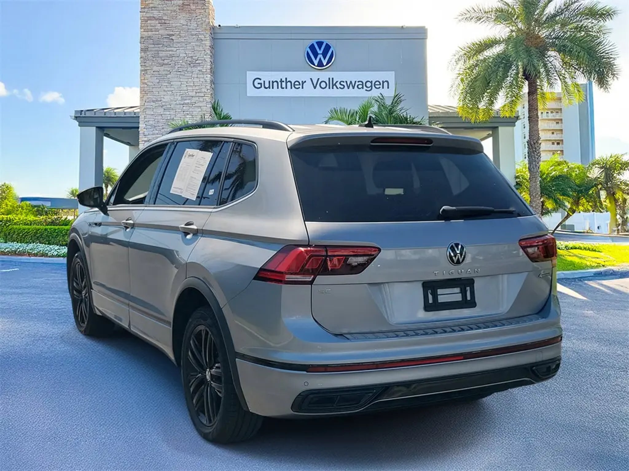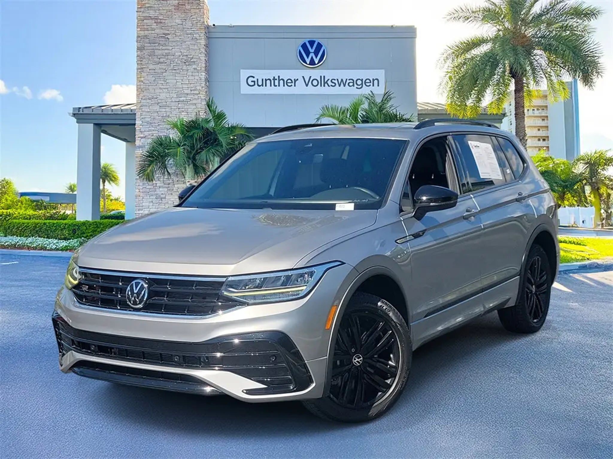 Certified. Pyrite Silver Metallic 2022 Volkswagen Tiguan 2.0T SE R-Line Black CARFAX One-Owner. Odometer is 27731 miles below market average! Volkswagen Certified Pre-Owned Details: * Model Year 2020 and Newer Vehicles: 2-Year or 24,000-Mile (whichever occurs first) Comprehensive Limited Warranty. Model Year 2019 Vehicles: 1-Year or 12,000-Mile (whichever comes first) Comprehensive Limited Warranty. Electric Vehicles Model Year 2019 & Newer: 3-Year or 36,000-Mile (whichever comes first) Comprehensive Limited Warranty. 2 Years of 24-Hour Roadside Assistance, Three Months of SiriusXM Platinum Plan Trial Subscription. * 100 Point Inspection * Warranty Deductible: $50 * Vehicle History * Roadside Assistance 21/28 City/Highway MPG Equipped with 3.33 Axle Ratio, 4-Wheel Disc Brakes, 4-Wheel Independent Suspension, 6 Speakers, ABS brakes, Air Conditioning, Alloy wheels, AM/FM radio: SiriusXM with 360L, Auto-dimming Rear-View mirror, Automatic temperature control, Brake assist, Bumpers: body-color, Compass, Delay-off headlights, Driver door bin, Driver vanity mirror, Dual front impact airbags, Dual front side impact airbags, Electronic Stability Control, Emergency communication system: Car-Net, Exterior Parking Camera Rear, Four wheel independent suspension, Front anti-roll bar, Front Bucket Seats, Front Center Armrest, Front dual zone A/C, Front reading lights, Fully automatic headlights, Heated door mirrors, Heated Front Comfort Seats, Heated front seats, Illuminated entry, Leather Shift Knob, Leather steering wheel, Low tire pressure warning, Occupant sensing airbag, Outside temperature display, Overhead airbag, Overhead console, Panic alarm, Passenger door bin, Passenger vanity mirror, Perforated V-Tex Leatherette Seating Surfaces, Power door mirrors, Power driver seat, Power Liftgate, Power moonroof, Power steering, Power windows, Radio data system, Radio: MIB3 Composition Media AM/FM/HD, Rain sensing wipers, Rear anti-roll bar, Rear reading lights, Rear seat center armrest, Rear window defroster, Rear window wiper, Remote keyless entry, Roof rack: rails only, Security system, Speed control, Speed-sensing steering, Split folding rear seat, Spoiler, Sport steering wheel, Steering wheel mounted audio controls, Tachometer, Telescoping steering wheel, Tilt steering wheel, Traction control, Trip computer, Turn signal indicator mirrors, Variably intermittent wipers, and Wheels: 19 Black Twin 5-Spoke Alloy. Sale price shown excludes $989.00 Predelivery Service Charge, $395.00 Electronic Registration Filing Fee, all government fees, registration fees, titling fees, and Sales Tax VAUTO USED.