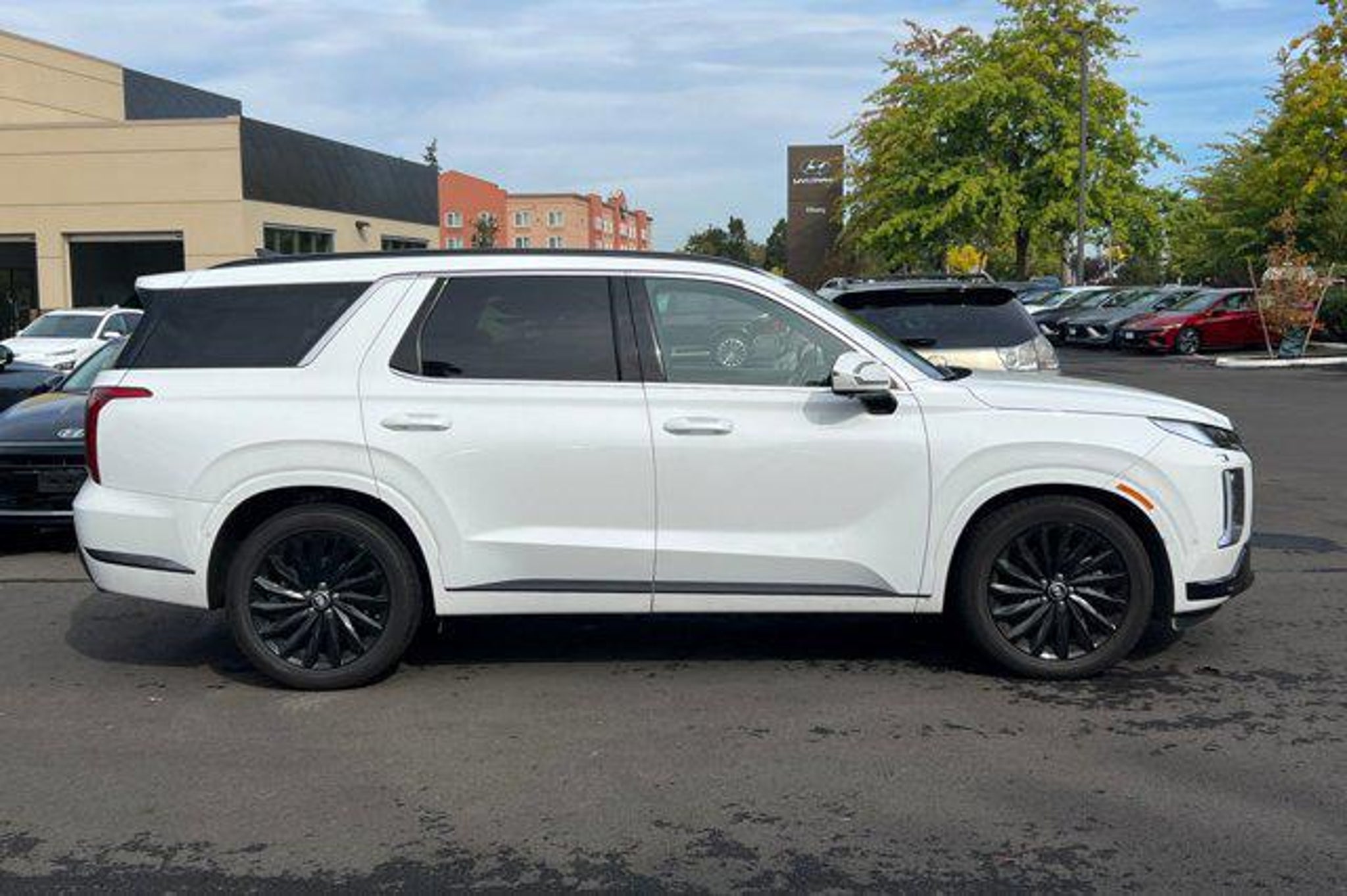 Priced below KBB Fair Purchase Price! CARFAX One-Owner. 2024 Hyundai Palisade Hyper White Calligraphy Night Edition 19/24 City/Highway MPG Certified.AWD8-Speed Automatic with SHIFTRONIC V6Bluetooth, Leather, Heated seats, Blind Spot Monitors, Rear view camera, Power Windows & Locks, Palisade Calligraphy Night Edition, 4D Sport Utility, V6, 8-Speed Automatic with SHIFTRONIC, AWD, Hyper White, Black Leather, 12 Speakers, 3.648 Axle Ratio, 3rd row seats: split-bench, 4-Wheel Disc Brakes, ABS brakes, Air Conditioning, Alloy wheels, Apple CarPlay & Android Auto, Auto High-beam Headlights, Auto-dimming door mirrors, Auto-dimming Rear-View mirror, Auto-leveling suspension, Automatic temperature control, Brake assist, Bumpers: body-color, Compass, Delay-off headlights, Driver door bin, Driver vanity mirror, Dual front impact airbags, Dual front side impact airbags, Electronic Stability Control, Emergency communication system, Exterior Parking Camera Rear, Four wheel independent suspension, Front anti-roll bar, Front Bucket Seats, Front Center Armrest, Front dual zone A/C, Front reading lights, Fully automatic headlights, Garage door transmitter: HomeLink, harman/kardon® Speakers, Heads-Up Display, Heated & Ventilated Front Bucket Seats, Heated door mirrors, Heated front seats, Heated rear seats, Heated steering wheel, Illuminated entry, Knee airbag, Low tire pressure warning, Memory seat, Microfiber Suede Seat Trim, Navigation System, Occupant sensing airbag, Option Group 01, Outside temperature display, Overhead airbag, Overhead console, Panic alarm, Passenger door bin, Passenger vanity mirror, Power door mirrors, Power driver seat, Power Liftgate, Power moonroof, Power passenger seat, Power steering, Power windows, Radio: AM/FM/MP3 Premium Audio System, Rain sensing wipers, Rear air conditioning, Rear anti-roll bar, Rear reading lights, Rear side impact airbag, Rear window defroster, Rear window wiper, Reclining 3rd row seat, Remote keyless entry, Roof rack, Security system, Speed control, Speed-sensing steering, Split folding rear seat, Spoiler, Steering wheel mounted audio controls, Tachometer, Telescoping steering wheel, Tilt steering wheel, Traction control, Trip computer, Turn signal indicator mirrors, Variably intermittent wipers, Ventilated front seats, Ventilated rear seats, Wheels: 20 x 7.5J Black Liquid Paint Alloy.