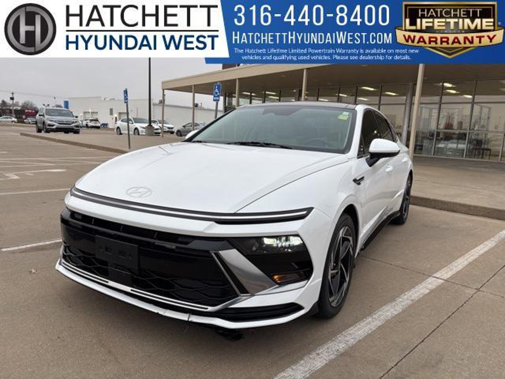 2024 Hyundai Sonata SEL Serenity White 8-Speed Automatic For sale at Hatchett Hyundai West in Wichita Kansas. **Multi Point Inspection and all Necessary Maintenance & Reconditioning Items Are Performed to Strict Hatchett Standards** Complete Detail of Interior and Exterior. ** Lifetime Warranty, ** No Accidents, ** One Owner, ** Local Trade-In, ** Backup Camera, ** Bluetooth Connectivity, ** Apple CarPlay/Android Auto, ** Proximity Key w/Push Button Start, ** Wireless Phone Charging, ** Automatic Headlights, ** Power Drivers Seat, ** Heated Front Seats, ** Sunroof / Moonroof, ** Forward Collision-Avoidance Assist w/Pedestrian Detection, ** Blind Spot-Collision Avoidance Assist, ** Rear Cross-Traffic Collision-Avoidance Assist, ** Smart Cruise w/Stop N Go, ** Sirius XM Radio Capable, 12.3 LCD Instrument Cluster, 18 x 7.5J Aluminum Alloy Wheels, Auto-Dimming Mirror, Convenience Package, Hyundai Digital Key 2.0 Premium, Leather-Wrapped Steering Wheel, LED Interior Lights, Option Group 02, Panoramic Sunroof, Radio: AM/FM/HD/SiriusXM/Navigation, Wireless Device Charging.