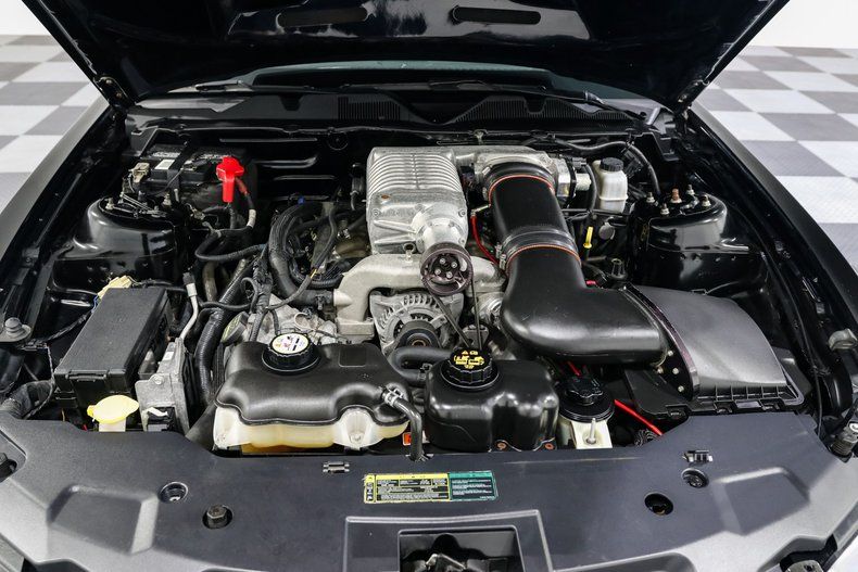 Turn the key in this midnight-black 2010 Mustang coupe and feel the rumble of a 4.6 liter V8 ready to bite. This isn't your run-of-the-mill GT. With a WHIPPLE supercharger, stainless-steel exhaust, short-throw shifter and limited-slip rear with 3.55 rear gears, this pony car has been reborn for performance. From the HID headlights to LED sequential taillights, from quarter-window louvers and a glass roof to a rear diffuser and spoilers front and rear, every detail gives it presence whether parked or pressing the throttle. Inside you'll find bucket seats in leather and premium vinyl, carbon-fiber interior accents, heated seats, power driver's seat, power locks and mirrors, plus a center console and Shaker 500 audio that make long drives as enjoyable as track days. Safety and comfort come standard too, with power steering, power brakes, air conditioning, cruise control, automatic headlights and a backup camera.