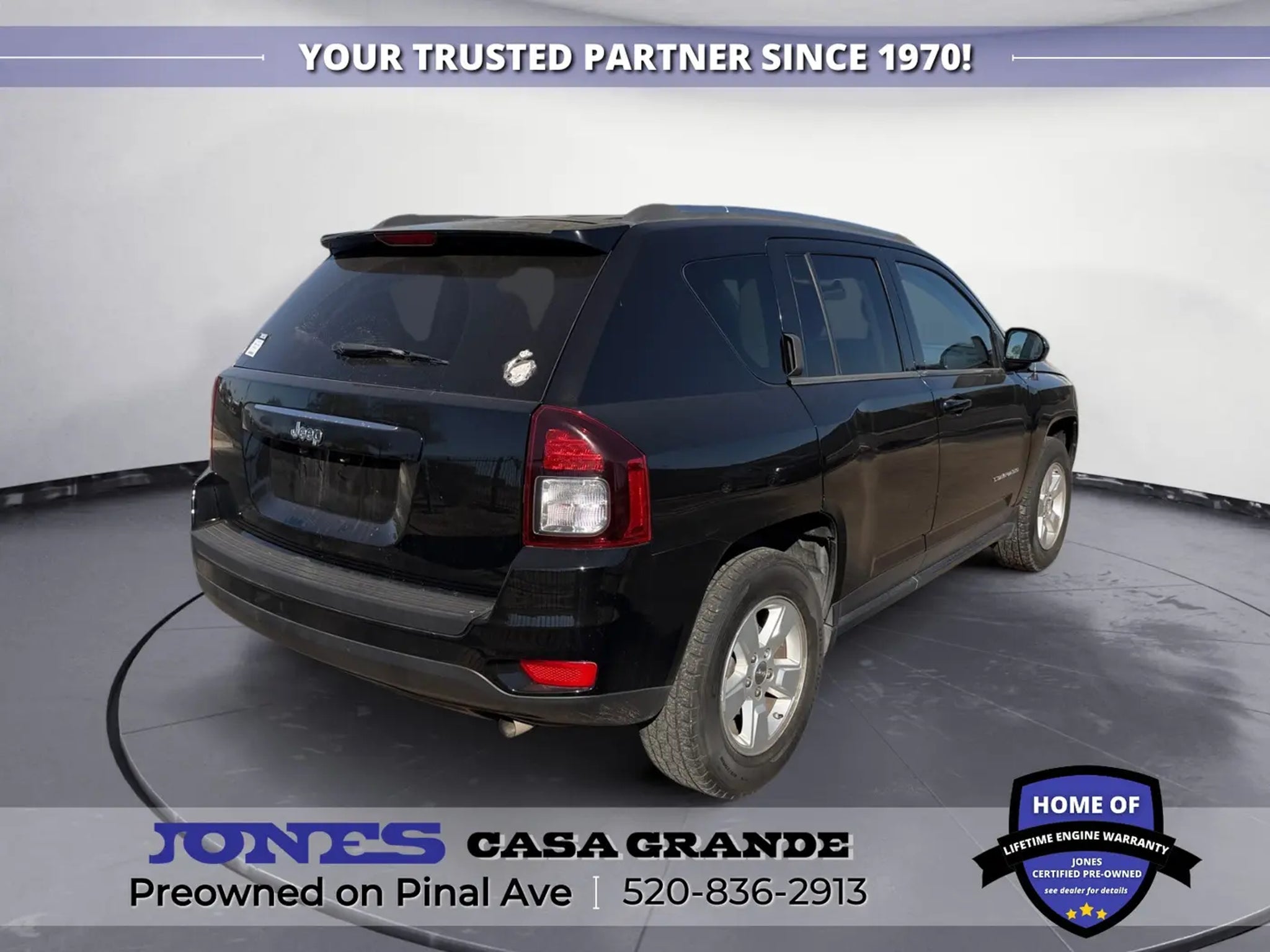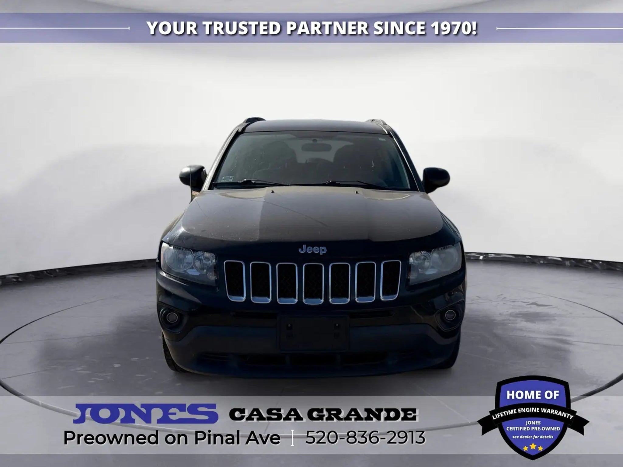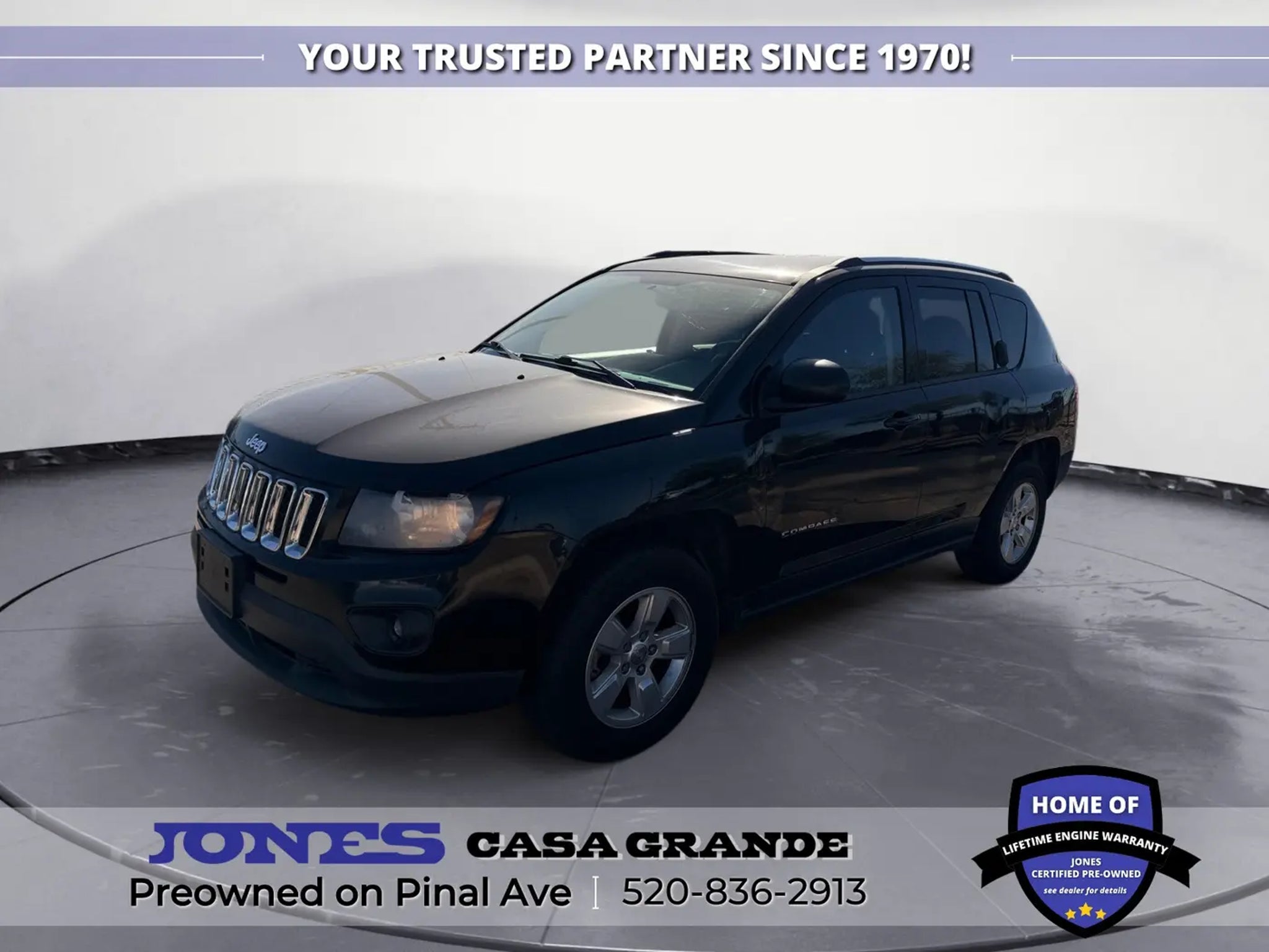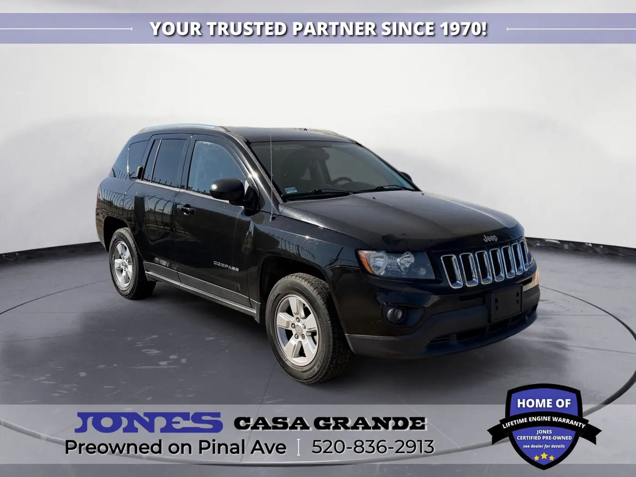 520-836-2913 LOCATED AT 1932 N PINAL AVE CASA GRANDE AZ 85122 Compass Sport, 2.0L I4 DOHC 16V Dual VVT, FWD, Body Color Door Handles, Body Color Liftgate Applique, Illuminated Entry, Keyless Entry, Power Heated Fold-Away Mirrors, Power Value Group, Power Windows w/Driver One-Touch, Speed Sensitive Power Locks. 22/27 City/Highway MPG Odometer is 12861 miles below market average! Jones Ford Buick GMC is Family Owned & Operated and has been doing Business the old fashion way one deal at a time since 1970! ALL our vehicles leave with a FULL TANK of fuel, car wash, PLUS most of our Pre-owned vehicles come with our LIFETIME ENGINE PROTECTION at NO ADDITIONAL COST! ! Save Thousands on any of our New Ford, Buick, or GMC's and give us a try today! Jones Ford Buick GMC 520-836-2913 LOCATED AT 1932 N PINAL AVE CASA GRANDE AZ 85122