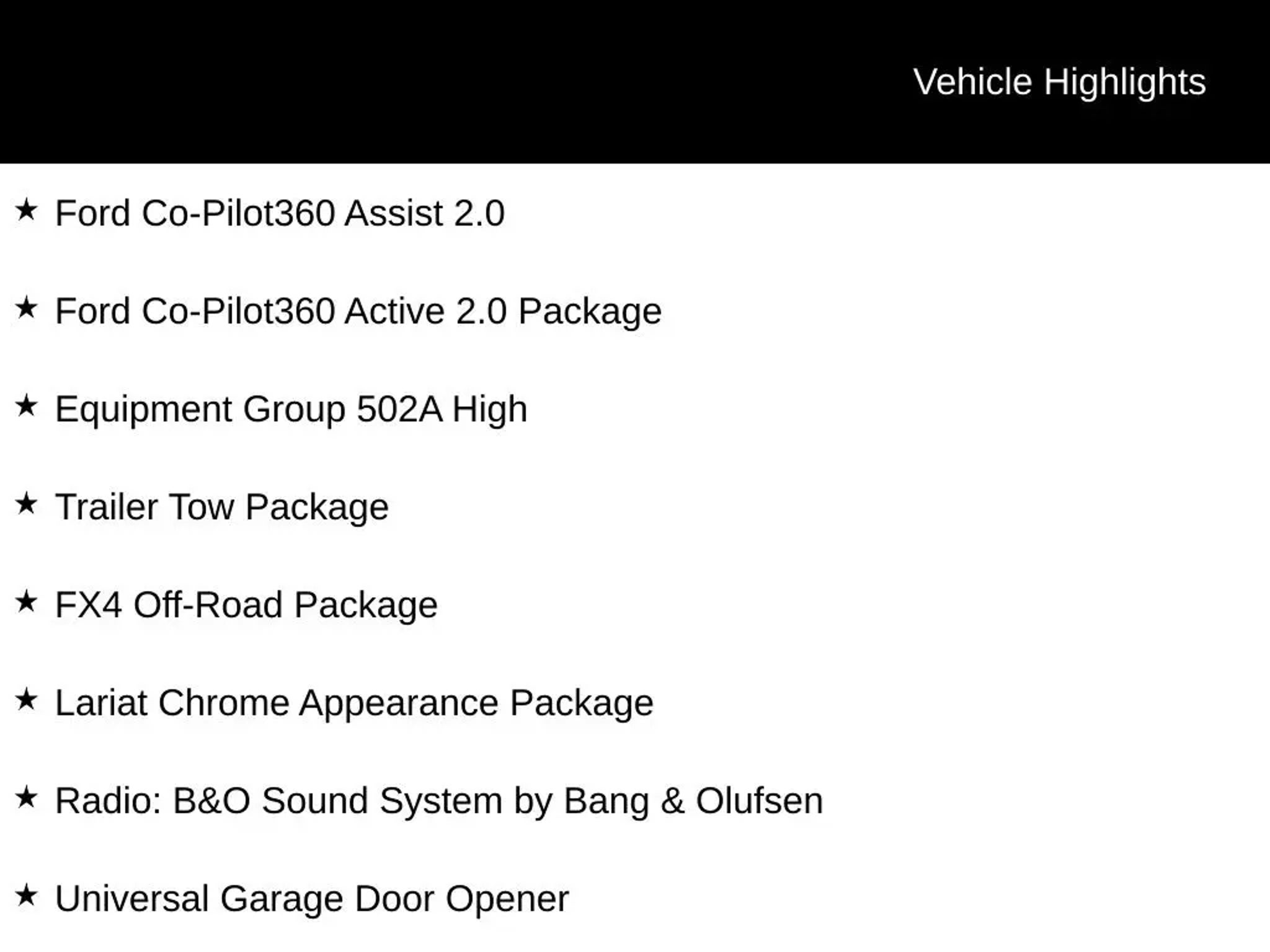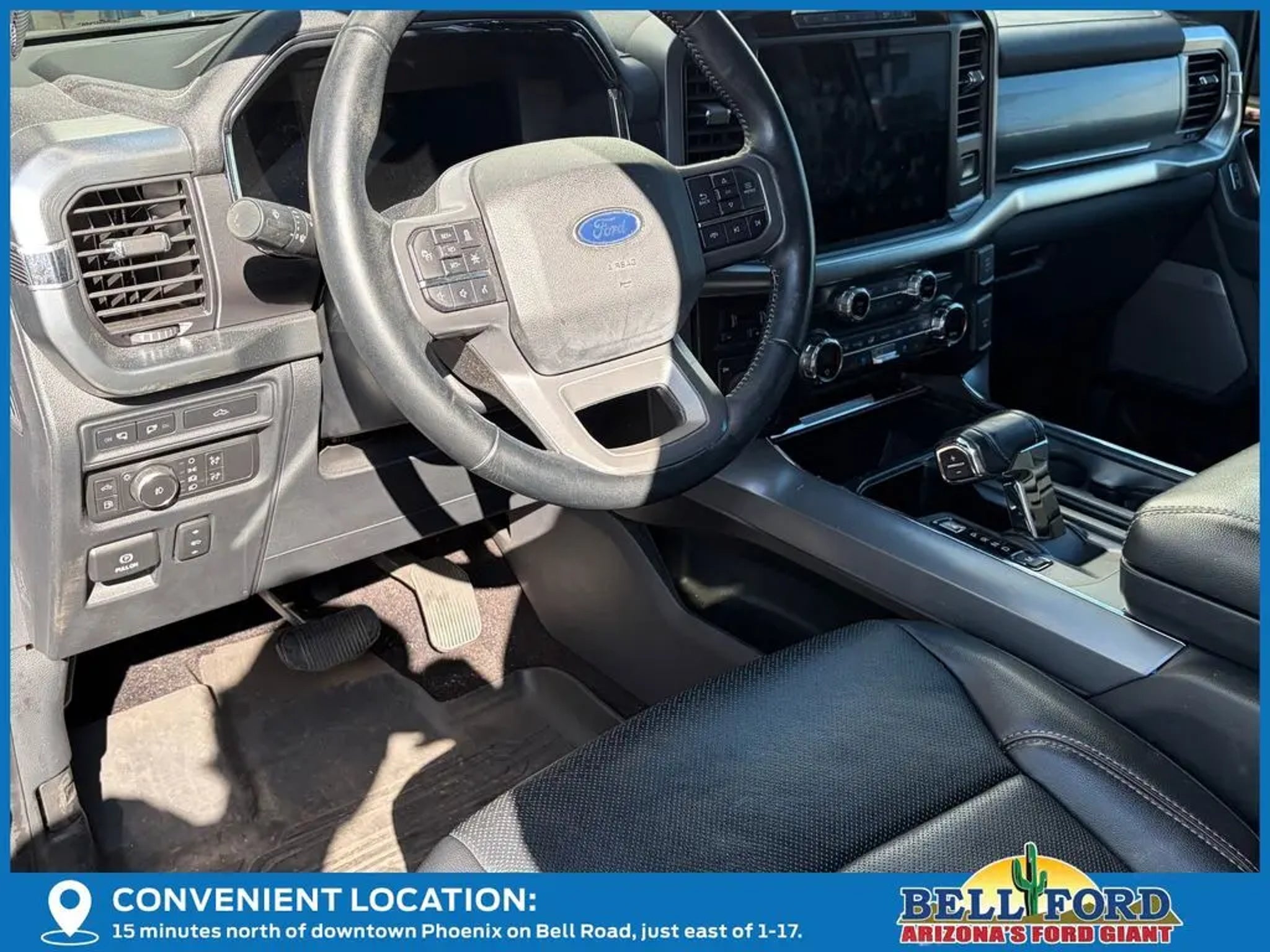 ** HERE AT BELL FORD ITS ALL ABOUT THE EXPERIENCE** Please visit us online at This Ford F-150 is equipped with the following options: Equipment Group 502A High (2nd Row Heated Seats, Heated Steering Wheel, Leather-Trimmed Bucket Seats, LED Projector w/Dynamic Bending Headlamps, Onboard 400W Outlet, Power Glass Sideview Mirr w/Chrome Skull Caps, Power Tilt/Telescoping Steering Column w/Memory, Radio: B&O Sound System by Bang & Olufsen, Rain-Sensing Wipers, and Universal Garage Door Opener), Ford Co-Pilot360 Active 2.0 Package (Active Park Assist 2.0 and BlueCruise Hands-Free Driving), Ford Co-Pilot360 Assist 2.0 (Connected Built-In Navigation, Evasive Steering Assist, Intelligent Adaptive Cruise Control w/Stop & Go, Intersection Assist, and Speed Sign Recognition), FX4 Off-Road Package (4x4 FX4 Off-Road Bodyside Decal, Hill Descent Control, Monotube Rear Shocks, Off-Road Tuned Front Shock Absorbers, Rock Crawl Mode, and Tray Style Floor Liner), Lariat Chrome Appearance Package (6 Chrome Running Board, Chrome 2-Bar Grille w/4 Minor Bars, Chrome Door & Tailgate Handles w/Body-Color Bezel, Chrome Single-Tip Exhaust, Chrome Skull Caps on Exterior Mirrors, and Wheels: 18 Chrome-Like PVD), Trailer Tow Package (Class IV Trailer Hitch Receiver, Integrated Trailer Brake Controller, and Pro Trailer Backup Assist), 3.5L PowerBoost Full-Hybrid V6, 4WD, 18 Machined-Aluminum Wheels, 360 Degree Camera, 4-Wheel Disc Brakes, 7 Speakers, ABS brakes, Adjustable pedals, Air Conditioning, Alloy wheels, AM/FM radio: SiriusXM with 360L, Auto High-beam Headlights, Auto-dimming door mirrors, Auto-dimming Rear-View mirror, Automatic temperature control, Brake assist, Bumpers: chrome, Compass, Delay-off headlights, Driver door bin, Driver vanity mirror, Dual front impact airbags, Dual front side impact airbags, Electronic Stability Control, Emergency communication system: SYNC 4 911 Assist, Exterior Parking Camera Rear, Front anti-roll bar, Front Center Armrest w/Storage, Front dual zone A/C, Front fog lights, Front reading lights, Front wheel independent suspension, Fully automatic headlights, Heated door mirrors, Heated front seats, Illuminated entry, Interior Work Surface, Leather-Trimmed 40/20/40 Front Seat, LED Sideview Mirror Spotlights, Low tire pressure warning, Memory seat, Navigation system: Connected Navigation (90-Day Trial), Occupant sensing airbag, Outside temperature display, Overhead airbag, Overhead console, Panic alarm, Passenger door bin, Passenger vanity mirror, Pedal memory, Power door mirrors, Power driver seat, Power passenger seat, Power steering, Power Tailgate, Power windows, Pro Power Onboard - 7.2KW, Radio data system, Radio: AM/FM SiriusXM w/360L, Rear reading lights, Rear seat center armrest, Rear step bumper, Rear window defroster, Remote keyless entry, Security system, Speed control, Speed-sensing steering, Split folding rear seat, Steering wheel mounted audio controls, SYNC 4 w/Enhanced Voice Recognition, Tachometer, Telescoping steering wheel, Tilt steering wheel, Traction control, Tray Style Floor Liner (47W), Trip computer, Turn signal indicator mirrors, Twin Panel Moonroof, Variably intermittent wipers, Ventilated front seats, Voltmeter, and Wheels: 20 Chrome-Like PVD. CARFAX One-Owner. 3.5L PowerBoost Full-Hybrid V6, 4WD, 2nd Row Heated Seats, 4x4 FX4 Off-Road Bodyside Decal, 6 Chrome Running Board, Active Park Assist 2.0, BlueCruise Hands-Free Driving, Chrome 2-Bar Grille w/4 Minor Bars, Chrome Door & Tailgate Handles w/Body-Color Bezel, Chrome Single-Tip Exhaust, Chrome Skull Caps on Exterior Mirrors, Class IV Trailer Hitch Receiver, Connected Built-In Navigation, Equipment Group 502A High, Evasive Steering Assist, Ford Co-Pilot360 Active 2.0 Package, Ford Co-Pilot360 Assist 2.0, FX4 Off-Road Package, Heated Steering Wheel, Hill Descent Control, Integrated Trailer Brake Controller, Intelligent Adaptive Cruise Control w/Stop & Go, Intersection Assist, Lariat Chrome Appearance Package, Leather