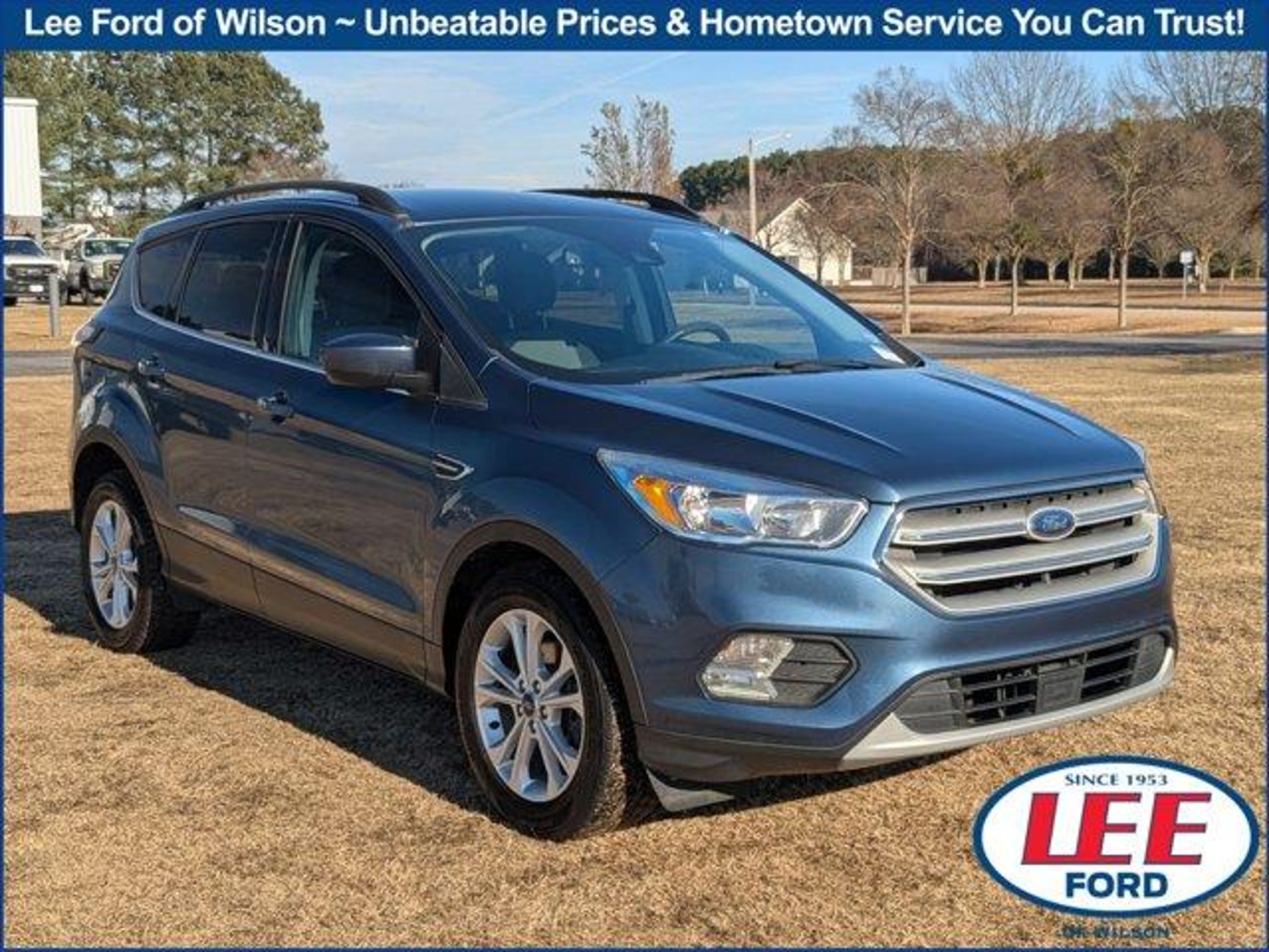 Blue Metallic 2018 Ford Escape SE FWD 6-Speed Automatic EcoBoost 2.0L I4 GTDi DOHC Turbocharged VCT TEXT US @ 252-302-0026, Escape SE, 4D Sport Utility, EcoBoost 2.0L I4 GTDi DOHC Turbocharged VCT, 6-Speed Automatic, FWD, Blue Metallic, Charcoal Black w/Cloth Front Bucket Seats, Adaptive Cruise Control & Fwd Collision Warning, Auto High-Beam Headlamps, Auto-Dimming Rear-View Mirror, Blind Spot Info System w/Cross-Traffic Alert, Equipment Group 200A, Ford Safe & Smart Package, Lane-Keeping System, Rain-Sensing Wipers, Windshield Wiper De-Icer.Odometer is 652 miles below market average! 23/30 City/Highway MPGAwards:* 2018 KBB.com 10 Most Awarded Brands * 2018 KBB.com Brand Image AwardsStop by Lee Ford of Wilson for unbeatable prices and home town service you can trust. Doing business the right way since 1953.