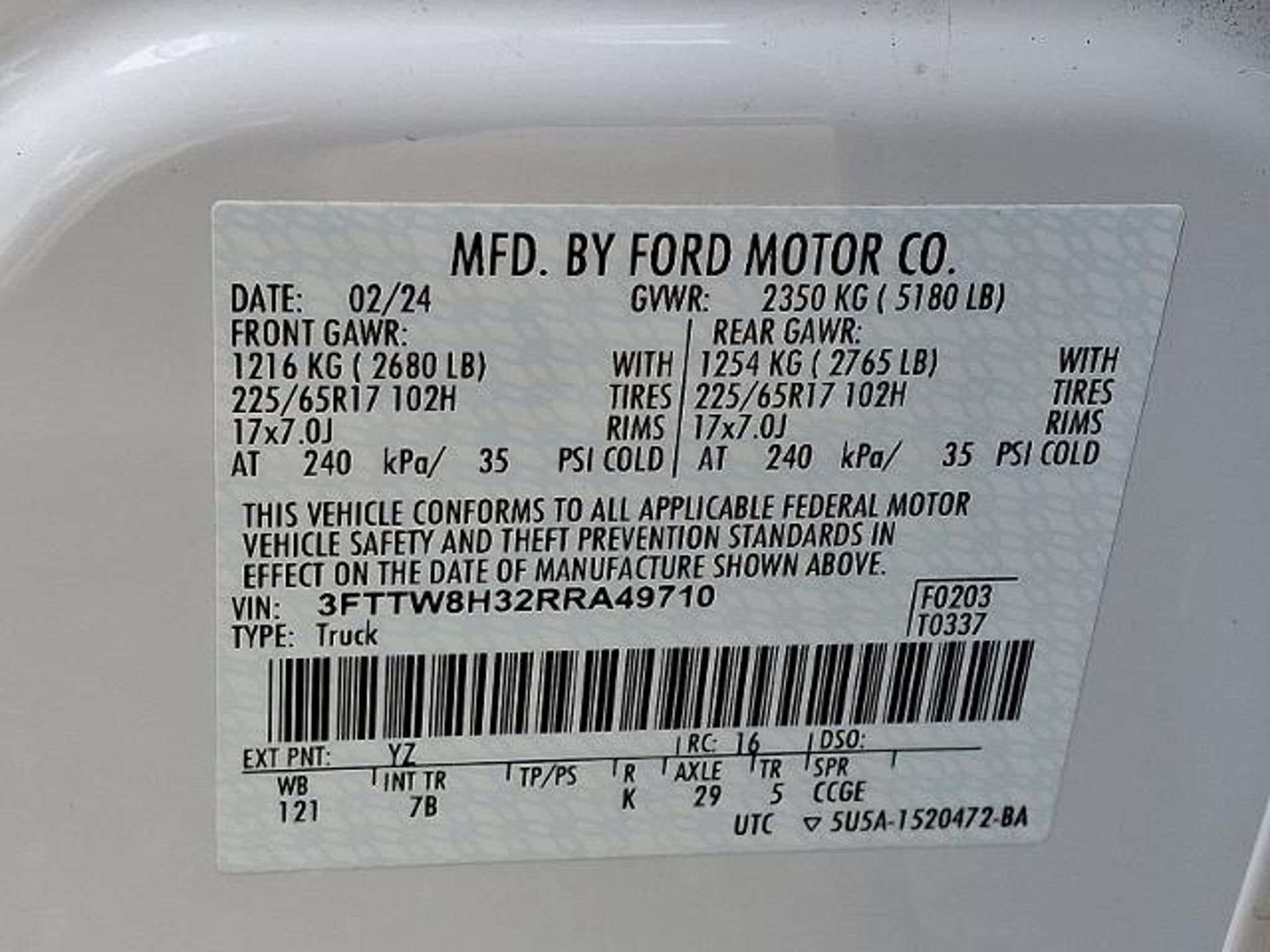 VIN 3FTTW8H32RRA49710