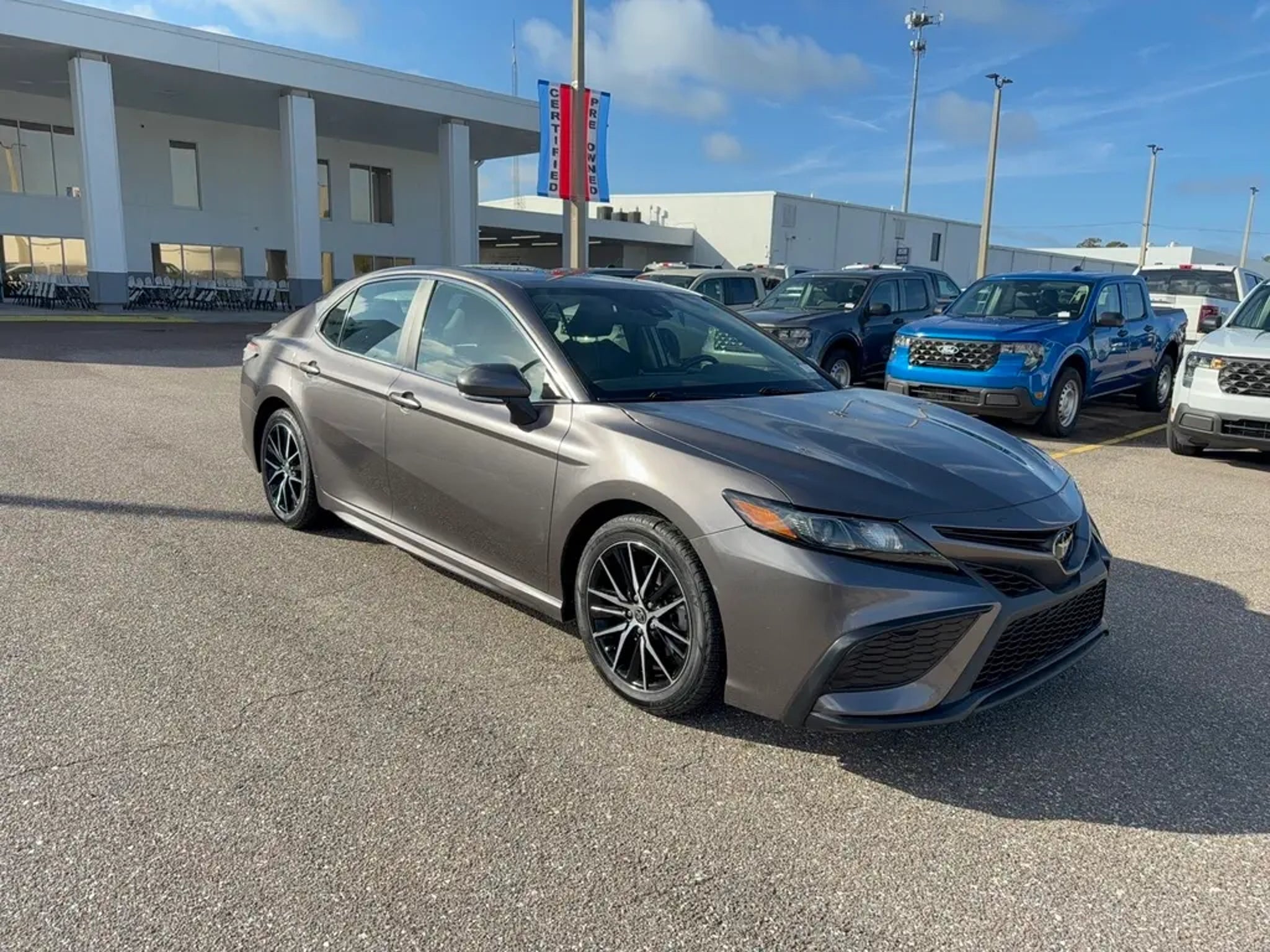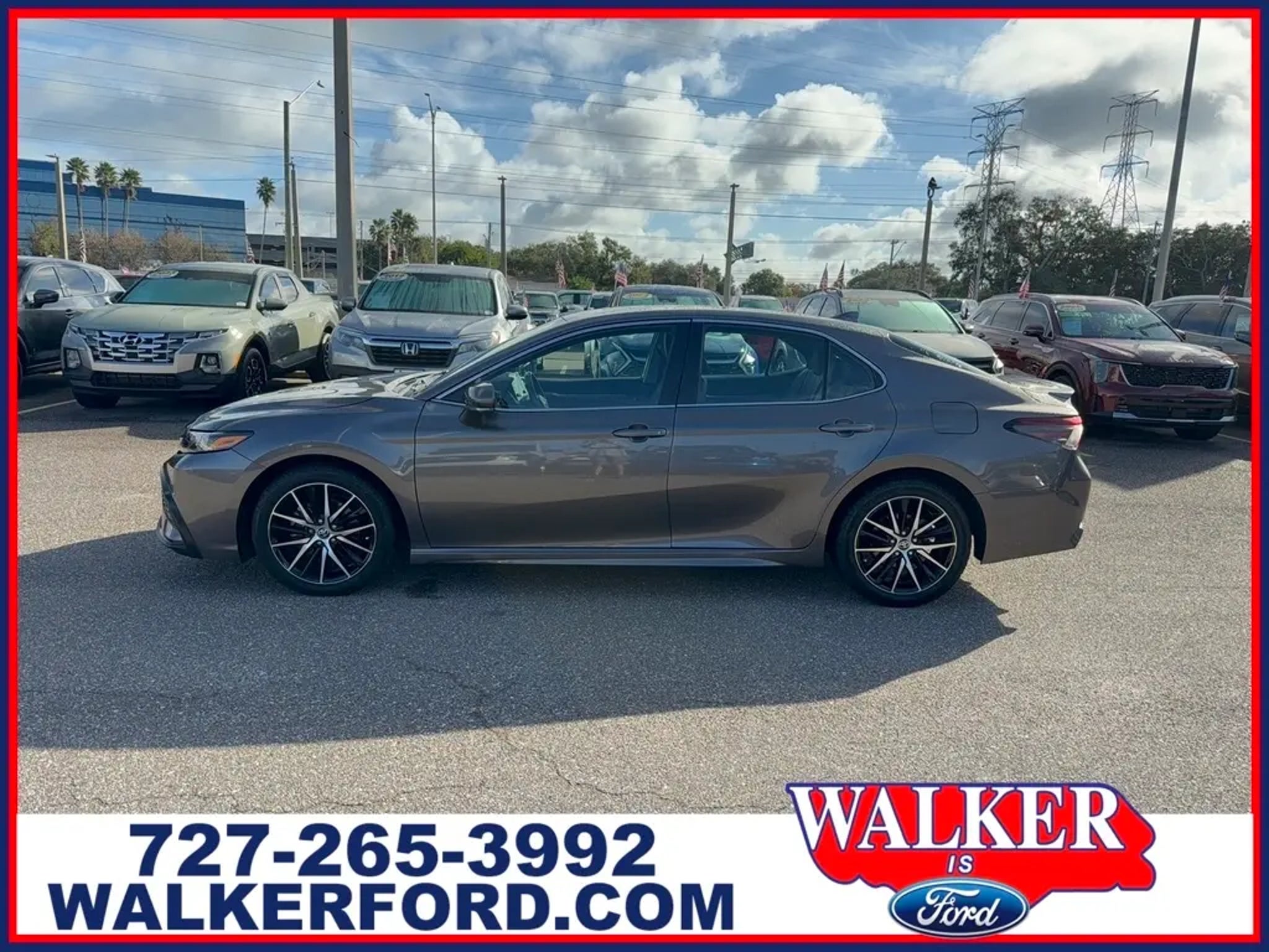 CARFAX One-Owner Experience the perfect balance of style, comfort, and technology with this dark gray 2023 Toyota Camry SE. Driven just 33,461 miles, this sedan is ready for your daily commute or weekend adventure. Enjoy a sporty drive with the 2.5L I4 engine, sport-tuned suspension, and 8-speed automatic transmission. Stay connected with Toyota Audio Multimedia infotainment, Apple CarPlay, Android Auto, Bluetooth, and Amazon Alexa compatibility on a 7-inch touchscreen. Safety is top-notch with advanced features like front automatic emergency braking, pedestrian detection, lane keeping assist, adaptive cruise control, and intersection pre-collision warning. The Camry SE offers comfort with automatic climate control, power driver seat with lumbar support, split-folding rear seats, and leather steering wheel trim. LED headlights, alloy wheels, and a rear spoiler give it a bold, modern look. Backed by Toyota's legendary reliability, this Camry SE is the smart choice for drivers who demand quality and value. Schedule your test drive today! Family owned and operated since 1957, Walker IS Ford.Includes: Certification Program Details: Ford Blue Advantage: Blue Certified* 139 Point Inspection* Transferable Warranty* Vehicle History* Warranty Deductible: $100* Roadside Assistance* Limited Warranty: 3 Month/4,000 Mile (whichever comes first) after new car warranty expires or from certified purchase date* and 11,000 FordPass Rewards Points to use toward first maintenance visit