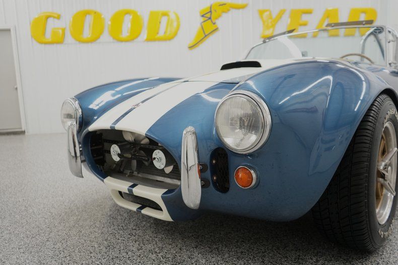 THIS VEHICLE IS LOCATED IN OUR PA. SHOWROOM !!!!! 1991 Ford 5.0L V8 Engine. Tremec 5 Speed Manual Transmission. Front Disc Brakes. Rear Drum Brakes. 15 Inch Wheels. Front Tires: 215/65/15. Rear Tires: 295/50/15. Cooper Cobra Radial GT Tires. Ford 8.8 Inch Rear End. POSI Rear End. Aluminum 90's Mustang Style Intake. Fuel Injected. Stock 90's Mustang Style Distributor. MSD Coil. Electric Fuel Pump. Aluminum Radiator. Dual Electric Cooling Fans. Guardsman Blue Exterior. Wimbledon White Stripes. Bright Windshield Trim. Chrome Roll Bar Behind Drivers Seat. Driver & Passenger Side Mirrors. Black Vinyl Interior. Bucket Seats. Black Door Panels. Black Carpeting. 140 MPH Speedometer. 6000 RPM Redline Tachometer. Temperature Gauge. Fuel Gauge. Oil Pressure Gauge. Voltmeter. Fire Extinguisher. Battery Shut Off Switch. Chrome Side Pipes. Dual Exhaust. Woodgrain Steering Wheel. Driver & Passenger Simpson Harness. Emergency Brake. AM/FM/CD Radio. Speakers. Black Vinyl Convertible Top Tonneau Cover. Gold Wheels w/ Spin Off Centers.