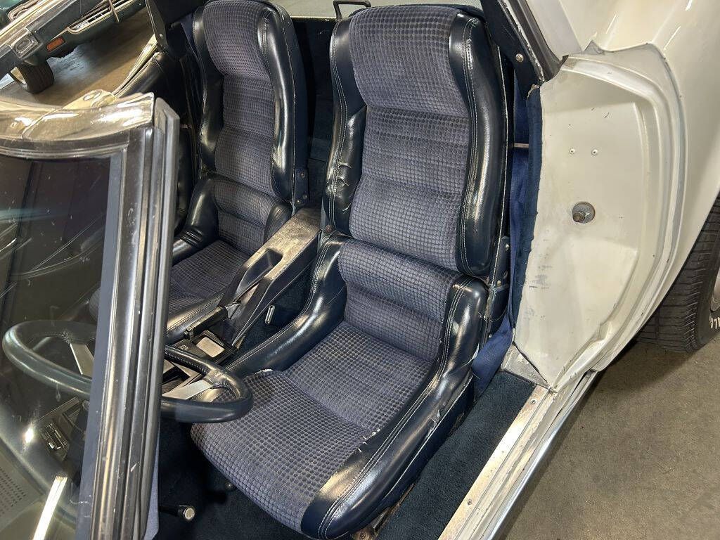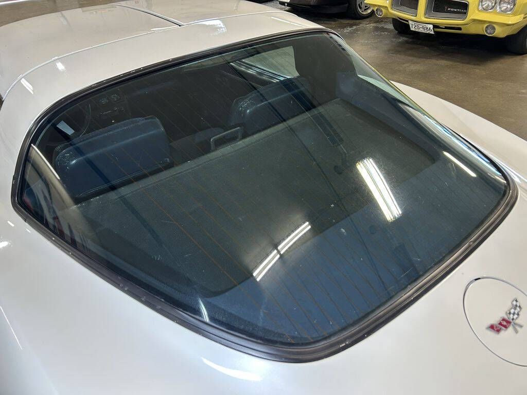 This 1979 Chevrolet Corvette L48 is finished in pearl white with a dark blue cloth/leather bucket seat interior. It rides on 5-slot 15' factory wheels and hub covers. The paint is of driver quality due to a couple of chips and paint damage on the passenger side of the nose, but the overall finish has a beautiful shine to it. Under the hood is a rebuilt 350 CID V8 with a Weiand intake and Hooker headers. It is paired with its original Turbo Hydra-matic 350 (3-speed) automatic transmission. It starts and idles smoothly, and the automatic transmission shifts excellently while on the road. The headlights move up and down without issue. Inside, it displays a cluster of original instrumentation, with the clock, oil pressure gauge, and battery gauge inoperable. The seats and carpet are original and in fair to good condition, along with the dash pad. Other features include power windows, t-tops, factory A/C (inop), and a factory-fit Kenwood AM/FM Cassette Stereo. This 79 C3 Corvette has beautiful lines and is ready for the road. You'll want to take a closer look at this Corvette.
