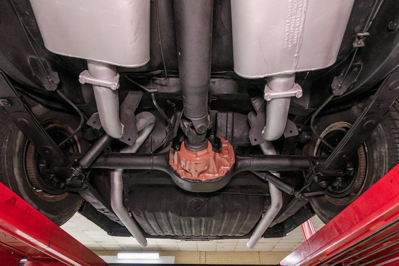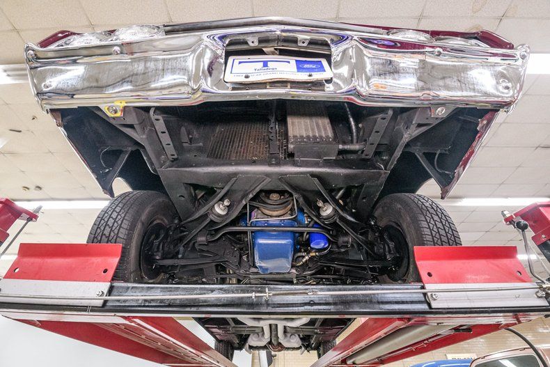 Other factory drivetrain enhancements of the Talladega included a heavy-duty C-6 Cruise-O-Matic transmission and 9" nodular differential with 3.25:1 gearing. The chassis is equipped with power steering, power disc/drum brakes with dual master, HD suspension components and staggered shocks.