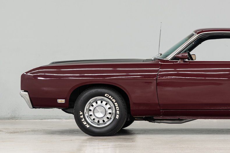 This 1969 Torino Talladega is a rare, carefully restored example of a serious Ford performance machine from the '60s. The exterior was reshot in original Royal Maroon. Accents include a matte black hood and Torino GT Argent wheels with caps-rings that mount Kelly radial tires. The black Broadcloth/Vinyl interior is also in outstanding condition.