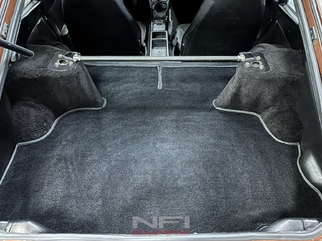 A few exterior details set it apart, including fender-mounted mirrors sourced from a Datsun 510 - an old-school JDM style cue that suits the lines of the early Z. Inside, the cabin is tidy with clean carpeting, bucket seats, a wooden steering wheel, and an upgraded Sony radio for modern usability.
