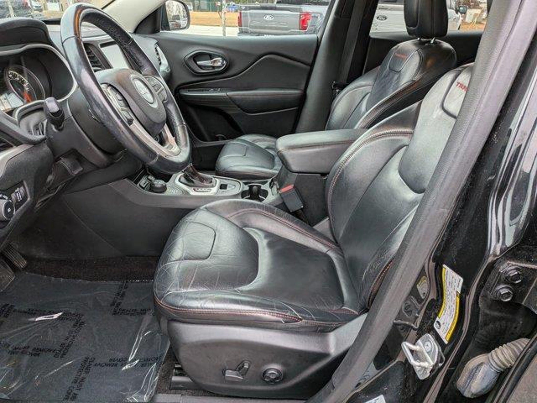 Recent Arrival!CLEAN CARFAXLOCAL TRADE1 Year Trial (Registration Required), 17 x 7.5 Aluminum Wheels, 4-Wheel Disc Brakes, 6 Speakers, 7 & 4 Pin Wiring Harness, 8.4 Touchscreen Display, ABS brakes, Accent Color Exterior Mirrors, Air Conditioning, Alloy wheels, AM/FM radio: SiriusXM, Anti-whiplash front head restraints, Auxiliary Transmission Oil Cooler, Brake assist, Class III Receiver Hitch, Cloth/Leather/Vinyl Bucket Seats, Compass, Delay-off headlights, Driver door bin, Driver vanity mirror, Dual front impact airbags, Dual front side impact airbags, Electronic Stability Control, Emergency communication system, Engine Oil Cooler, Four wheel independent suspension, Front anti-roll bar, Front Bucket Seats, Front Center Armrest, Front fog lights, Front reading lights, Fully automatic headlights, GPS Antenna Input, GPS Navigation, HD Radio, Heated Front Seats, Heated Steering Wheel, Illuminated entry, Integrated Voice Command w/Bluetooth, Jeep Rack Off Road Accessory Kit, Knee airbag, Leather Interior Group, Leather Shift Knob, Leather Trimmed Bucket Seats, Low tire pressure warning, Occupant sensing airbag, Off Road Suspension, Outside temperature display, Overhead airbag, Overhead console, Panic alarm, ParkView Rear Back-Up Camera, Passenger door bin, Passenger vanity mirror, Power 4-Way Driver Lumbar Adjust, Power 8-Way Driver Seat, Power door mirrors, Power steering, Power windows, Quick Order Package 27E, Radio data system, Radio: Uconnect 8.4, Radio: Uconnect 8.4 NAV, Rear anti-roll bar, Rear reading lights, Rear seat center armrest, Rear side impact airbag, Rear window defroster, Rear window wiper, Remote keyless entry, Roof rack: rails only, Speed control, Speed-sensing steering, Split folding rear seat, Spoiler, Steering wheel mounted audio controls, Tachometer, Telescoping steering wheel, Tilt steering wheel, Tonneau Cover, Traction control, Trailer Tow Group, Trailer Tow Wiring Harness, Trip computer, Uconnect Access, Variably intermittent wipers, Voltmeter.19/26 City/Highway MPG2016 Jeep Cherokee TrailhawkWelcome to Classic Ford, your Hometown Ford Dealer and home of Ava Gardner and the Smithfield Ham and Yam Festival! Classic Ford is one of the Premier Ford dealers in North Carolina, servicing Smithfield NC, Clayton NC, Durham NC, and Garner, North Carolina. Our commitment to customer service is second to none. We offer one of the most comprehensive Ford parts and Ford service departments in the city of Smithfield, North Carolina. We have a strong and committed sales staff with many years of ex