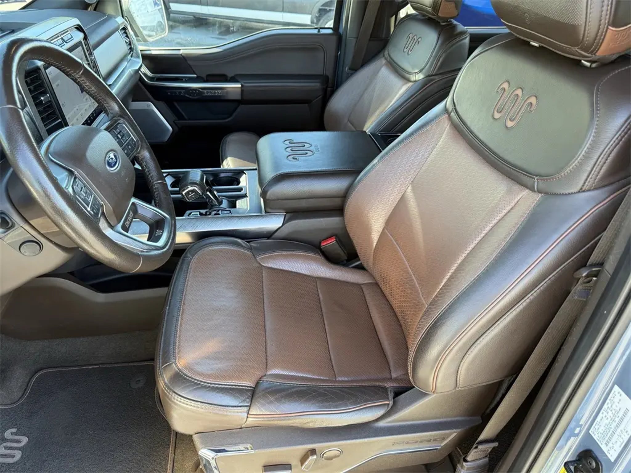 CARFAX ONE OWNER, F-150 King Ranch, Ford Gold Certified Certified, 3.5L V6 EcoBoost, 10-Speed Automatic, Java Leather, Bed Utility Package, BoxLink, Equipment Group 601A High, LED Box Lighting, Multi-Contour Driver & Passenger Seats, Navigation System, Power Tailgate, Power-Deployable Running Boards, Radio: B&O Unleashed Sound System by Bang & Olufsen, Tailgate Step w/Tailgate Work Surface, 20 Machined-Aluminum Wheels, 4-Wheel Disc Brakes, 8 Speakers, ABS brakes, Adjustable pedals, Air Conditioning, Alloy wheels, AM/FM radio: SiriusXM with 360L, Auto High-beam Headlights, Auto tilt-away steering wheel, Auto-dimming door mirrors, Auto-dimming Rear-View mirror, Automatic temperature control, Brake assist, Class IV Trailer Hitch Receiver, Compass, Delay-off headlights, Driver door bin, Driver vanity mirror, Dual front impact airbags, Dual front side impact airbags, Electronic Stability Control, Emergency communication system: SYNC 4 911 Assist, Exterior Parking Camera Rear, Front anti-roll bar, Front Bucket Seats, Front Center Armrest, Front dual zone A/C, Front fog lights, Front reading lights, Front wheel independent suspension, Fully automatic headlights, Garage door transmitter, Genuine wood console insert, Genuine wood dashboard insert, Genuine wood door panel insert, Heated door mirrors, Heated front seats, Heated rear seats, Heated steering wheel, Illuminated entry, Inclination/Intrusion Sensor Removal, Integrated Trailer Brake Controller, King Ranch Leather Bucket Seats, Low tire pressure warning, Memory seat, Multicontour Seats w/Active Motion Removal, Occupant sensing airbag, Outside temperature display, Overhead airbag, Overhead console, Panic alarm, Passenger door bin, Passenger vanity mirror, Pedal memory, Power door mirrors, Power driver seat, Power passenger seat, Power steering, Power windows, Radio data system, Radio: B&O Sound System by Bang & Olufsen, Rain sensing wipers, Rear reading lights, Rear seat center armrest, Rear step bumper, Rear window defroster, Remote keyless entry, Security system, Speed control, Speed-sensing steering, Split folding rear seat, Steering Wheel Heat Removal (DISC), Steering wheel memory, Steering wheel mounted audio controls, SYNC 4 w/Enhanced Voice Recognition, Tachometer, Telescoping steering wheel, Tilt steering wheel, Traction control, Trip computer, Turn signal indicator mirrors, Variably intermittent wipers, Ventilated front seats, Voltmeter, GOLD CERTIFIED, F-150 King Ranch, 3.5L V6 EcoBoost, 10-Speed Automatic, Java Leather, Bed Utility Package, BoxLink, Equipment Group 601A High, LED Box Lighting, Multi-Contour Driver & Passenger Seats, Navigation System, Power Tailgate, Power-Deployable Running Boards, Radio: B&O Unleashed Sound System by Bang & Olufsen, Tailgate Step w/Tailgate Work Surface. Certified. Ford Gold Certified Details: * Warranty Deductible: $100 * and 22,000 FordPass Rewards Points to use toward first two maintenance visits * Vehicle History * Limited Warranty: 12 Month/12,000 Mile (whichever comes first) after new car warranty expires or from certified purchase date * Powertrain Limited Warranty: 84 Month/100,000 Mile (whichever comes first) from original in-service date * 172 Point Inspection * Transferable Warranty * Roadside Assistance Bed Utility Package (BoxLink, LED Box Lighting, Power Tailgate, and Tailgate Step w/Tailgate Work Surface), Equipment Group 601A High (Multi-Contour Driver & Passenger Seats, Power-Deployable Running Boards, and Radio: B&O Unleashed Sound System by Bang & Olufsen), F-150 King Ranch, Ford Gold Certified Certified, 3.5L V6 EcoBoost, 10-Speed Automatic, Java Leather, Navigation System, 20 Machined-Aluminum Wheels, 4-Wheel Disc Brakes, 8 Speakers, ABS brakes, Adjustable pedals, Air Conditioning, Alloy wheels, AM/FM radio: SiriusXM with 360L, Auto High-beam Headlights, Auto tilt-away steering wheel, Auto-dimming door mirrors, Auto-dimming Rear-View mirror, Automatic temperature control, Brake assist, Class