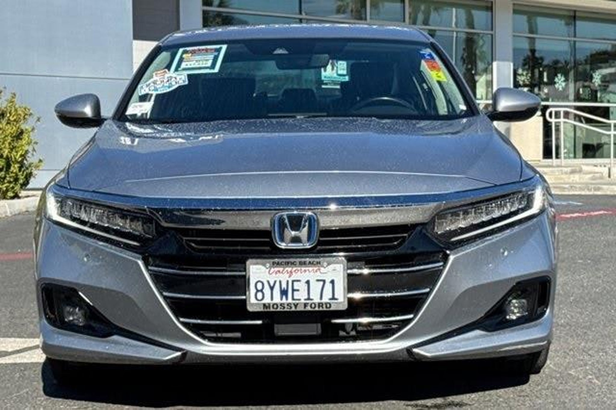 CARFAX ONE OWNER, REGULARLY SERVICED, GREAT FIRST VEHICLE, LOOKS AND RUNS GREAT, NON-SMOKER, MUST SEE, WILL NOT LAST, 3RD PARTY INSPECTION, 17 Machine-Finished Alloy Wheels, Blind Spot Information (BSI) System warning, Brake assist, Electronic Stability Control, Exterior Parking Camera Rear, Forward collision: Collision Mitigation Braking System (CMBS) FCW mitigation, Lane Departure Warning System, Power moonroof, 10 Speakers, 4-Wheel Disc Brakes, ABS brakes, Adaptive Cruise Control: Adaptive Cruise Control (ACC) with Low-Speed Follow, Air Conditioning, AM/FM radio: SiriusXM, Apple CarPlay/Android Auto, Auto High-beam Headlights, Auto-dimming Rear-View mirror, Automatic temperature control, Bumpers: body-color, Delay-off headlights, Driver door bin, Driver vanity mirror, Dual front impact airbags, Dual front side impact airbags, Emergency communication system: HondaLink, Four wheel independent suspension, Front anti-roll bar, Front Bucket Seats, Front Center Armrest, Front dual zone A/C, Front fog lights, Front reading lights, Fully automatic headlights, Garage door transmitter: HomeLink, Heated door mirrors, Heated Front Bucket Seats, Heated front seats, Illuminated entry, Knee airbag, Leather steering wheel, Leather-Trimmed Seats, Low tire pressure warning, Memory seat, Occupant sensing airbag, Outside temperature display, Overhead airbag, Overhead console, Panic alarm, Passenger door bin, Passenger vanity mirror, Power door mirrors, Power driver seat, Power passenger seat, Power steering, Power windows, Radio data system, Radio: 450-Watt AM/FM/HD Premium Audio System, Rear anti-roll bar, Rear seat center armrest, Rear window defroster, Remote keyless entry, Security system, Speed control, Speed-sensing steering, Speed-Sensitive Wipers, Split folding rear seat, Steering wheel mounted audio controls, Telescoping steering wheel, Tilt steering wheel, Traction control, Trip computer, Turn signal indicator mirrors, Variably intermittent wipers, 17 Machine-Finished Alloy Wheels, Blind Spot Information (BSI) System warning, Brake assist, Electronic Stability Control, Exterior Parking Camera Rear, Forward collision: Collision Mitigation Braking System (CMBS) FCW mitigation, Lane Departure Warning System, Power moonroof. Recent Arrival! Silver 2021 Honda Accord Hybrid EX-L 4D Sedan Mossy Ford in Pacific Beach is your Ford Store in San Diego. Stop by today or call (858)273-7500 for more details.