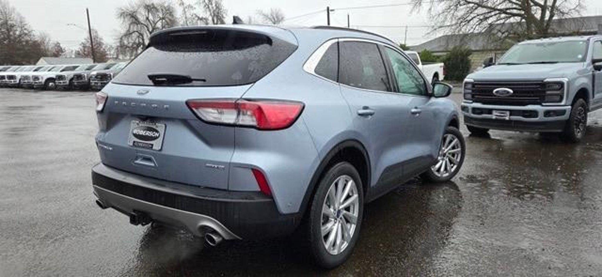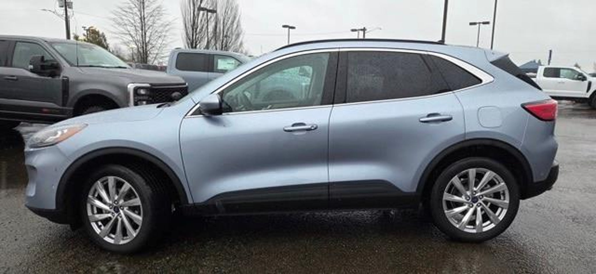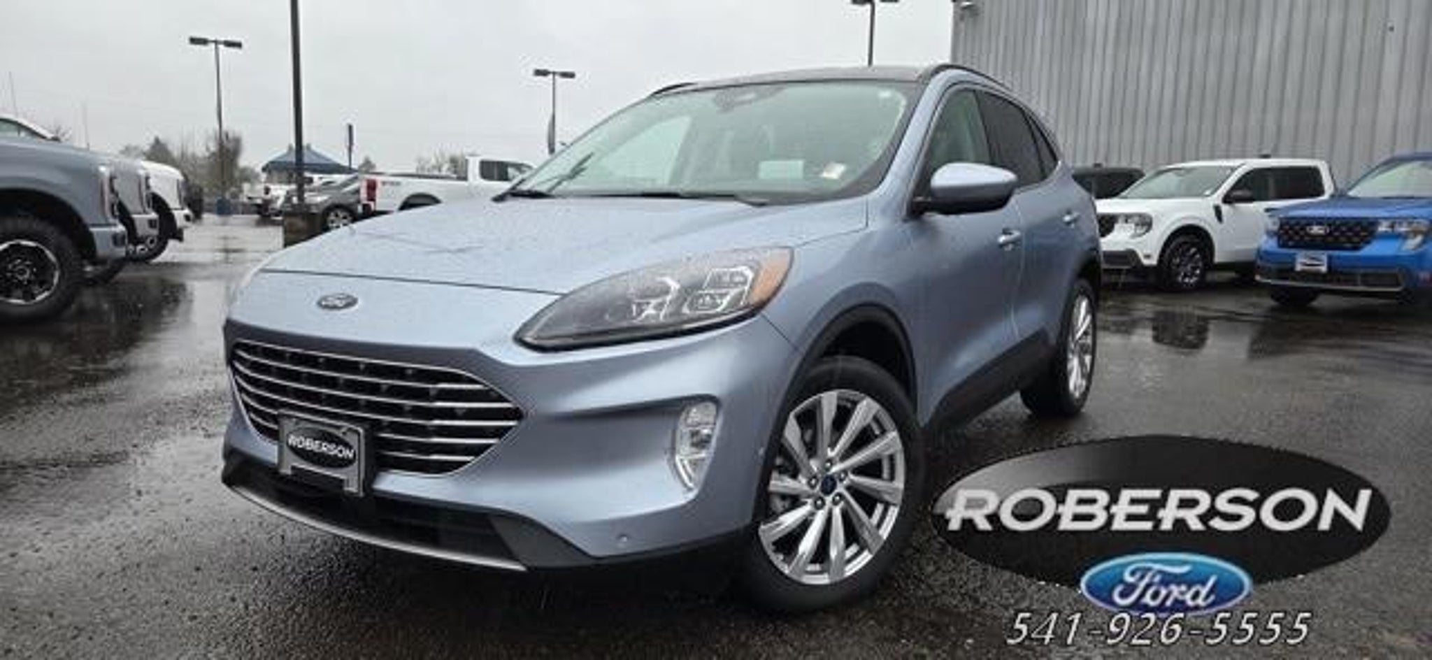 Roberson Albany Ford is pleased to offer this fantastic-looking 2022 Ford Escape. 541-926-5555 An EcoBoost 2.0L I4 GTDi DOHC Turbocharged VCT engine accompanied by an 8-Speed Automatic transmission is going to get you where you want to go and then some! Get there in style and comfort with an Iced Blue Silver Metallic exterior and Ebony/Sandstone Leather interior in this 2022 Ford Escape Titanium. Features on this Escape include... Class II Trailer Tow Package, Equipment Group 401A, Titanium Elite Package (Active Park Assist 2.0, Chrome 5-Bar Upper Grille w/Chrome Surround, Front & Rear Floor Mats, Front & Rear Silver Skid Plates, HD Radio, Head-Up Display, Heated Leather-Trimmed Front Sport Contour Seats, Leather Wrapped Steering Wheel, Radio: B&O Sound System by Bang & Olufsen, Wheels: 19 Luster Nickel-Painted Aluminum, and Wireless Charging Pad), 3.47 Axle Ratio, 4-Wheel Disc Brakes, 4G LTE Wi-Fi Hotspot Removal, 6 Speakers, ABS brakes, Air Conditioning, Alloy wheels, AM/FM radio: SiriusXM, AM/FM Stereo, Auto High-beam Headlights, Auto-dimming Rear-View mirror, Automatic temperature control, Black Roof-Rack Side Rails, Brake assist, Bumpers: body-color, Compass, Delay-off headlights, Driver door bin, Driver vanity mirror, Dual front impact airbags, Dual front side impact airbags, Electronic Stability Control, Emergency communication system: SYNC 3 911 Assist, Exterior Parking Camera Rear, FordPass Connect, Four wheel independent suspension, Front & Rear Floor Liners w/Carpet Mats, Front anti-roll bar, Front Bucket Seats, Front Center Armrest, Front dual zone A/C, Front fog lights, Front reading lights, Fully automatic headlights, Garage door transmitter, Hands-Free Foot-Activated Liftgate Feature Removal, Heated ActiveX Trimmed Front Sport Contour Bucket Seats, Heated door mirrors, Heated front seats, Heated steering wheel, Illuminated entry, Knee airbag, Low tire pressure warning, Memory seat, Navigation System, Occupant sensing airbag, Outside temperature display, Overhead airbag, Overhead console, Panic alarm, Panoramic Vista Roof, Passenger door bin, Passenger vanity mirror, Power door mirrors, Power driver seat, Power Liftgate, Power passenger seat, Power steering, Power windows, Radio data system, Rain sensing wipers, Rear anti-roll bar, Rear reading lights, Rear seat center armrest, Rear window defroster, Rear window wiper, Remote keyless entry, Roof rack: rails only, Security system, Speed control, Speed-sensing steering, Speed-Sensitive Wipers, Split folding rear seat, Spoiler, Steering wheel