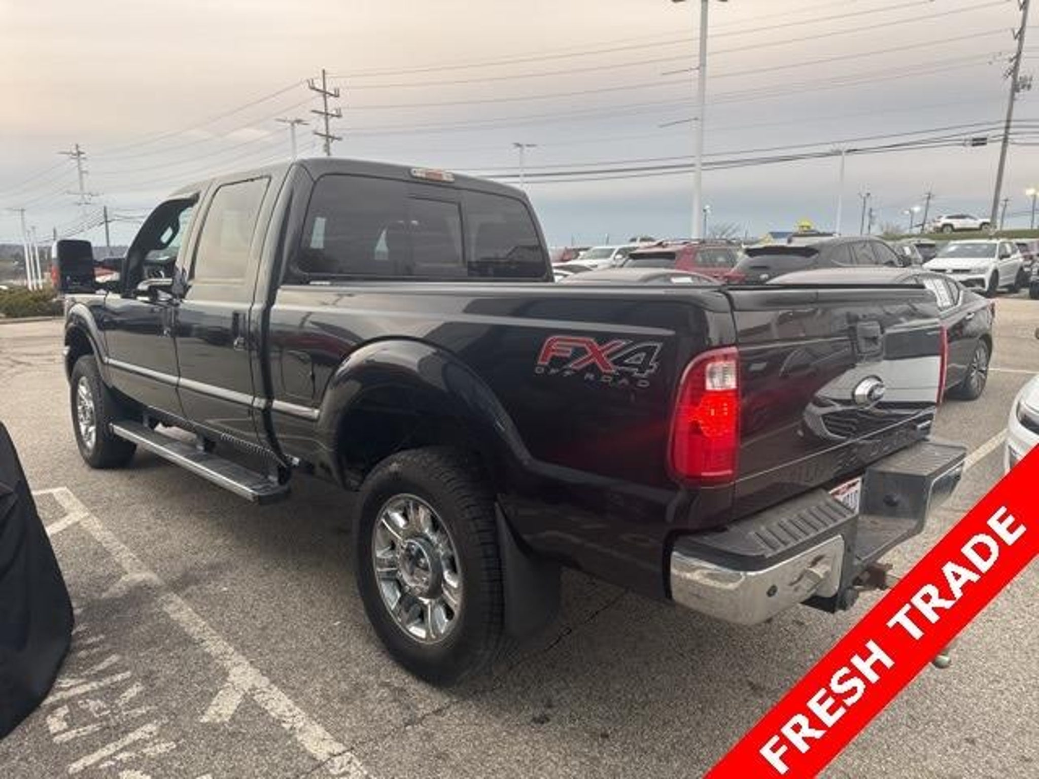 Tuxedo Black Metallic 2014 Ford F-250SD Lariat 4WD TorqShift 6-Speed Automatic 6.2L V8 EFI SOHC 16V Flex Fuel 4WD. Recent Arrival! This 2014 Ford F-250 SuperDuty Lariat comes equipped with Chrome Package (18 Chrome Clad Cast Aluminum Wheels), FX4 Off-Road Package, GVWR: 10,000 lb Payload Package, Lariat Ultimate Package (Memory Power Adjustable Pedals, Navigation System w/HD & Satellite Broadcast, Power Moonroof, Remote Start System, and Tailgate Step & Handle), Order Code 608A, Snow Plow Prep Package, 4WD, 10 Speakers, 18 Bright Machined Cast Alum. 6-Spoke Wheels, 20 Chrome Clad Cast Aluminum Wheels, 4-Wheel Disc Brakes, ABS brakes, Adjustable pedals, Air Conditioning, All-Weather Floor Mats, Alloy wheels, AM/FM radio: SiriusXM, Auto-dimming Rear-View mirror, Automatic temperature control, Bodyside Molding, Brake assist, Bumpers: chrome, CD player, Compass, Delay-off headlights, Driver door bin, Driver vanity mirror, Dual front impact airbags, Dual front side impact airbags, Electronic Stability Control, Engine Block Heater, Exterior Parking Camera Rear, Extra Heavy-Duty 200-Amp Alternator, Front anti-roll bar, Front Bucket Seats, Front Center Armrest, Front dual zone A/C, Front fog lights, Front reading lights, Fully automatic headlights, Heated door mirrors, Heated Rear Seats, Illuminated entry, Leather steering wheel, Low tire pressure warning, Outside temperature display, Overhead airbag, Overhead console, Panic alarm, Passenger door bin, Passenger vanity mirror, Power door mirrors, Power driver seat, Power passenger seat, Power steering, Power windows, Premium audio system: Sony, Premium Leather Seating Surfaces 40/Console/40, Radio data system, Radio: Premium Sony Audio w/Single CD, Rear Parking Sensors, Rear reading lights, Rear seat center armrest, Rear step bumper, Rear window defroster, Remote keyless entry, Roof Clearance Lights, Security system, SiriusXM Satellite Radio, Speed control, Split folding rear seat, Steering wheel mounted audio controls, SYNC w/MyFord Touch & SYNC Services, Tachometer, Telescoping steering wheel, Tilt steering wheel, Traction control, Trip computer, Turn signal indicator mirrors, Universal Garage Door Opener, Upfitter Switches (4), and Variably intermittent wipers. Awards: * 2014 KBB.com Brand Image Awards Reviews: * Strong towing and payload capacities; wide range of equipment levels and body styles; appealing technology options; quiet ride. Source: Edmunds