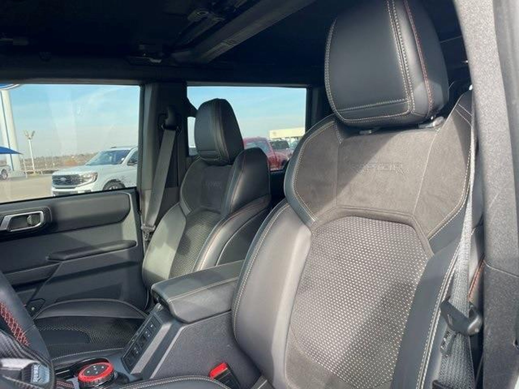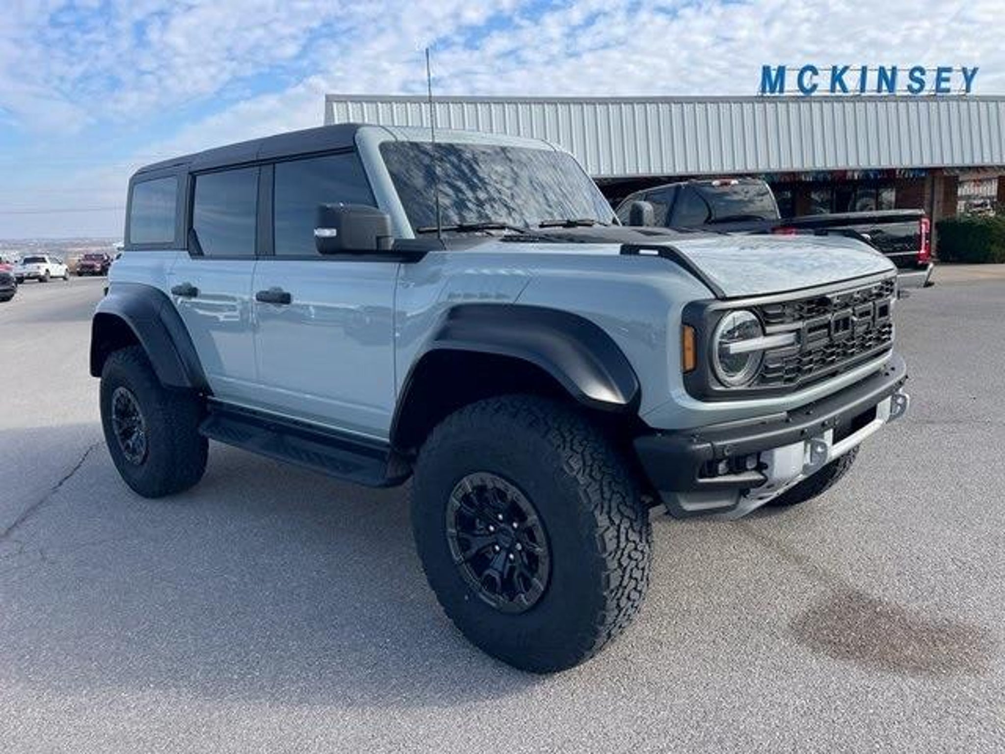 Cactus Gray 2023 Ford Bronco Raptor 4WD 10-Speed Automatic 3.0L EcoBoost V6 Local Trade Back Up Camera New Tires 1-Owner Navigation Leather Low Miles 10 Speakers w/Subwoofer 2 Smart Charging USB Ports In Dashboard 4-Wheel Disc Brakes ABS brakes Adaptive Cruise Control Auto High-beam Headlights Automatic temperature control Brake assist Connected Built-In Navigation Convertible HardTop Dual front impact airbags Dual front side impact airbags Emergency communication system: 911 Assist Equipment Group 374A Lux Package Evasive Steering Assist Exterior Parking Camera Rear Front anti-roll bar Front Bucket Seats Front dual zone A/C Front wheel independent suspension Fully automatic headlights Hard Top Sound Deadening Headliner (DISC) Heated door mirrors Heated front seats Heated Steering Wheel Integrated roll-over protection Keyless Entry Keypad Leather-Trimmed/Vinyl Bucket Seats Low tire pressure warning Lux Package Navigation system: Connected Navigation Occupant sensing airbag Off-Road Assistance Kit (DIO) Overhead airbag Power door mirrors Radio: B&O Sound System by Bang & Olufsen Rear anti-roll bar Rear window defroster Remote keyless entry Second Row Panel Roof Bag Storage (DIO) Security system SiriusXM Radio w/360L Steering wheel mounted audio controls SYNC 4 Telescoping steering wheel Tilt steering wheel Traction control Universal Garage Door Opener Wheels: 17 Black High Gloss-Painted Aluminum Wireless Charging Pad. TO KEEP YOU SAFE WE DELIVER! BUY ONLINE-TEXT-EMAIL-CHAT-PHONE AND WE WILL DELIVER YOUR NEXT VEHICLE TO YOUR DOOR! FROM OUR SALES FLOOR TO YOUR DOOR! ITS THAT EASY! Odometer is 11667 miles below market average!