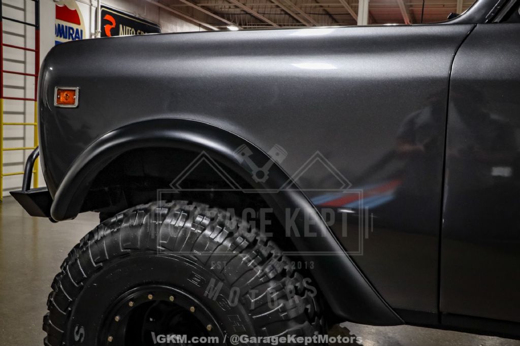 The interior has been thoughtfully restored with reupholstered seats and door panels along with new carpeting, bringing fresh comfort to the rugged cabin. Outside, off-road bumpers, auxiliary lighting, and a commanding 6-inch lift with new shocks highlight the Scout's adventurous personality. New 35-inch Maxxis Big Horn tires mounted on beadlock-style wheels not only amplify its stance but also equip it for serious trail duty.