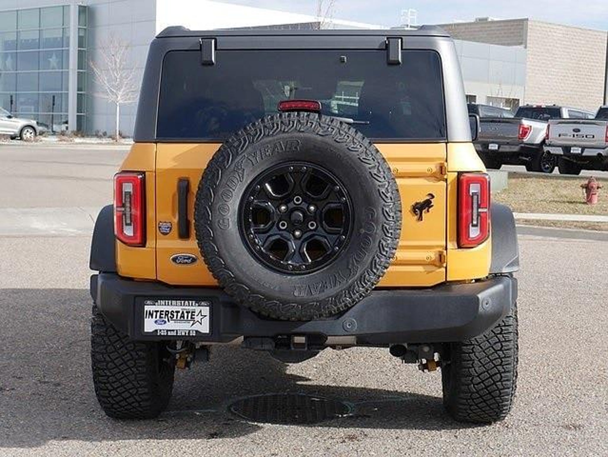 2.7L ECOBOOST, 354A LUXURY PKG, TRAILER TOW, NAVIGATION SYSTEM, HEATED FRONT SEATS, POWER LOCKS/WINDOWS/MIRRORS, ELECTRONIC PARKING BRAKE, TILT/TELESCOPE HEATED LEATHER-WRAPPED STEERING WHEEL W/CRUISE & AUDIO CONTROLS, ADAPTIVE CRUISE CONTROL, B&O SOUND SYSTEM W/TOUCHSCREEN/SIRIUS XM RADIO/BLUETOOTH AUDIO/APPLE CARPLAY/ANDROID AUTO, REVERSE SENSING SYSTEM W/360-DEGREE/REAR VIEW CAMERA, PUSH BUTTON START, DUAL-ZONE ELECTRONIC CLIMATE CONTROL, SMART CHARGING USB PORTS, AUTO START/STOP TECH, FORD CO-PILOT360, FORDPASS CONNECT, REMOVABLE HARD TOP, WIRELESS CHARGING PAD, SELECTABLE DRIVE MODES W/G.O.A.T. MODES, UPFITTER SWITCHES, UNIVERSAL GARAGE DOOR OPENER, 60/40 SPLIT FOLD REAR SEAT, REMOTE KEYLESS ENTRY W/KEYPAD, FRONT/REAR TOW HOOKS, 17 BLACK ALLOY WHEELS. 2022 Ford Bronco Wildtrak 4WD, 10-Speed Automatic, 2.7L EcoBoost V6, 4D Sport Utility, Cyber Orange Metallic Tricoat, Medium Sandstone w/Black Onyx w/Heated Cloth Bucket Seats, ABS brakes, Adaptive Cruise Control, Brake assist, Connected Built-In Navigation, Electronic Stability Control, Evasive Steering Assist, Front anti-roll bar, Front wheel independent suspension, Integrated roll-over protection, Security system, Speed control, Traction control, Wheels: 17 Black High Gloss-Painted Aluminum. Dacono, Longmont, Frederick, Firestone, Loveland, Front Range, Denver, Greeley, Ft Collins, Weld 80514. Here at Interstate Ford we try to make your buying experience as positive and hassle free as possible. All vehicles go through an inspection prior to sale and include a complimentary AutoCheck Vehicle History Report. Call our experienced Internet Sales Team today and see what sets Interstate Ford apart from the competition. Interstate Ford is located 2 blocks east of I-25 on Highway 52. We are just south of Longmont, Just north of Thornton.