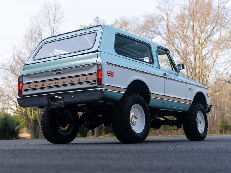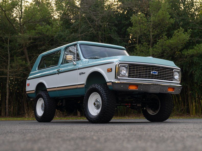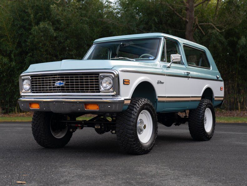 Introducing one of the most breathtaking Velocity Restorations builds to ever hit the market - this 1972 Chevrolet K5 Blazer Heritage Series, finished in show-quality Seafoam Green and White two-tone, represents the absolute pinnacle of modernized classic 4x4 craftsmanship. With a documented $451,900 MSRP, this Blazer is a no-expense-spared build completed just last year, and it presents in museum-quality condition throughout.