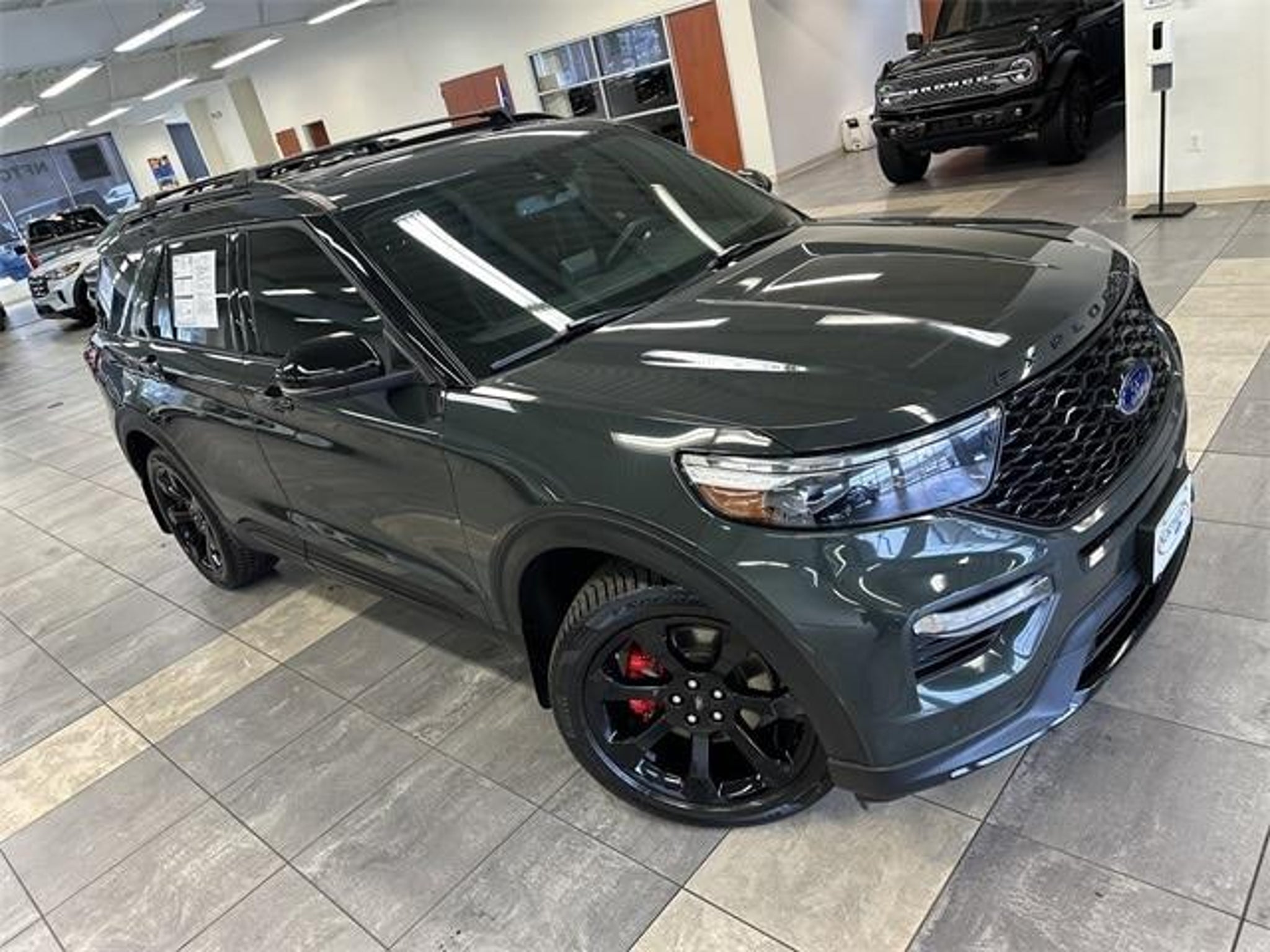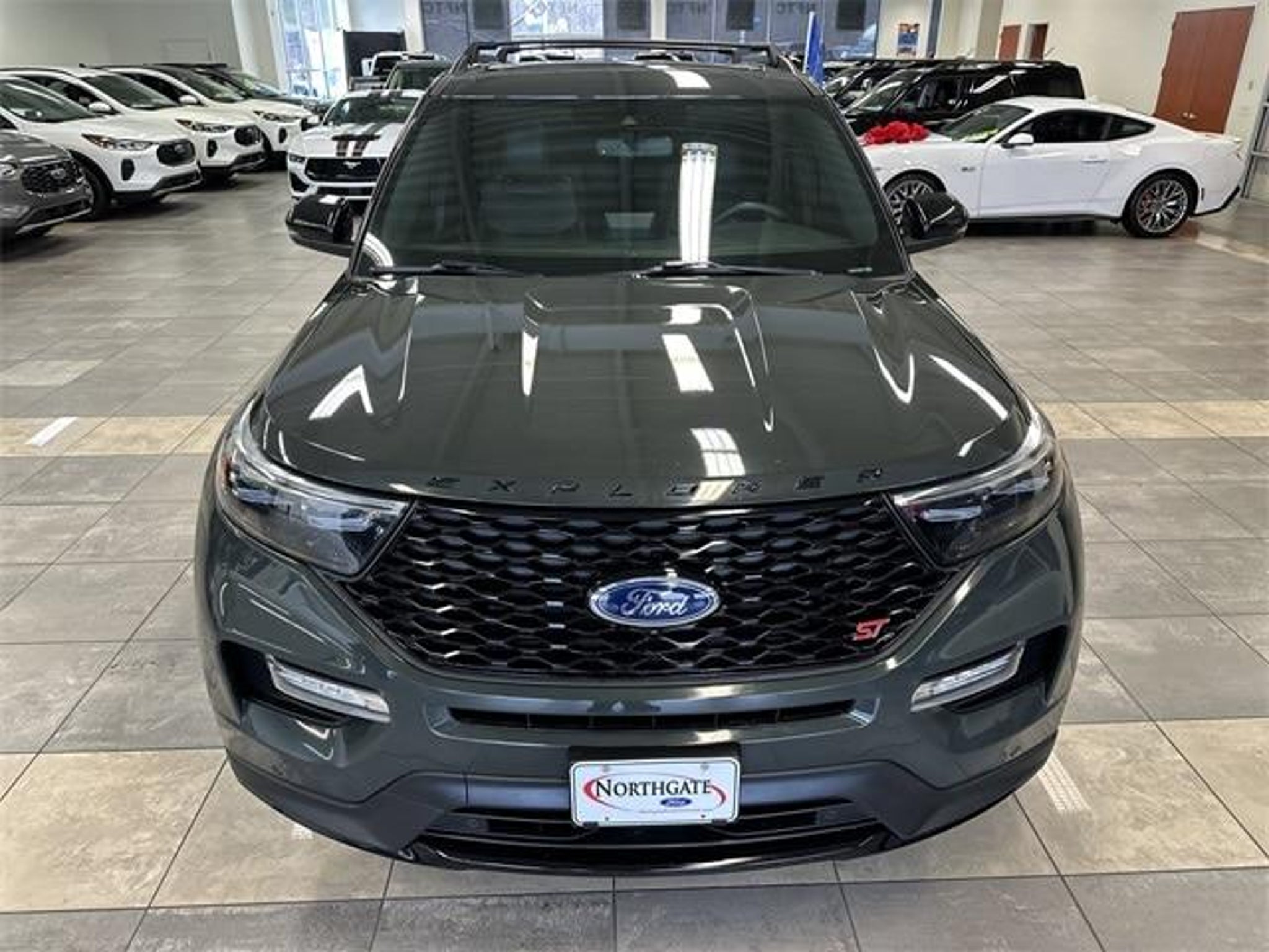 ***FORD BLUE CERTIFIED! ONE OWNER! CLEAN CARFAX! TWIN PANEL MOONROOF! Technology Package, Explorer ST, 4D Sport Utility, 3.0L EcoBoost V6, 4WD, 10.1 LCD Capacitive Portrait Touchscreen, 110V/150W AC Power Outlet, 2 Additional Speakers, 360-Degree Camera w/Split View, AM/FM radio: SiriusXM, Auto High-beam Headlights, Auto-Dimming Rearview Mirror (Interior), Electronic Stability Control, Equipment Group 401A, Evasive Steering Assist, Exterior Parking Camera Rear, Ford Co-Pilot360 Assist, Front Parking Sensors, Front Rain-Sensing Wipers, Intelligent Adaptive Cruise Control, Memory Driver's Seat, Performance Front & Rear Brakes, Power Liftgate, Power Tilt/Telescoping Steering Column, Radio: B&O Sound System by Bang & Olufsen, Reverse Brake Assist, Second Row Heated Seats, Sideview Mirrors w/Gloss Black Caps, Speed Sign Recognition, ST High Package, ST Street Pack, Technology Package, Third Row PowerFold (Folds Flat), Twin Panel Moonroof, Universal Garage Door Opener (UGDO), Voice-Activated Touchscreen Navigation System, Wheels: 21 Aluminum, Wireless Charging Pad. Clean CARFAX. Forged Green Metallic 2023 Ford Explorer ST Although every reasonable effort has been made to ensure the accuracy of the information contained on this site, absolute accuracy cannot be guaranteed. All vehicles are subject to prior sale. Price does not include applicable tax, title, license, and a $387.00 documentation fee or other fees required by law, lending institutions, and/or lessors. Vehicles shown at different locations are not currently in our inventory (not in stock) but can be made available at our location within a reasonable time after your request. Listed APR, down payment, payments, incentives and other terms are estimates for example purposes only. The payment information provided here is not a commitment by any organization to provide credit, leases or other programs. Some customers may not qualify for listed programs. Ford Blue Certified Details: * Limited Warranty: 3 Month/4,000 Mile (whichever comes first) after new car warranty expires or from certified purchase date * 139 Point Inspection * Vehicle History * and 11,000 FordPass Rewards Points to use toward first maintenance visit * Transferable Warranty * Warranty Deductible: $100 * Roadside Assistance THIS VEHICLE ALSO HAS THE FOLLOWING OPTIONS AND FEATURES:Equipment Group 401A, Ford Co-Pilot360 Assist (Evasive Steering Assist, Intelligent Adaptive Cruise Control, Speed Sign Recognition, and Voice-Activated Touchscreen Navigation System), ST Hi