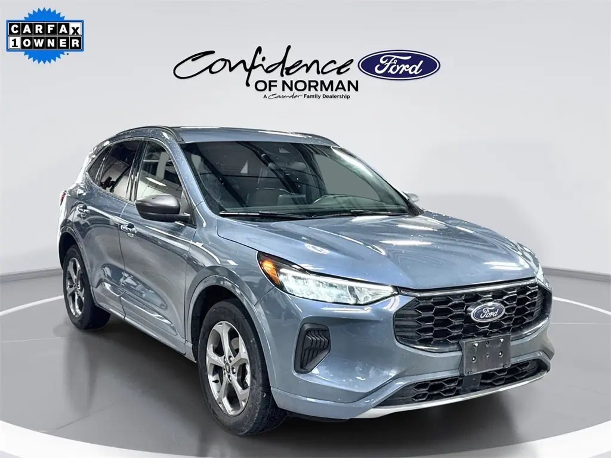 Welcome to Confidence Ford of Norman, a Cavender Auto Family dealership. This vehicle is located at 825 N Interstate Dr, Norman, OK 73069. Here at Cavender, we build relationships based on trust and integrity to exceed your expectations in your ownership experience. Quite simply, we strive to Make Confidence Happen! So stop by and allow us to serve your automotive needs we would love to meet you. Vapor Blue Metallic 2023 Ford Escape ST-Line AWD 1.5L EcoBoost 8-Speed Automatic Cavender Certified Pre-Owned Program Built-in Benefits: Limited Powertrain Warranty for your peace of mind. Coverage includes components for engine, transmission and axles (for specific component coverage, please speak with a dealer representative). 24/7 Roadside Assistance ??' No out-of-pocket costs for customers towed to our dealership (if located within 30 miles), lockout assistance, jump start, fuel and fluid delivery, flat tire changes, available 365 days/year, up to $100 maximum coverage per roadside incident. A Vehicle History Report is included with every Cavender Certified Pre-Owned vehicle to offer you Confidence knowing that the vehicle you are purchasing is right for you and the road ahead. (Limitation and exclusions apply. Please refer to your Limited Warranty Registration for full coverage information.) The Cavender Auto Family, proudly serving our communities since 1939, and we look forward to serving you! - Equipment: Equipment Group 300A, AWD, SYNC 4, 3.81 Axle Ratio, 4-Wheel Disc Brakes, 6 Speakers, ABS brakes, Air Conditioning, Alloy wheels, AM/FM radio: SiriusXM, AM/FM Stereo, Auto High-beam Headlights, Automatic temperature control, Brake assist, Bumpers: body-color, Compass, Delay-off headlights, Driver door bin, Driver vanity mirror, Dual front impact airbags, Dual front side impact airbags, Electronic Stability Control, Emergency communication system: SYNC 4 911 Assist, Exterior Parking Camera Rear, FordPass Connect, Four wheel independent suspension, Front anti-roll bar, Front Bucket Seats, Front Center Armrest, Front dual zone A/C, Front License Plate Bracket, Front reading lights, Fully automatic headlights, Heated door mirrors, Heated front seats, Heated steering wheel, Illuminated entry, Knee airbag, Low tire pressure warning, Occupant sensing airbag, Outside temperature display, Overhead airbag, Overhead console, Panic alarm, Passenger door bin, Passenger vanity mirror, Power door mirrors, Power driver seat, Power Liftgate, Power steering, Power windows, Radio data system, Rear anti-roll bar, Rear readin
